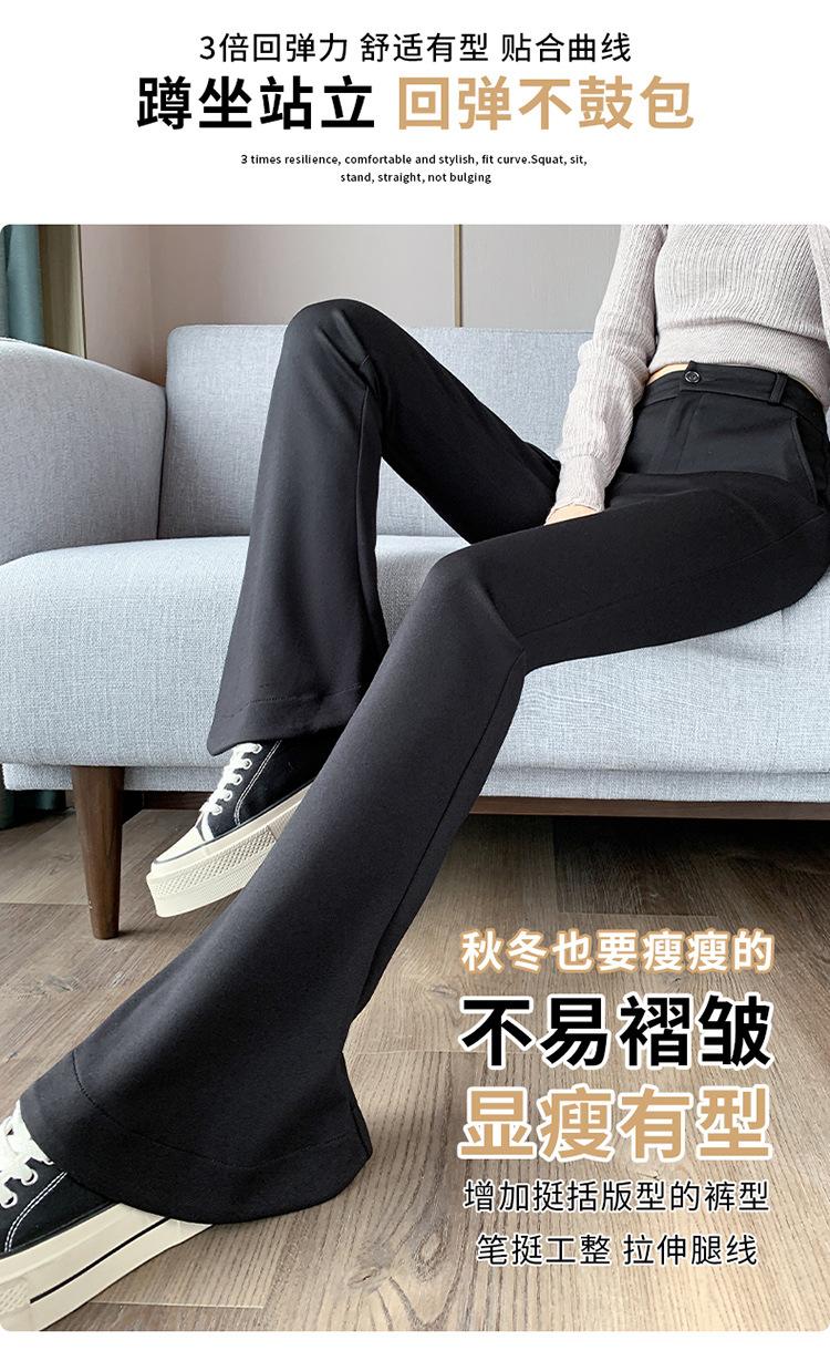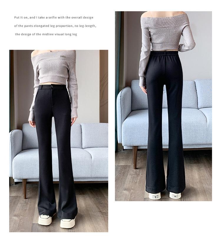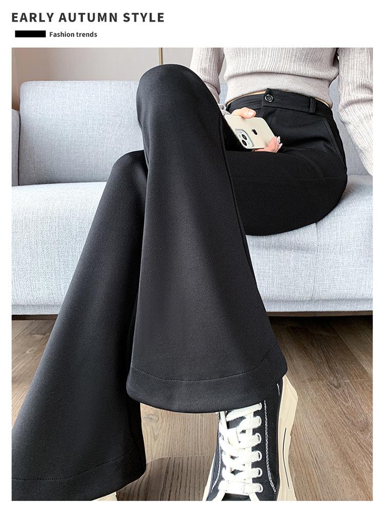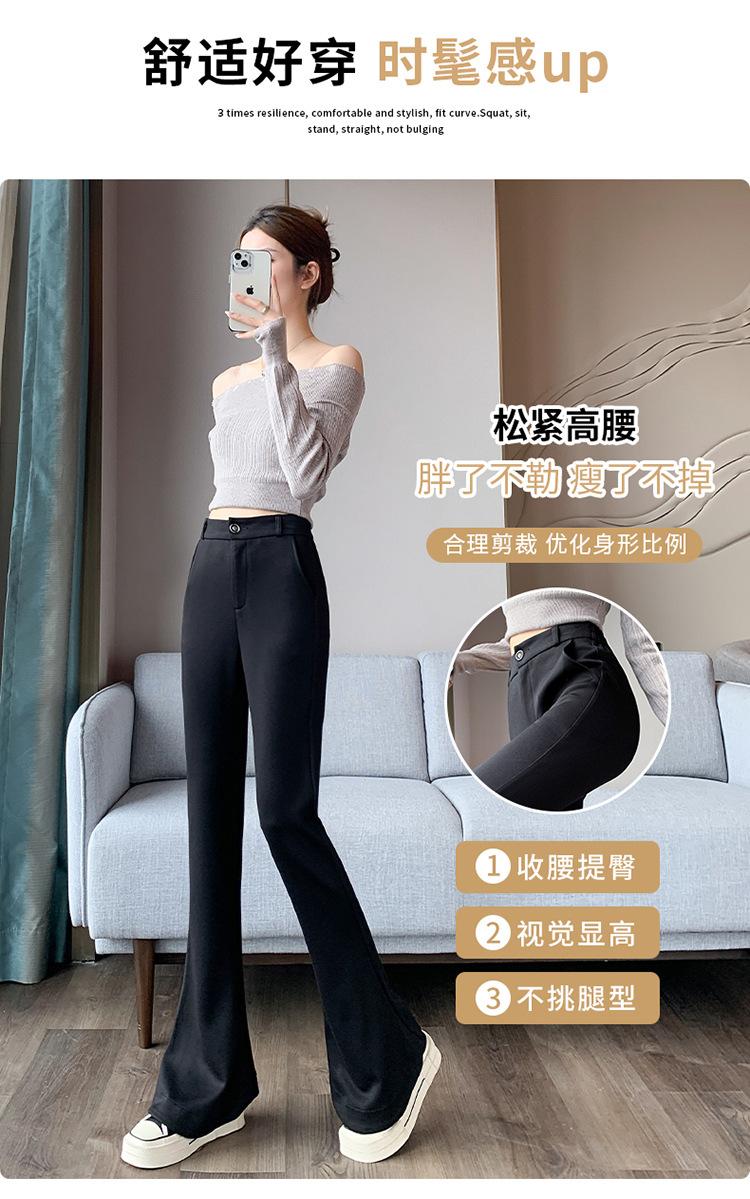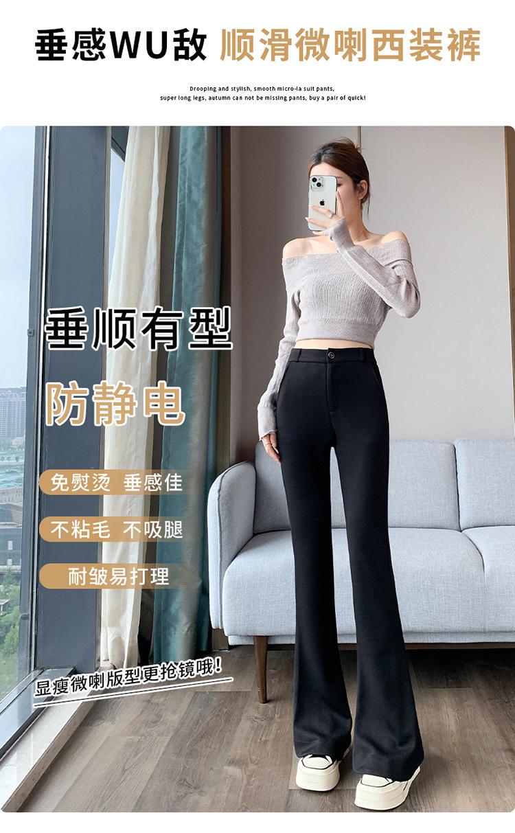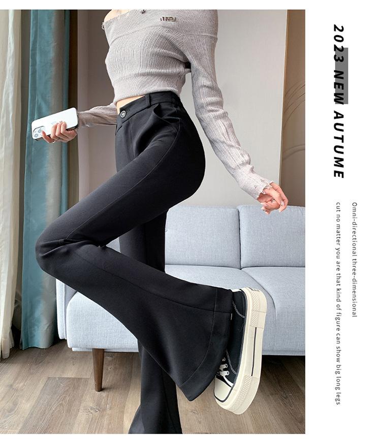 Pantalones de traje negros con diseño de herradura para primavera y otoño de 2024, pantalones de traje ajustados y elásticos, pantalones de pierna ancha y microcorte estrecho para mujer.