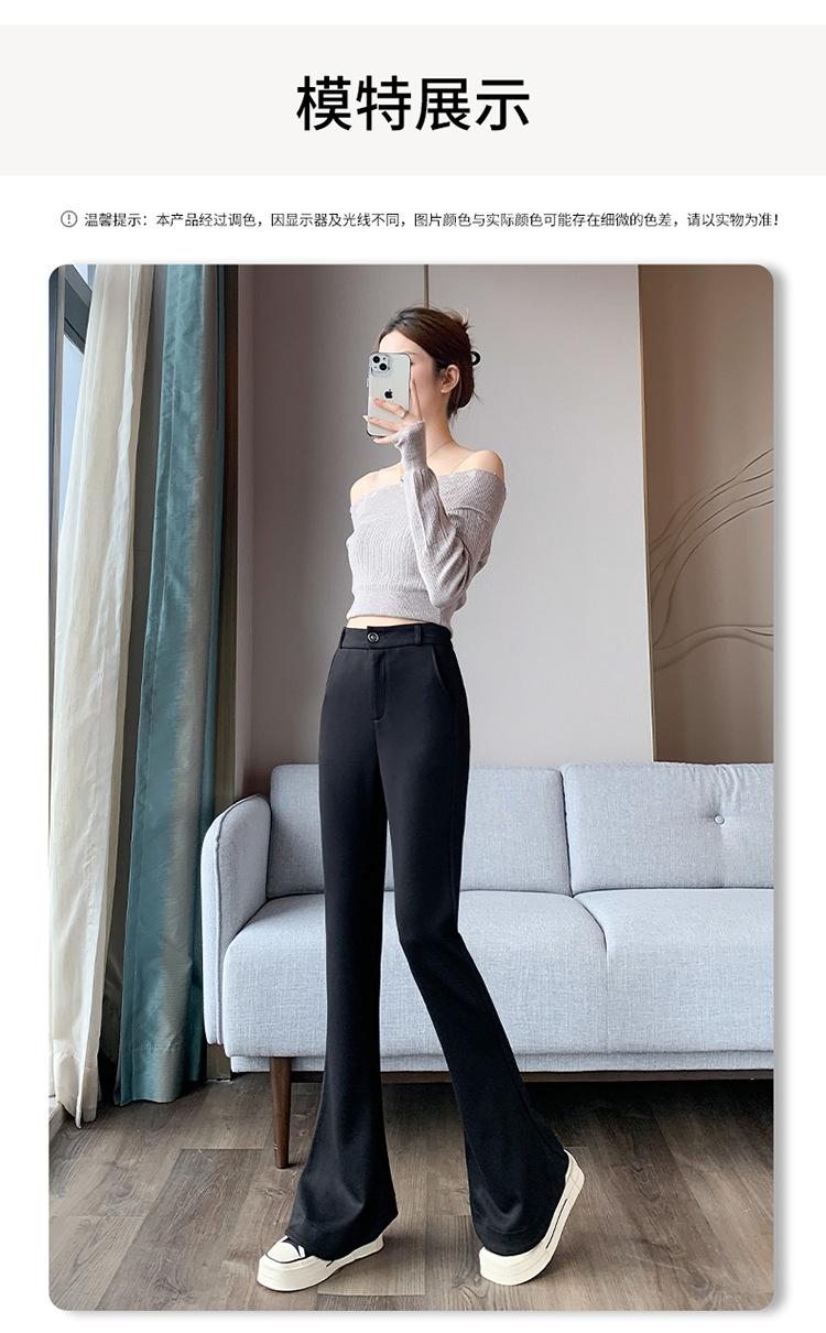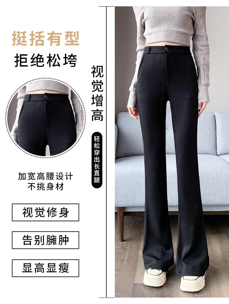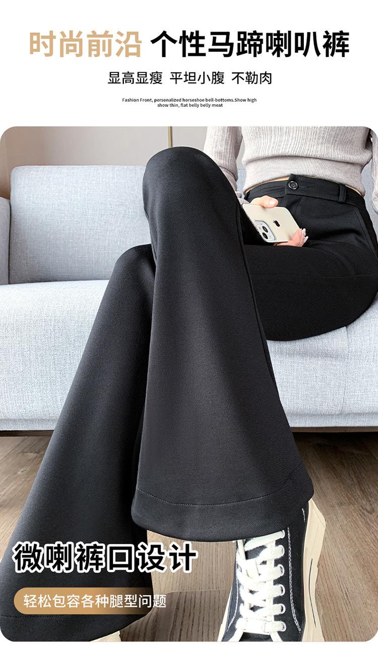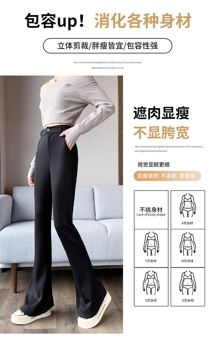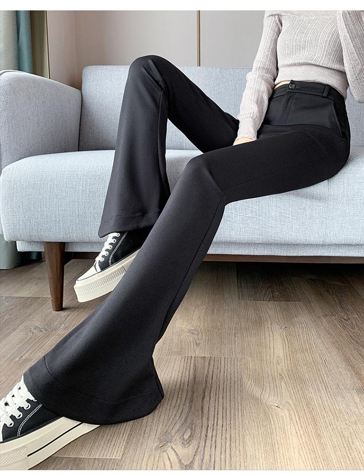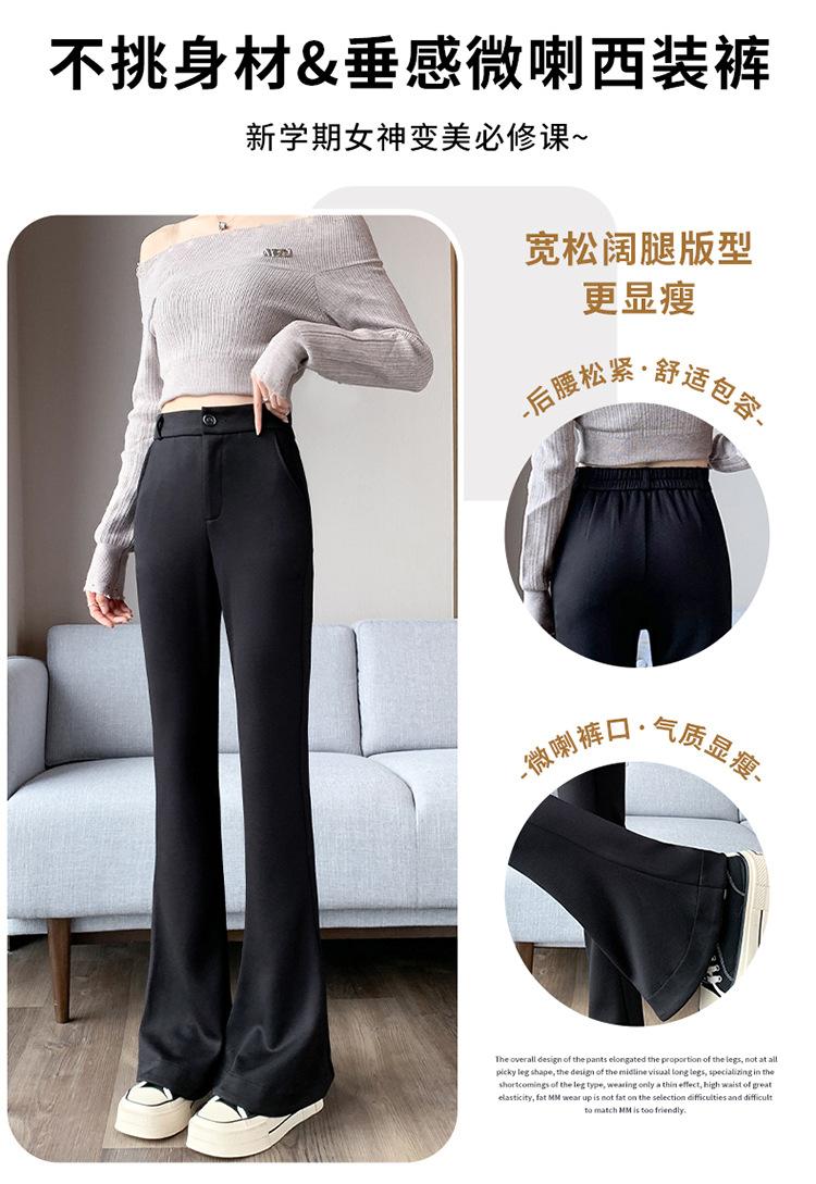 Pantalones de traje negros con diseño de herradura para primavera y otoño de 2024, pantalones de traje ajustados y elásticos, pantalones de pierna ancha y microcorte estrecho para mujer.
