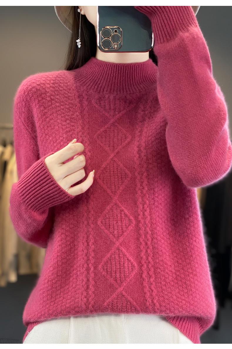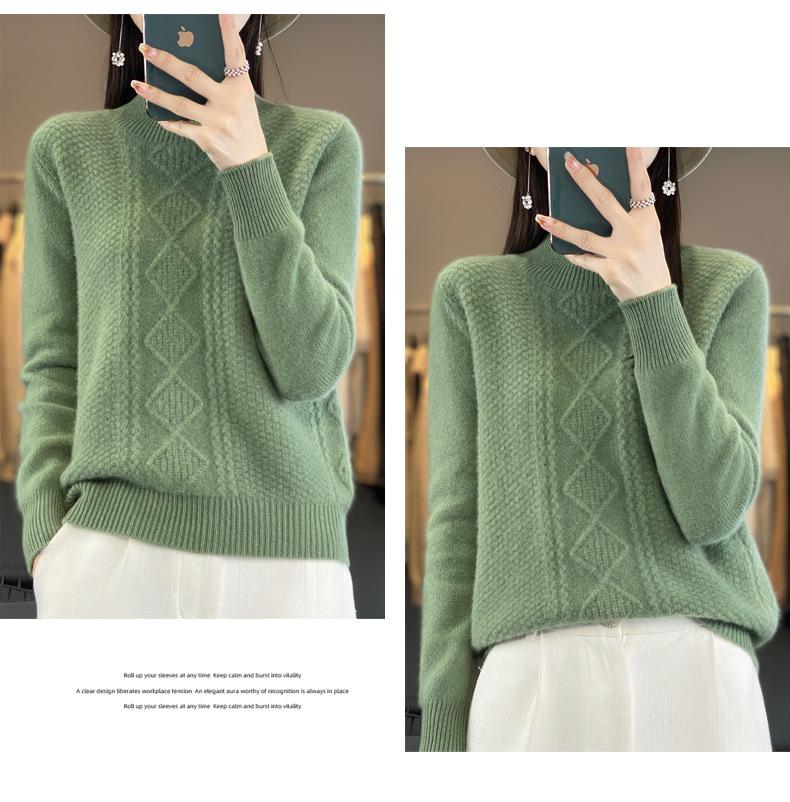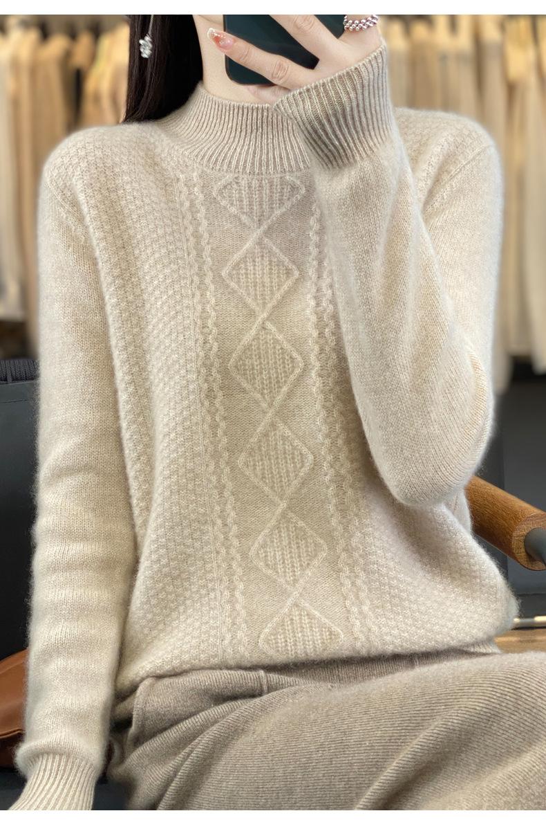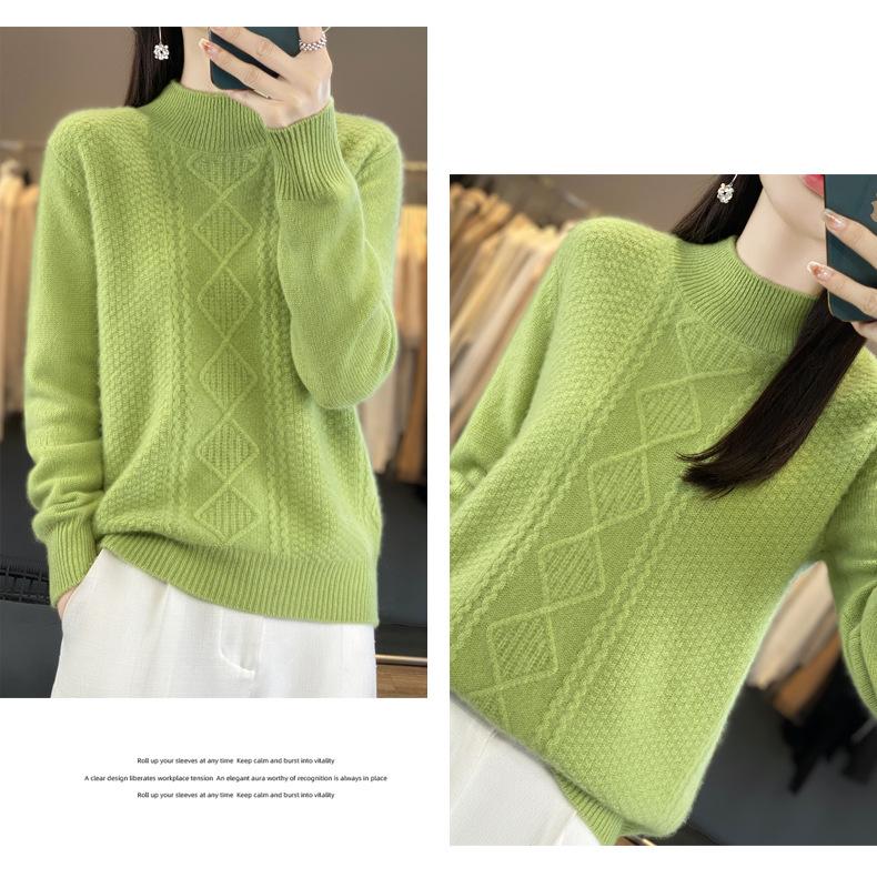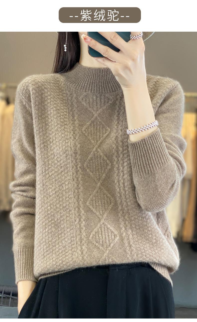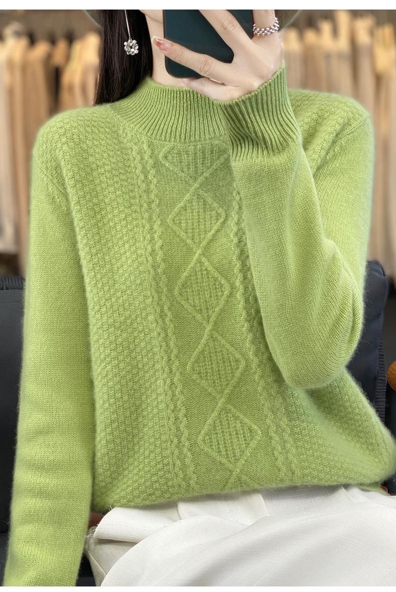 Ropa de mujer de comercio exterior 2024 otoño e invierno nuevo jersey grueso trenzado de cuello semi alto para mujer jersey de punto de color sólido base