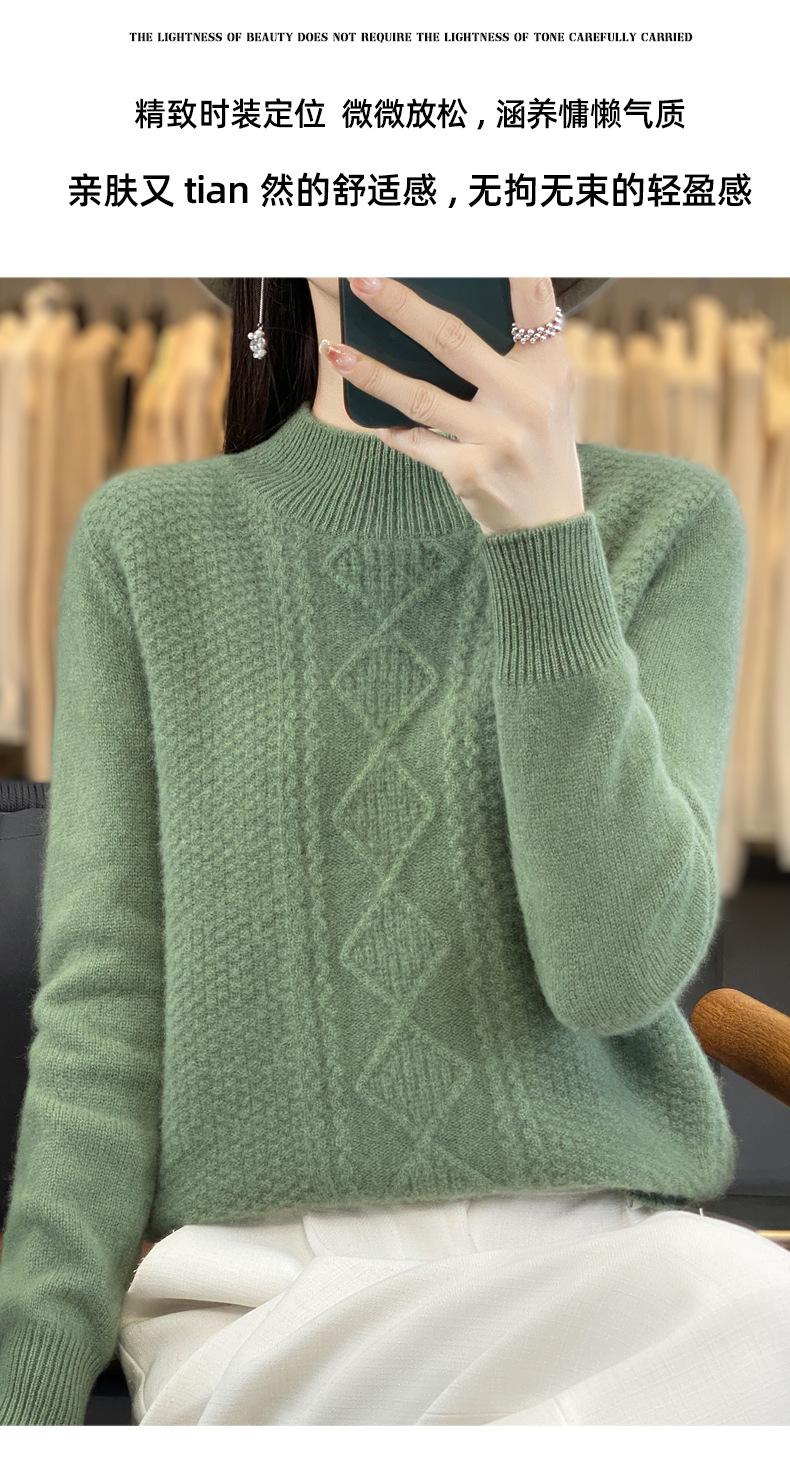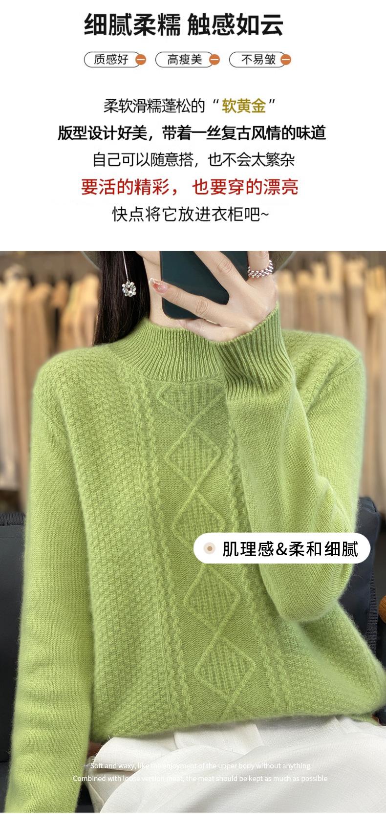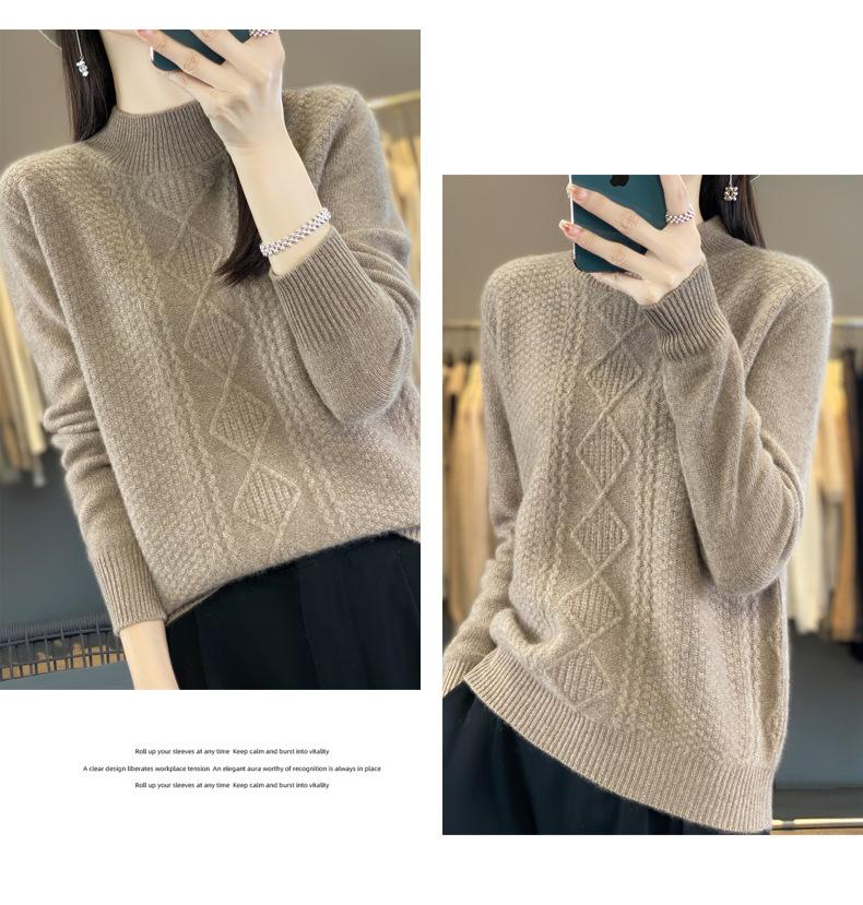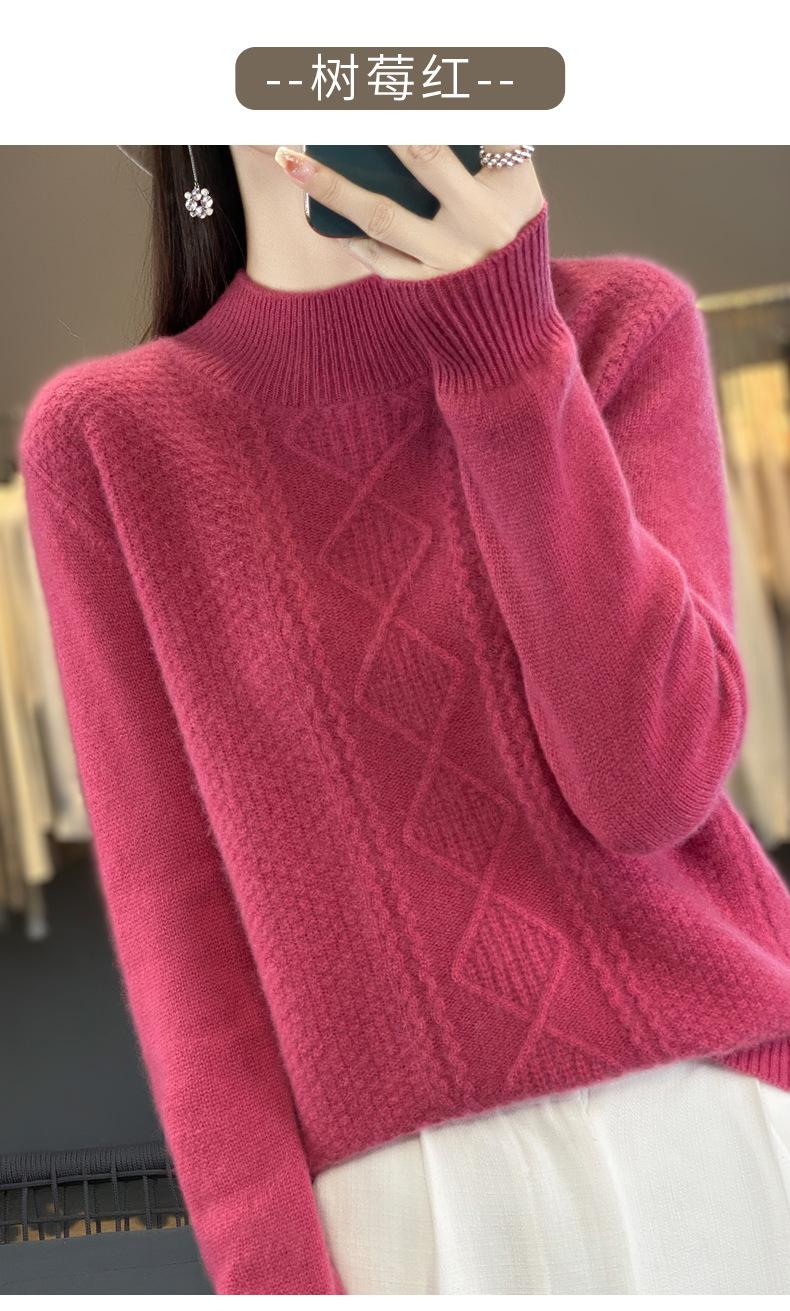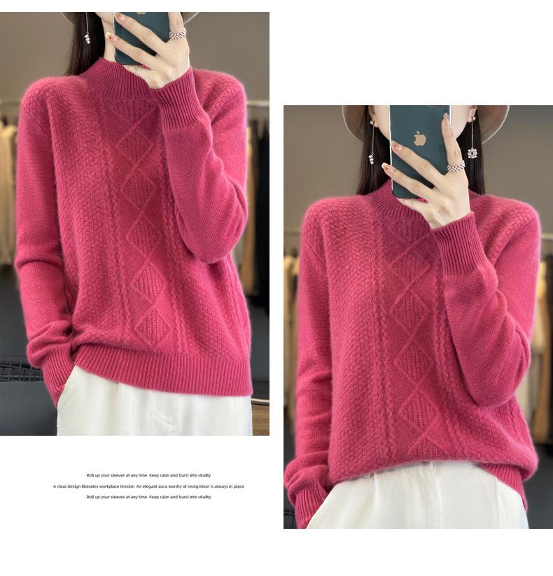 Ropa de mujer de comercio exterior 2024 otoño e invierno nuevo jersey grueso trenzado de cuello semi alto para mujer jersey de punto de color sólido base