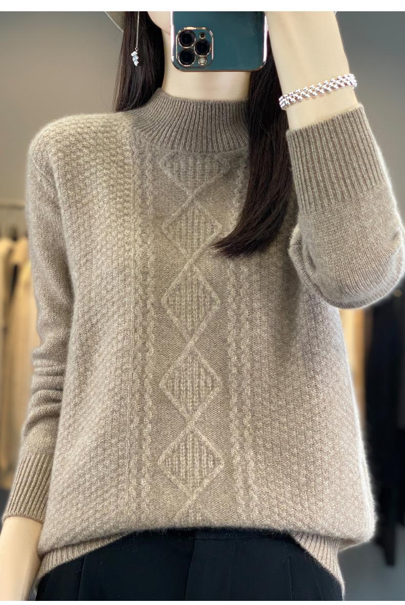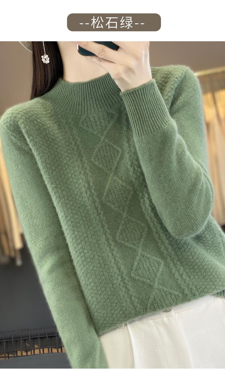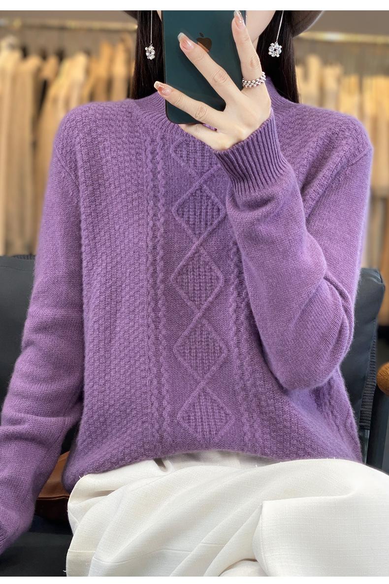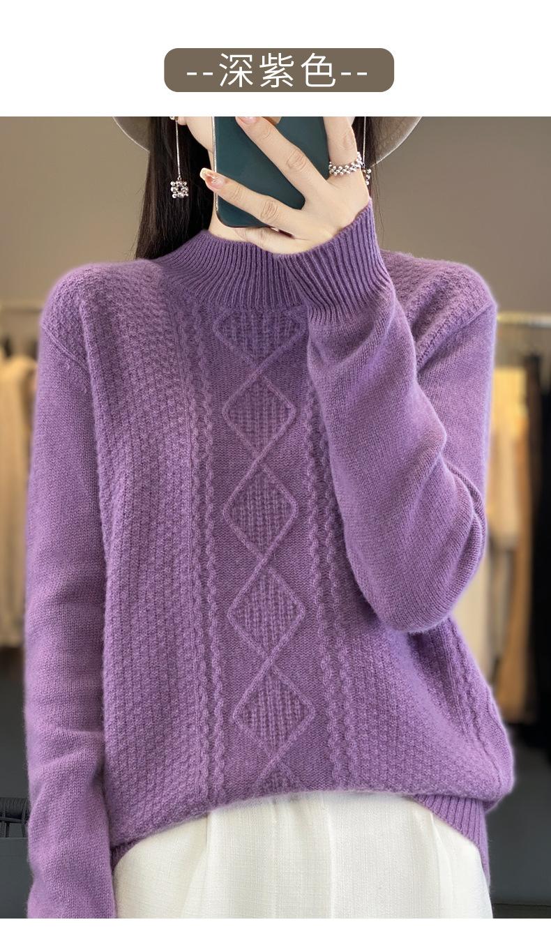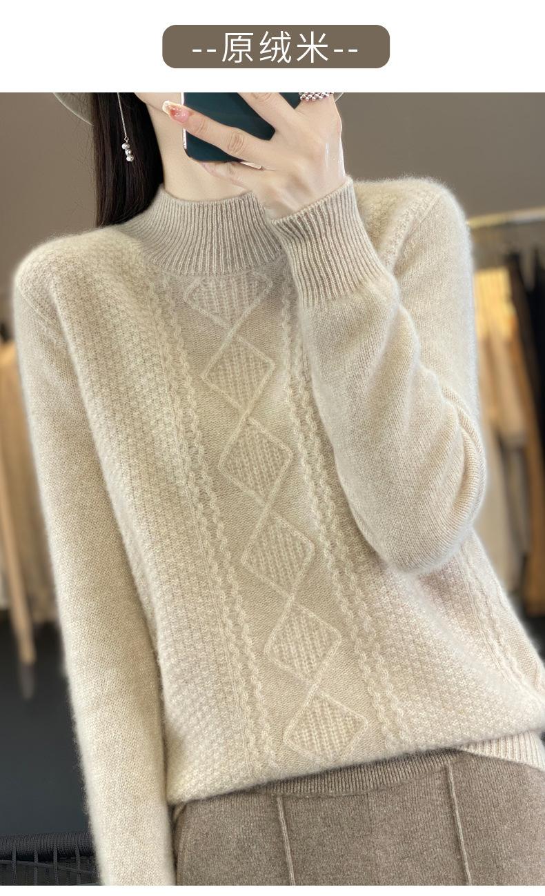Ropa de mujer de comercio exterior 2024 otoño e invierno nuevo jersey grueso trenzado de cuello semi alto para mujer jersey de punto de color sólido base