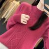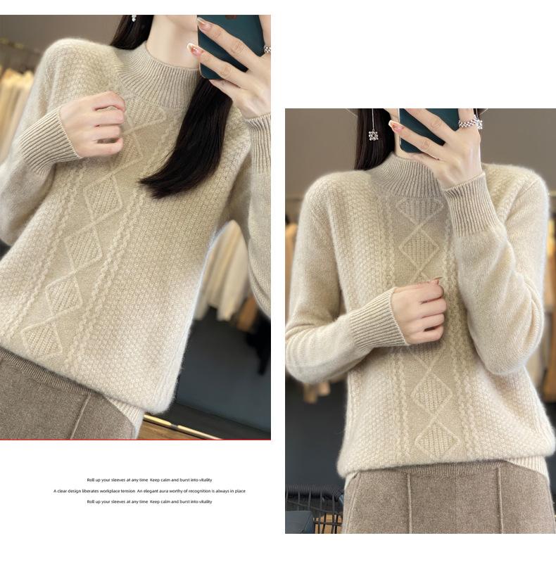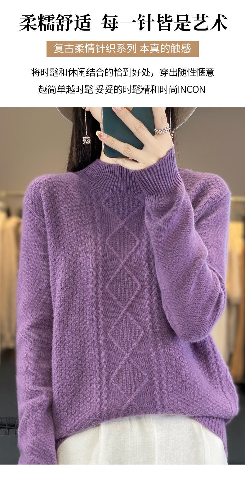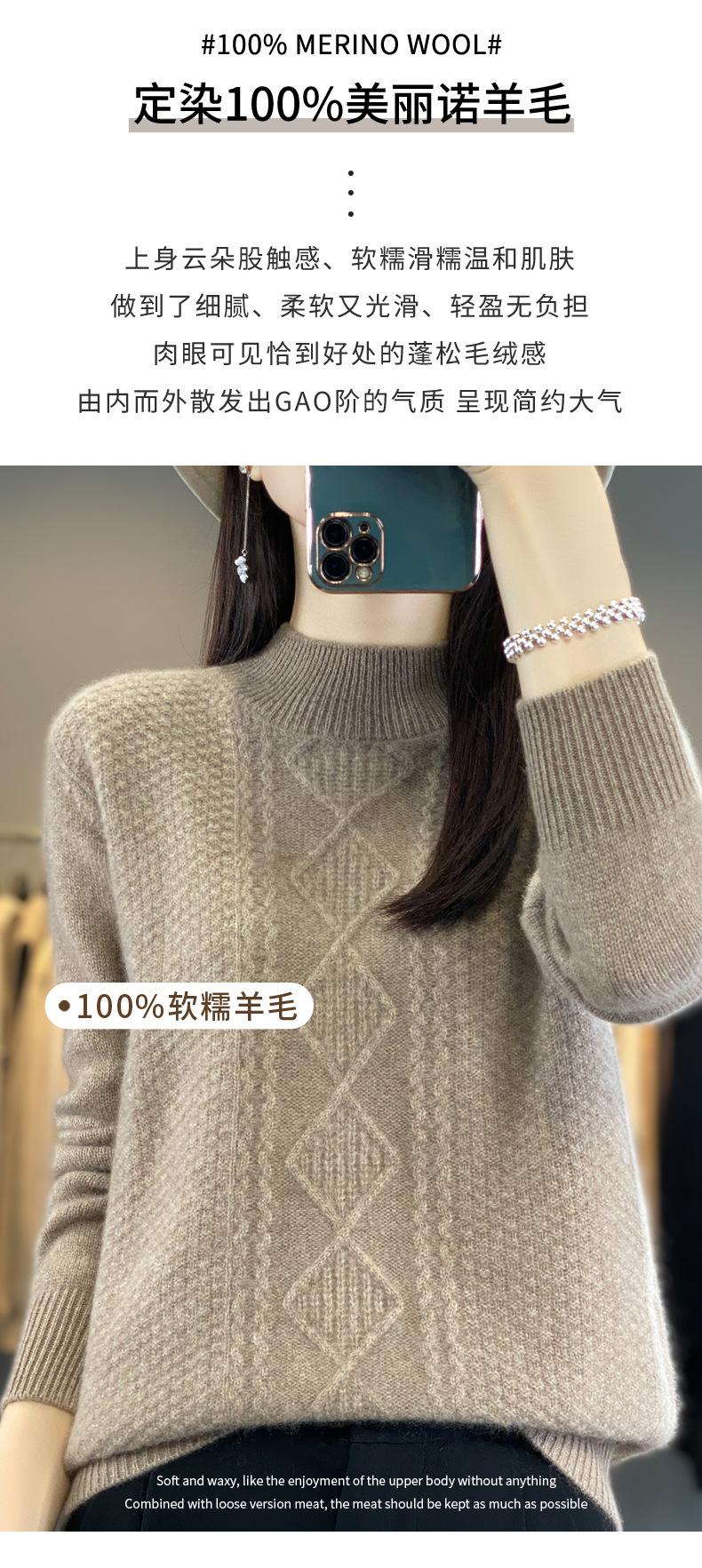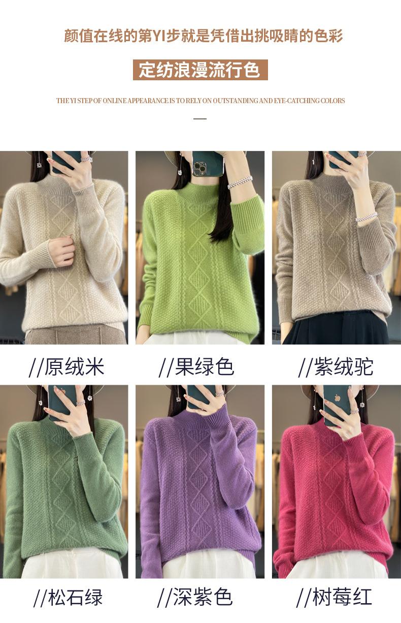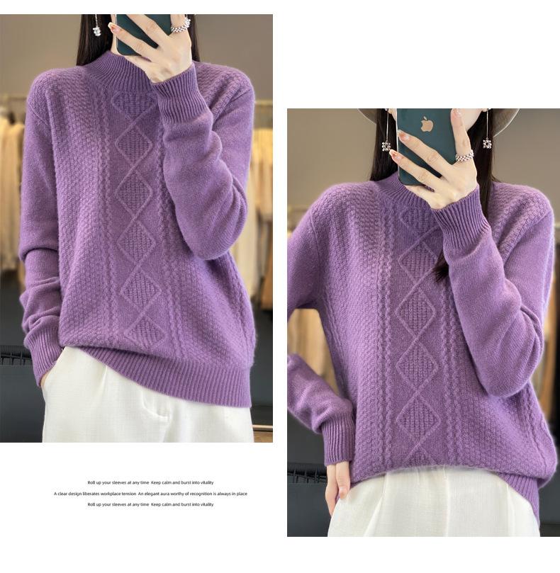 Ropa de mujer de comercio exterior 2024 otoño e invierno nuevo jersey grueso trenzado de cuello semi alto para mujer jersey de punto de color sólido base