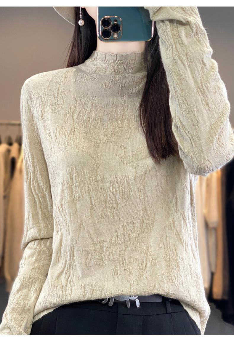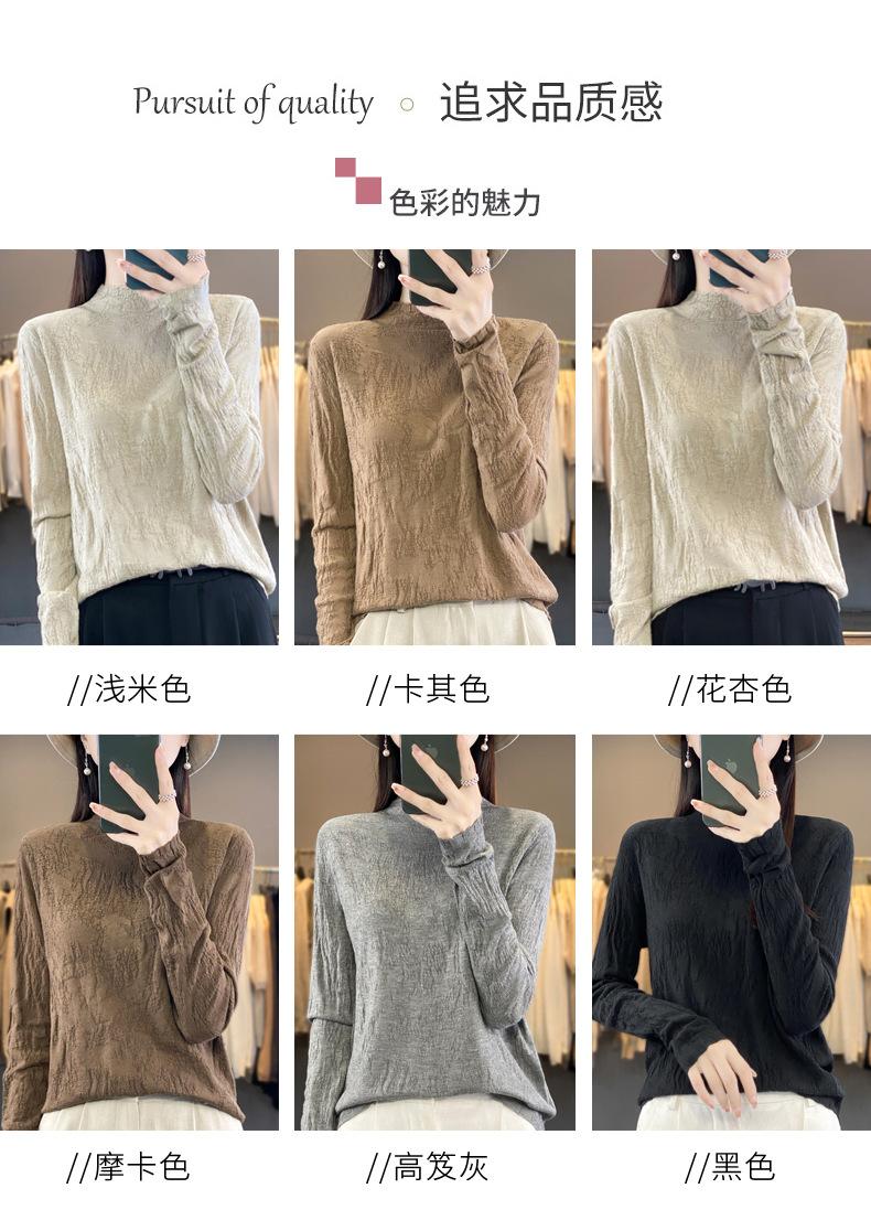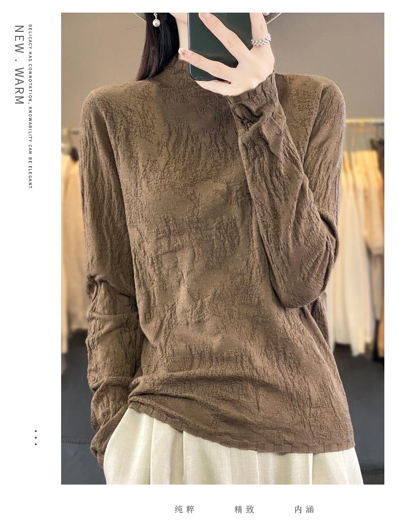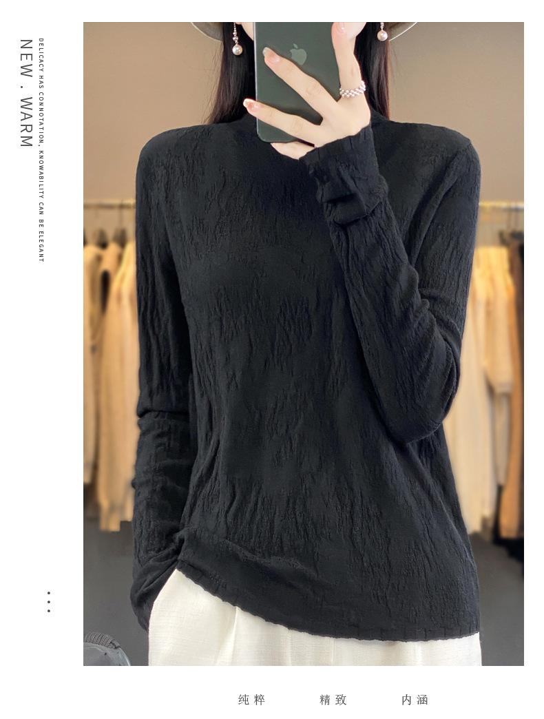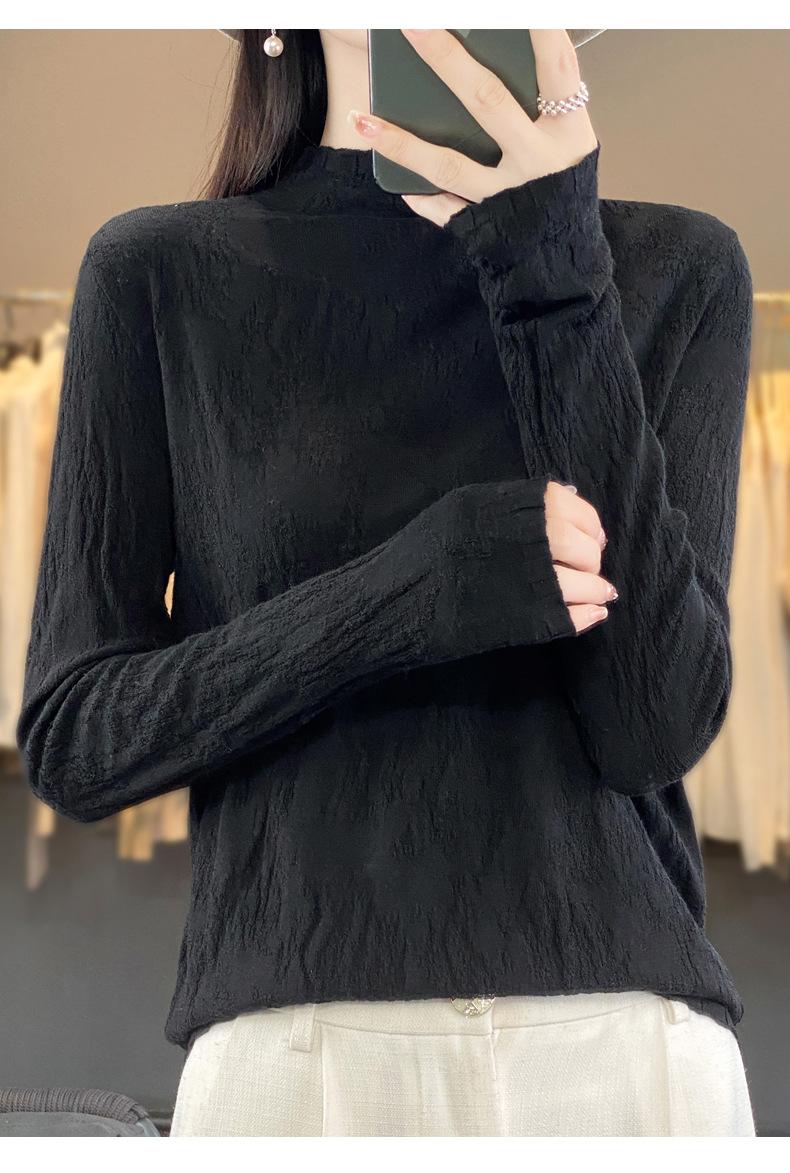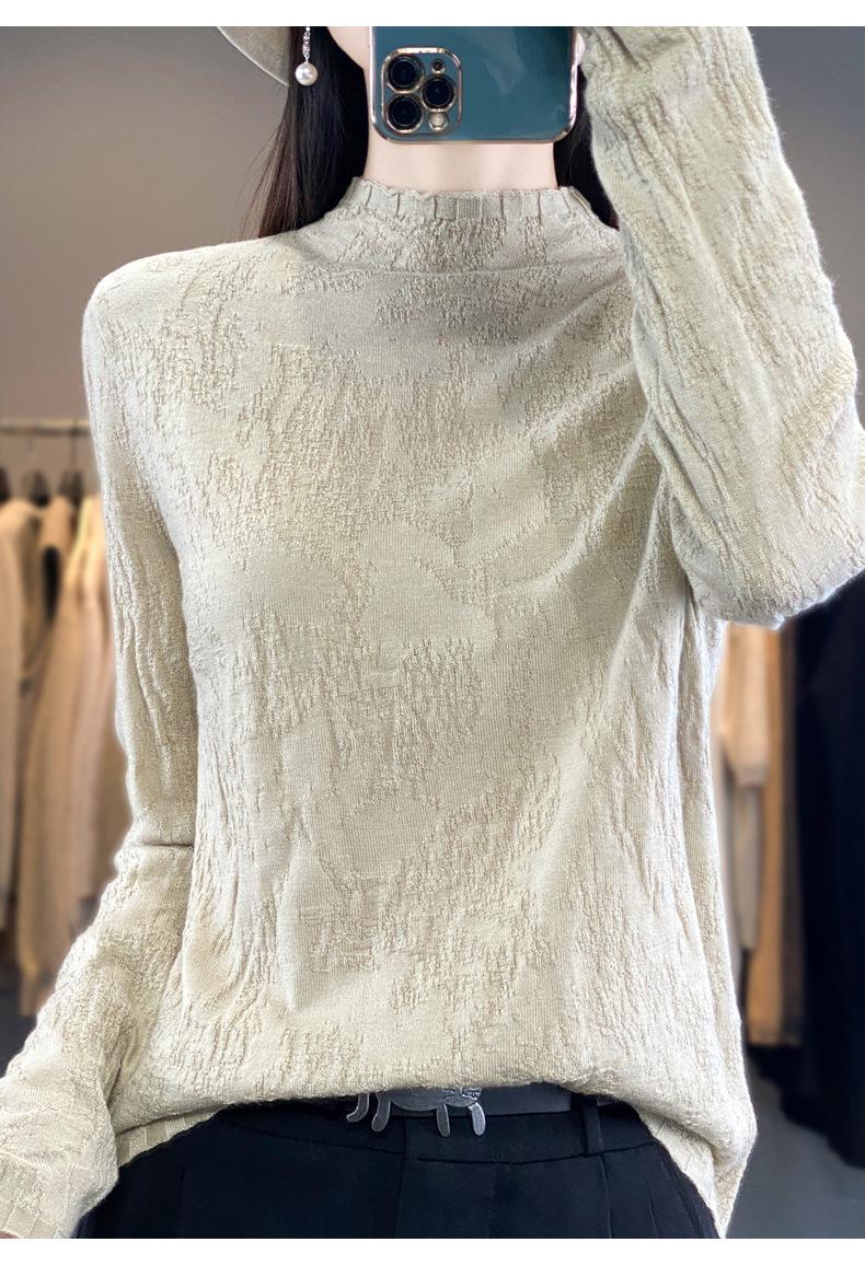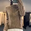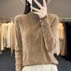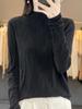 Suéter de manga larga para mujer, nuevo jersey de otoño e invierno, combinable con todo, cuello semialto, de lana sintética fina, camisa básica ajustada.
