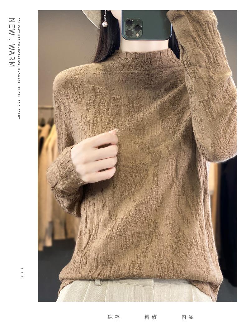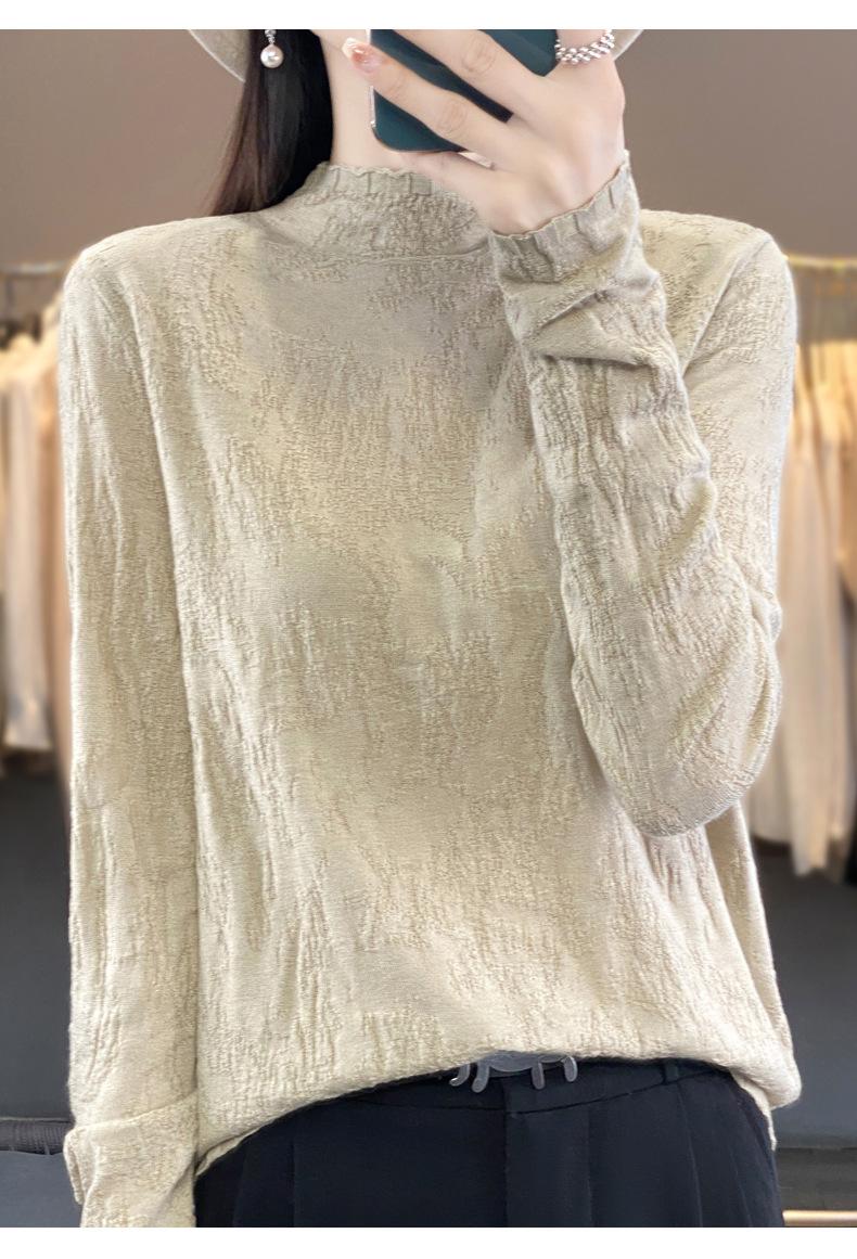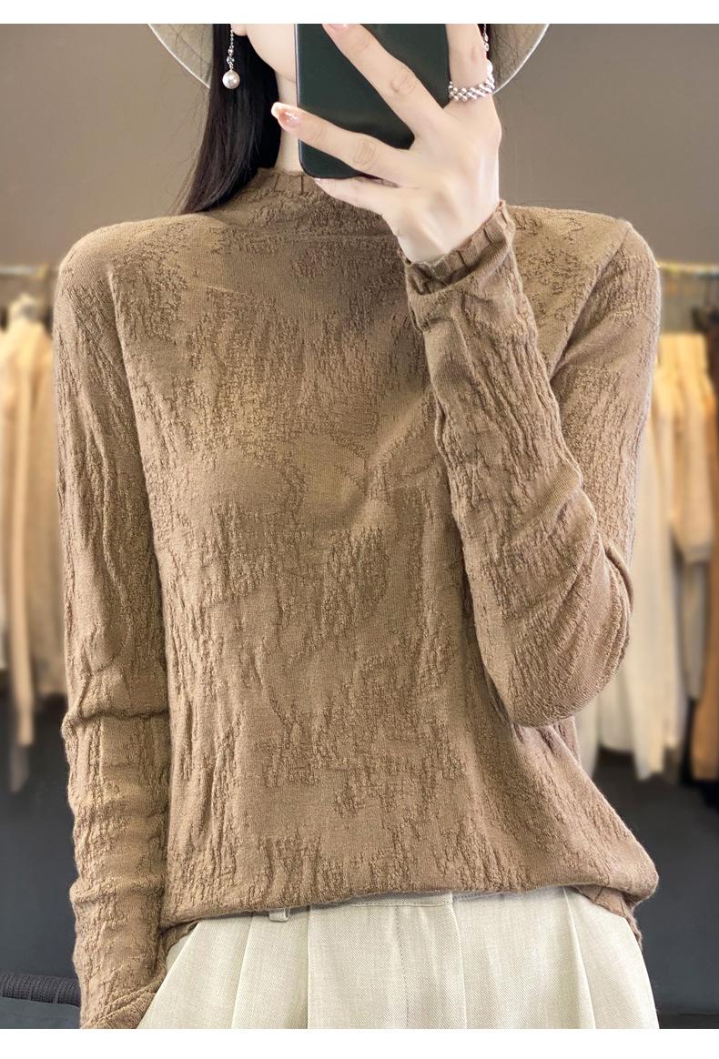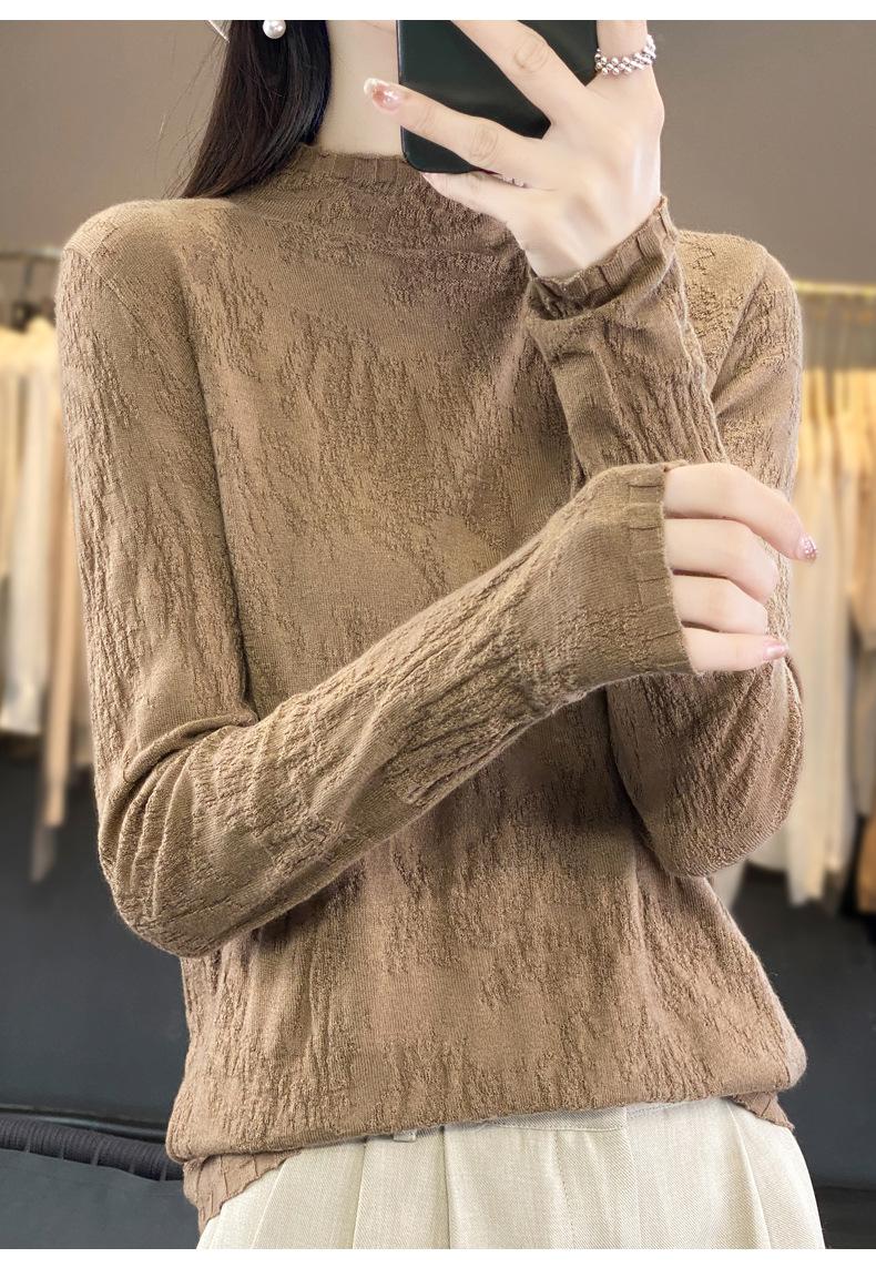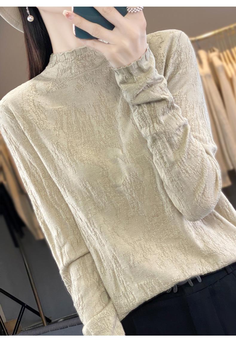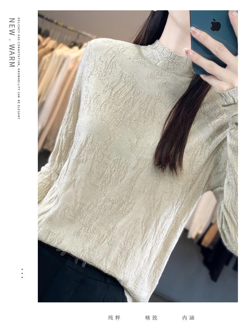 Suéter de manga larga para mujer, nuevo jersey de otoño e invierno, combinable con todo, cuello semialto, de lana sintética fina, camisa básica ajustada.