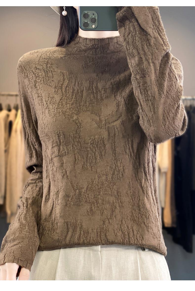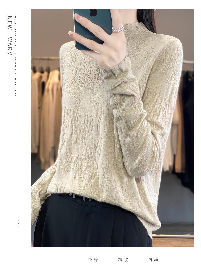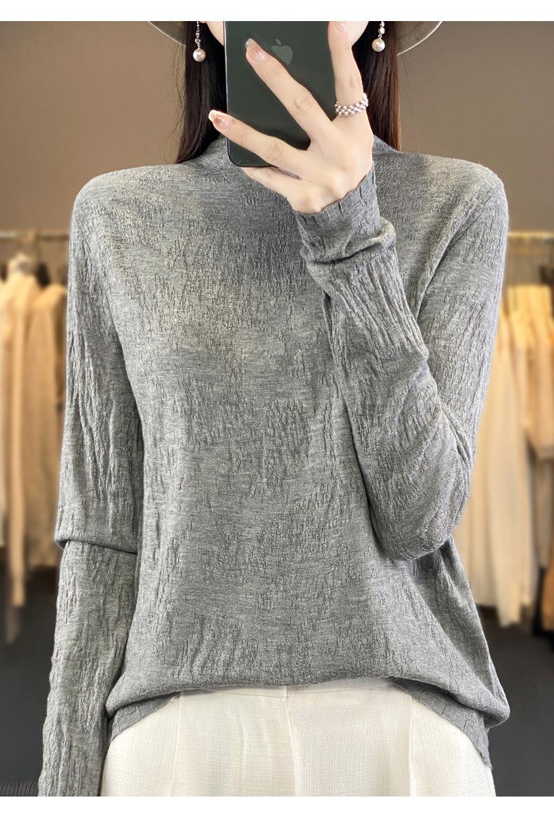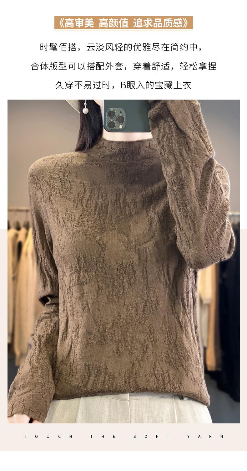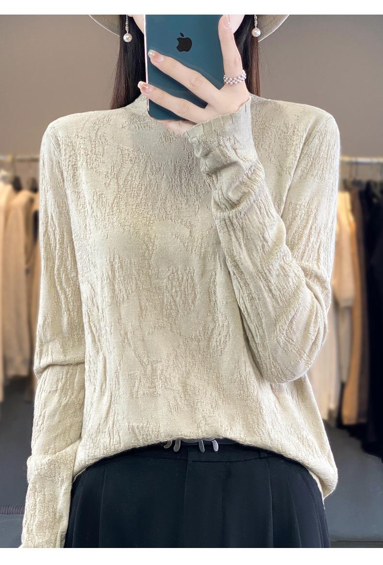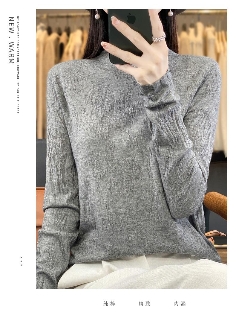 Suéter de manga larga para mujer, nuevo jersey de otoño e invierno, combinable con todo, cuello semialto, de lana sintética fina, camisa básica ajustada.