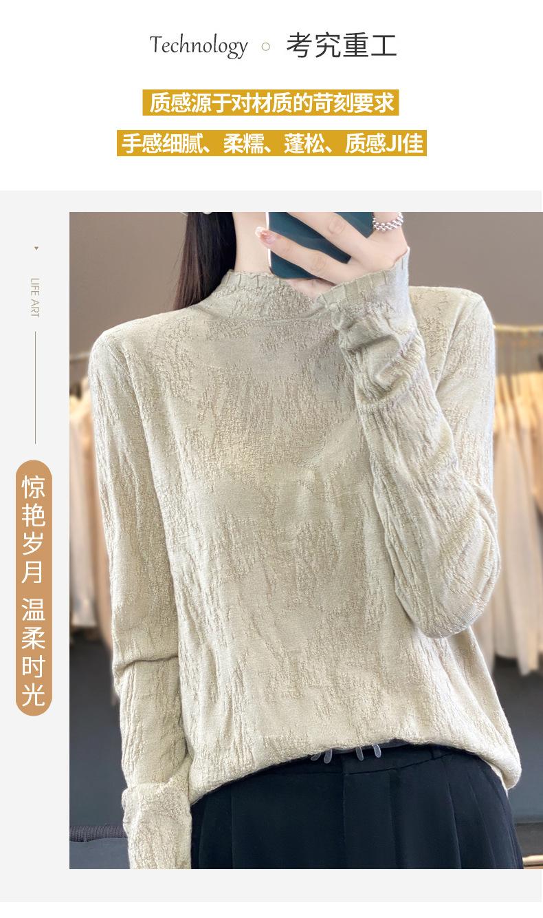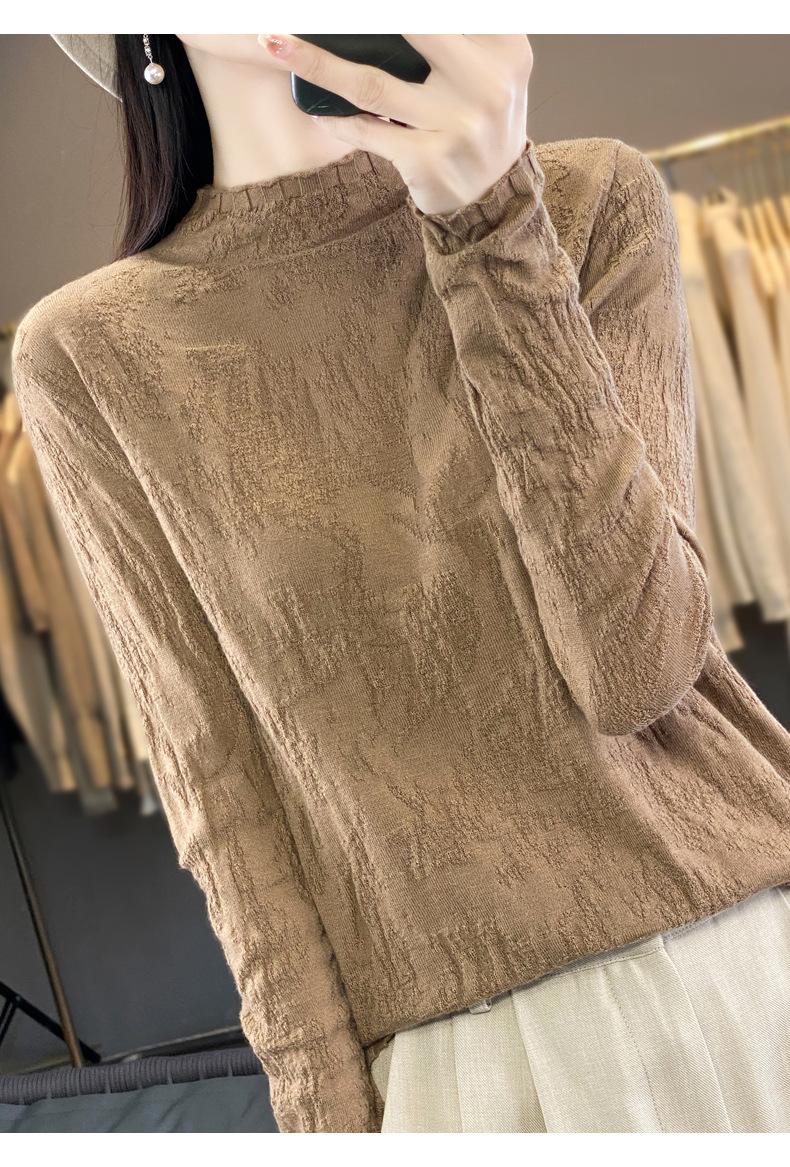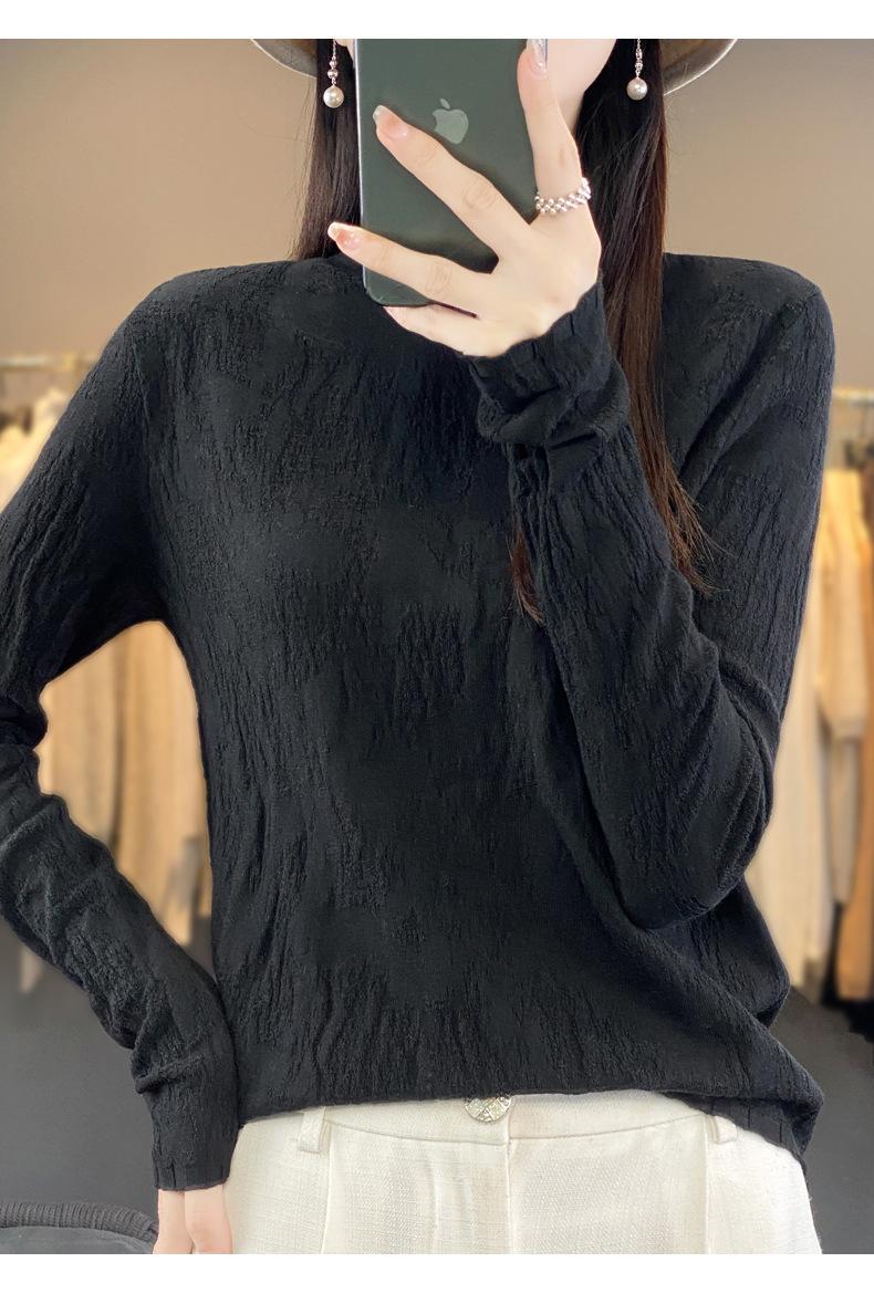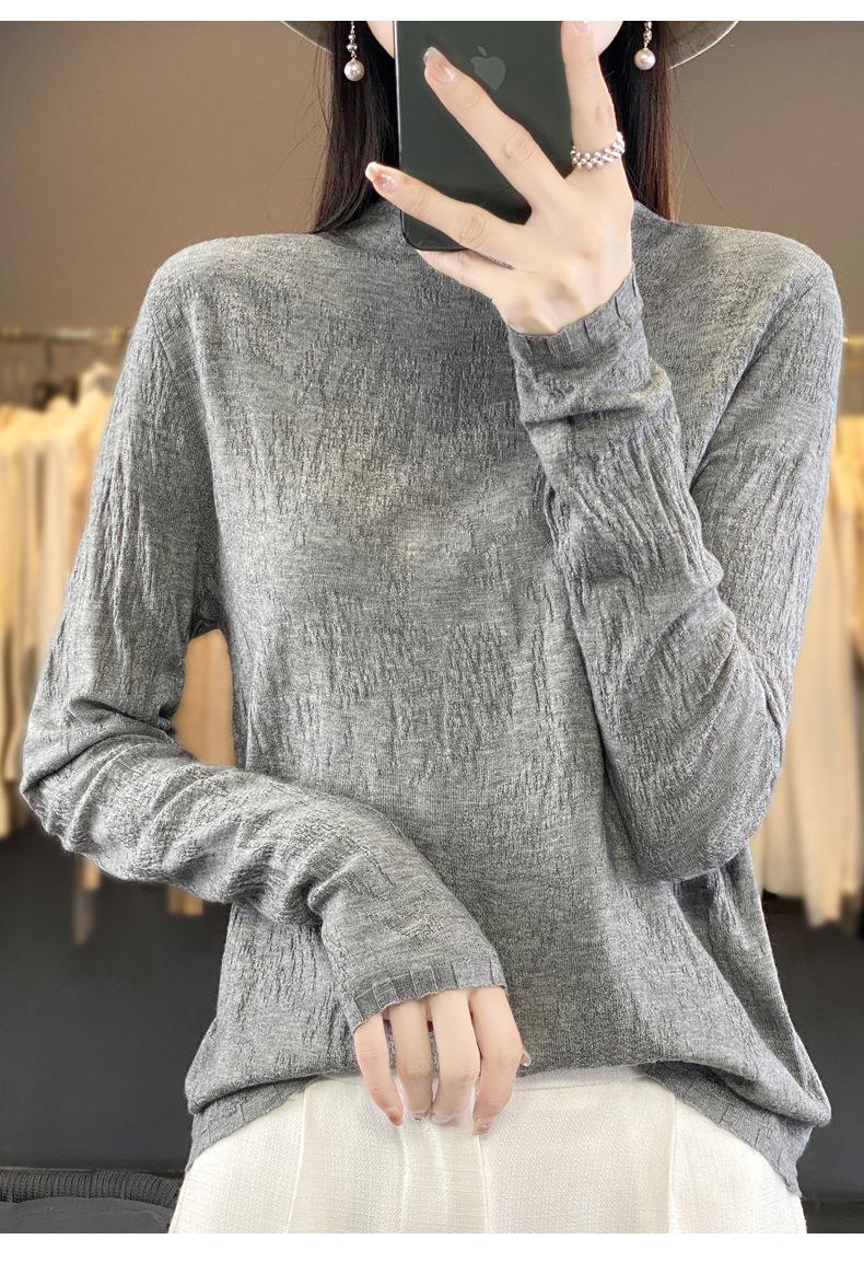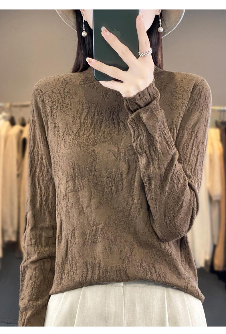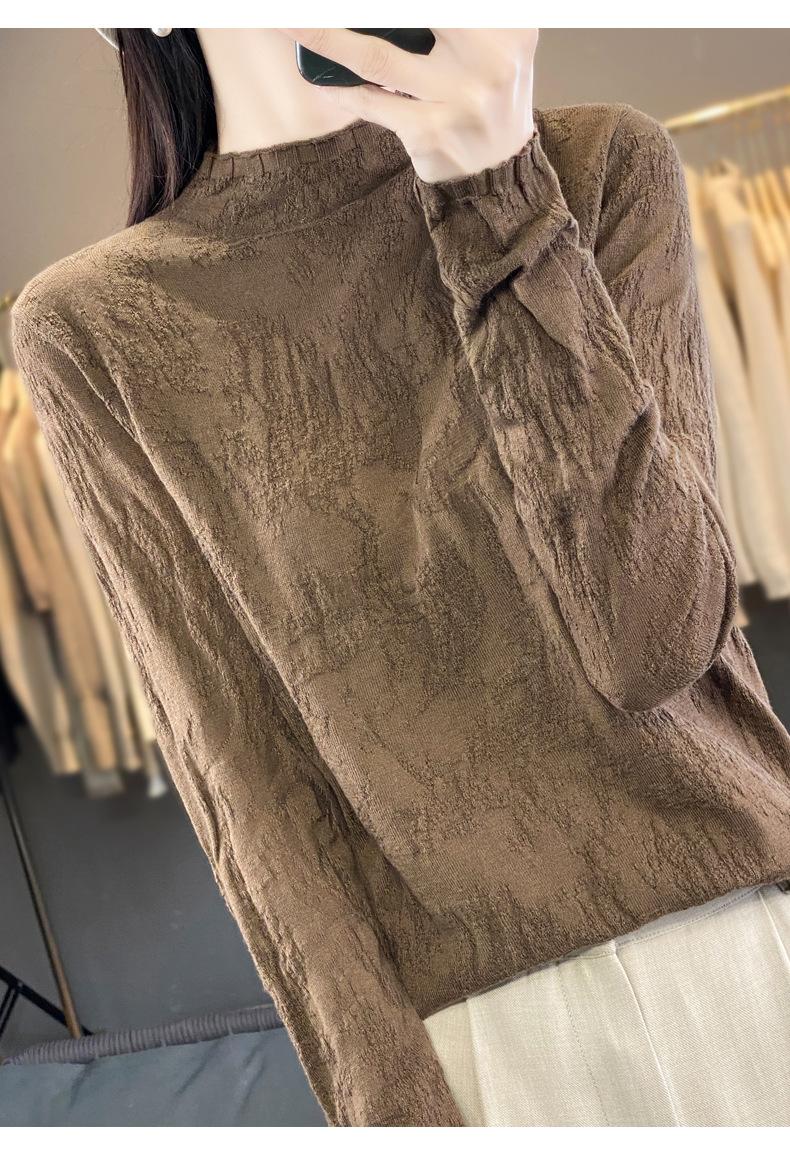 Suéter de manga larga para mujer, nuevo jersey de otoño e invierno, combinable con todo, cuello semialto, de lana sintética fina, camisa básica ajustada.