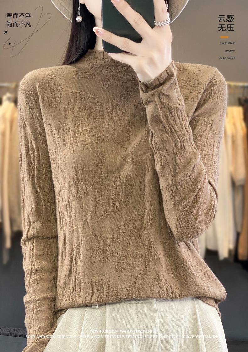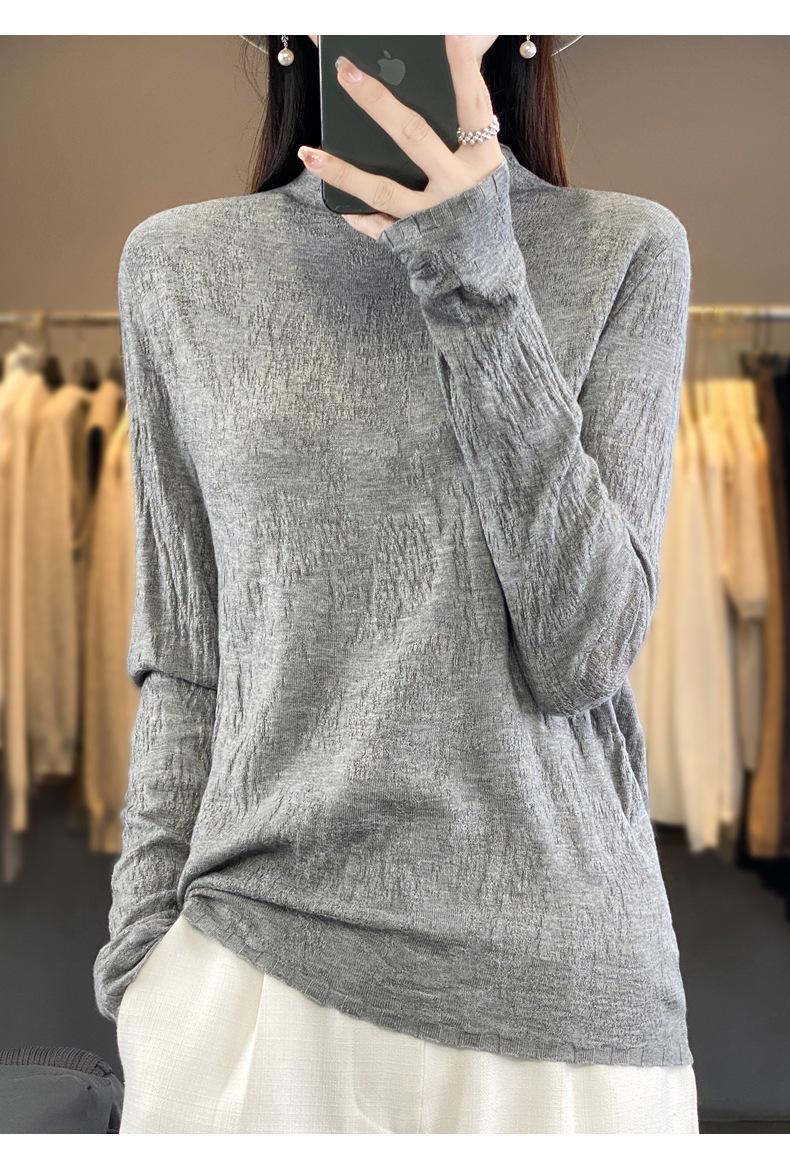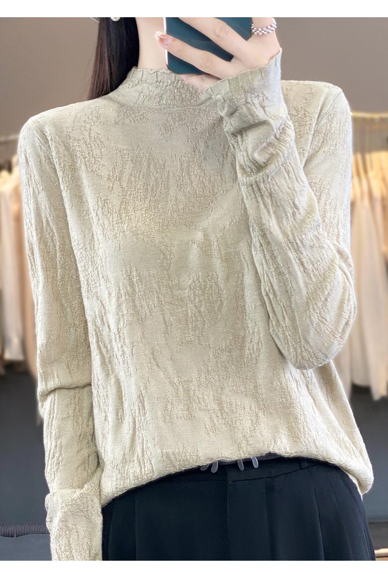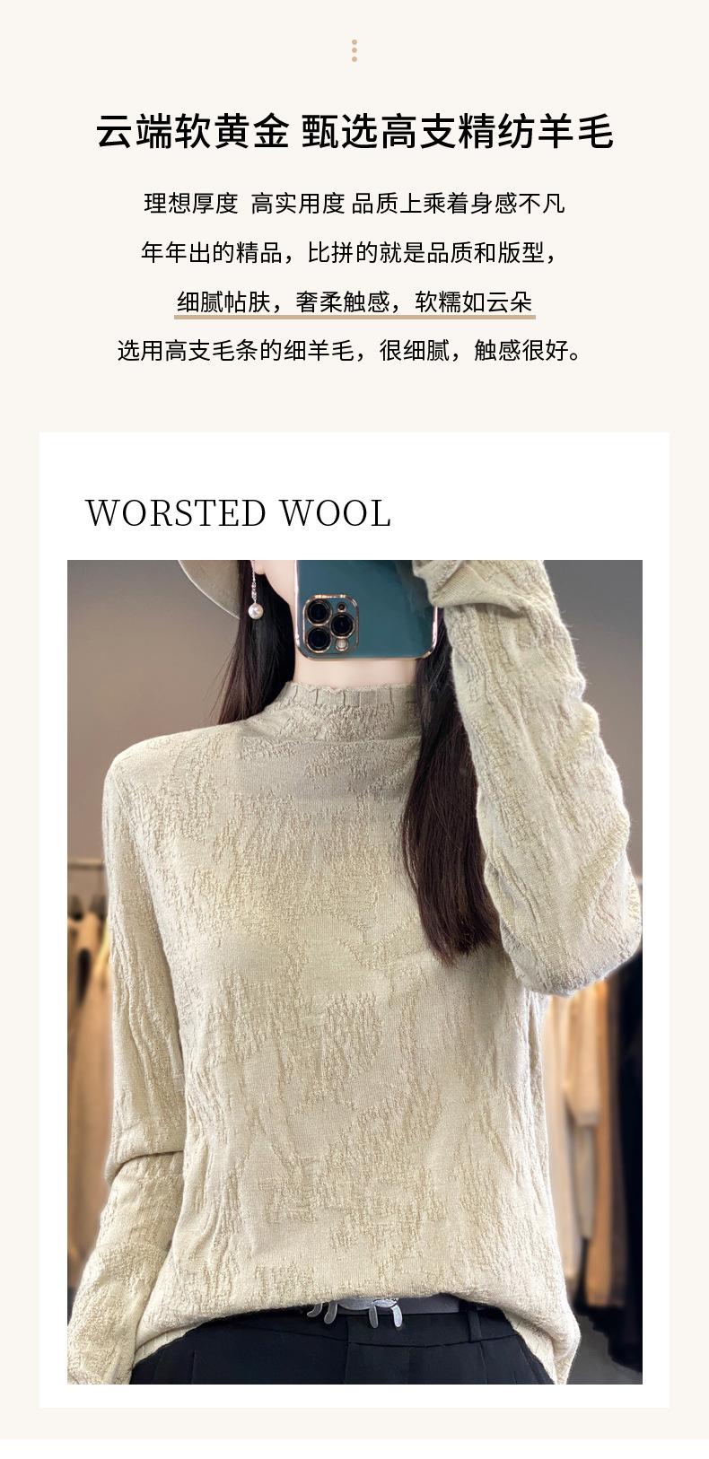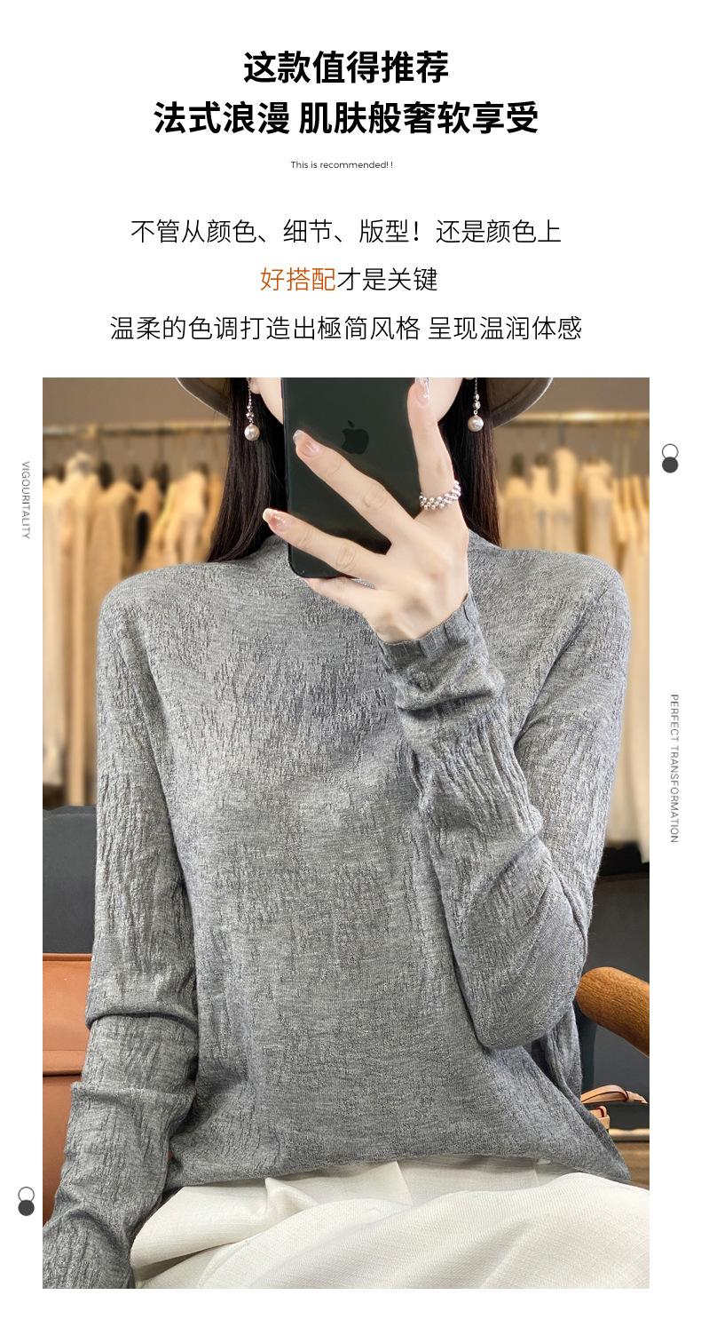 Suéter de manga larga para mujer, nuevo jersey de otoño e invierno, combinable con todo, cuello semialto, de lana sintética fina, camisa básica ajustada.