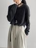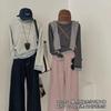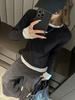 Camiseta de manga larga con cuello redondo y rayas grises de dos piezas con costuras dobladas estilo coreano para mujer, camisa interior adelgazante de corte entallado para otoño
