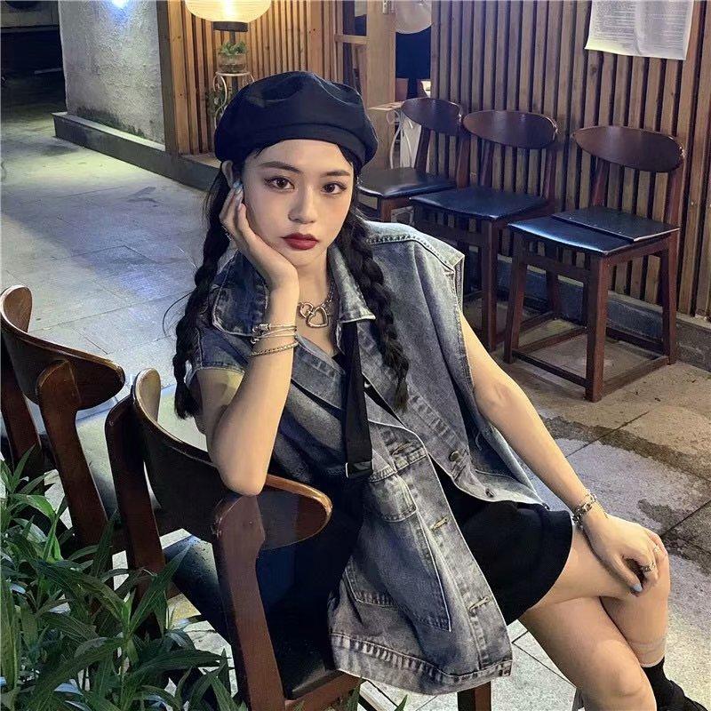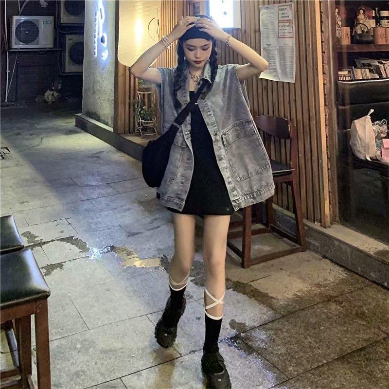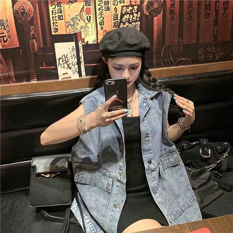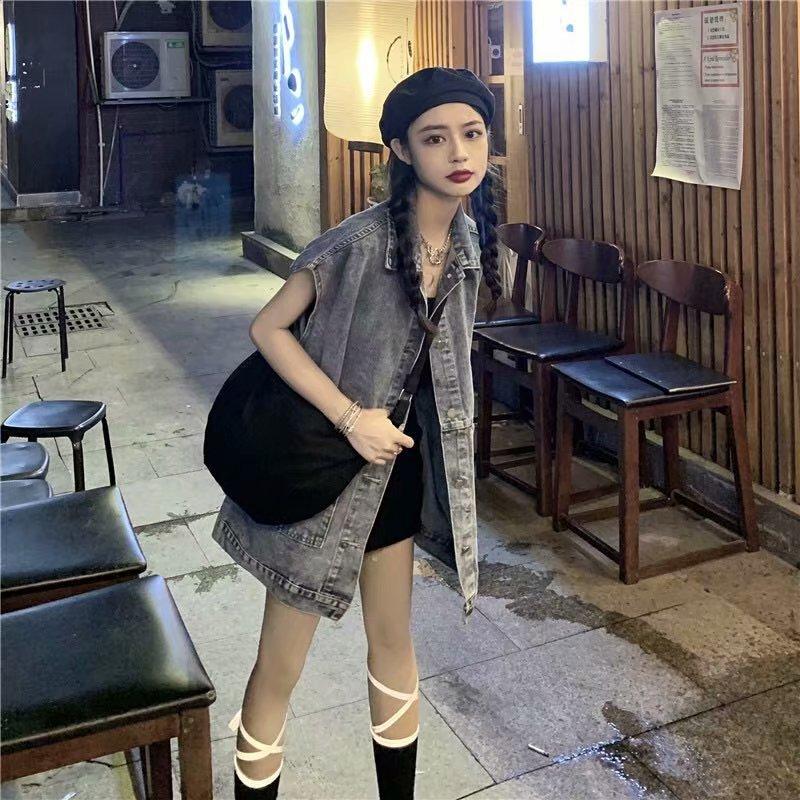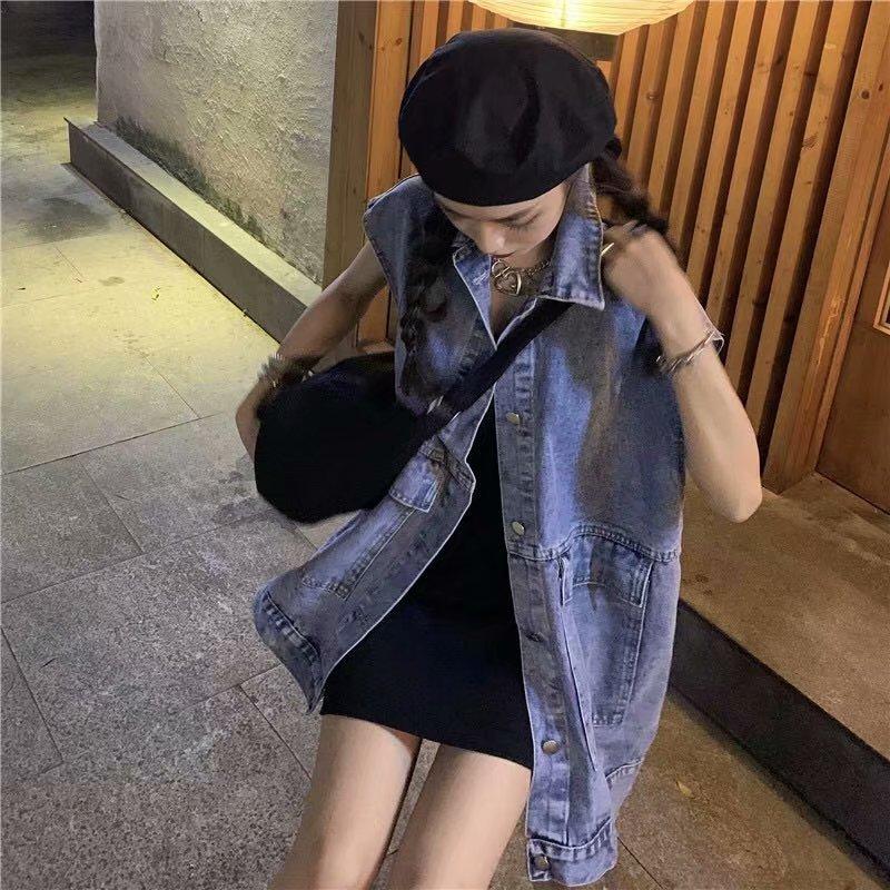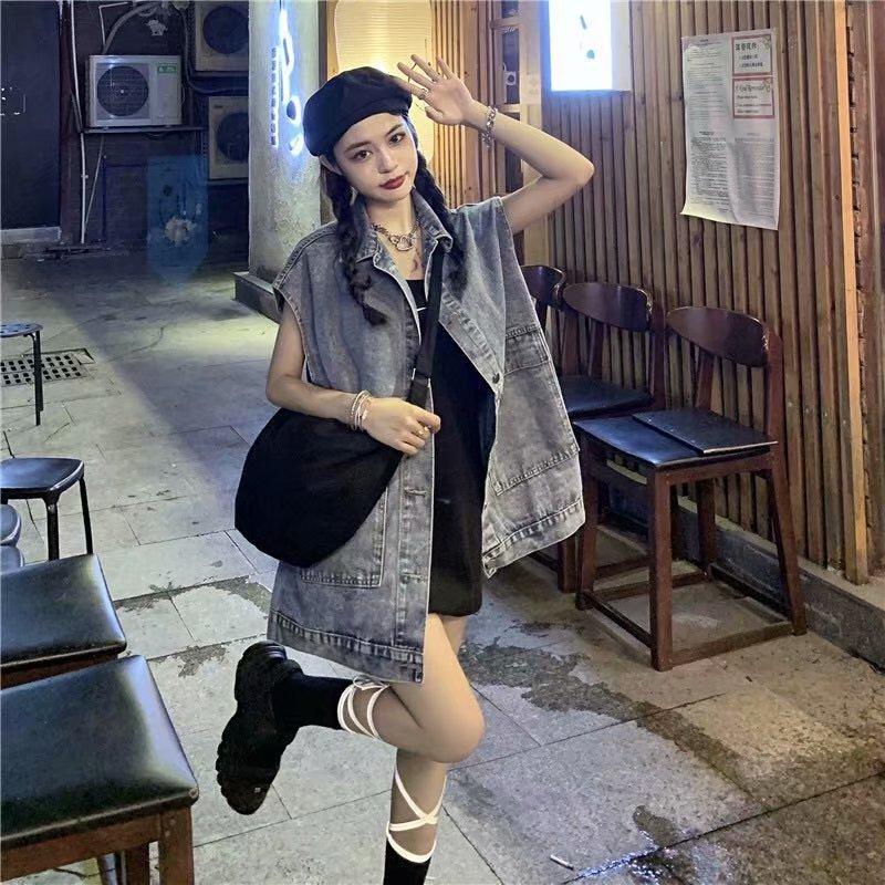 Chaleco vaquero para mujer, chaqueta holgada de verano, estilo coreano, de largo medio, combinable, sin mangas
