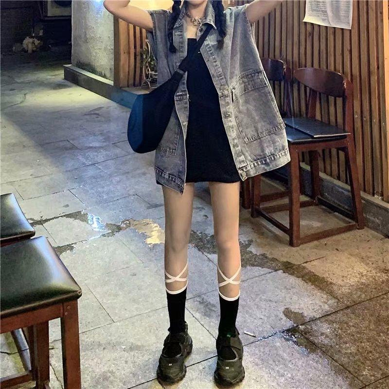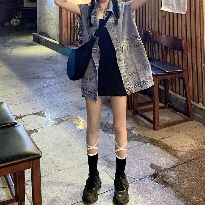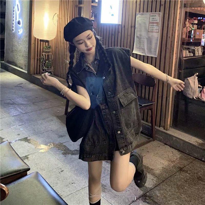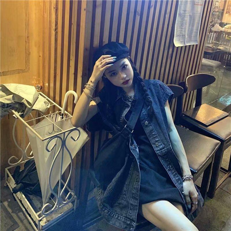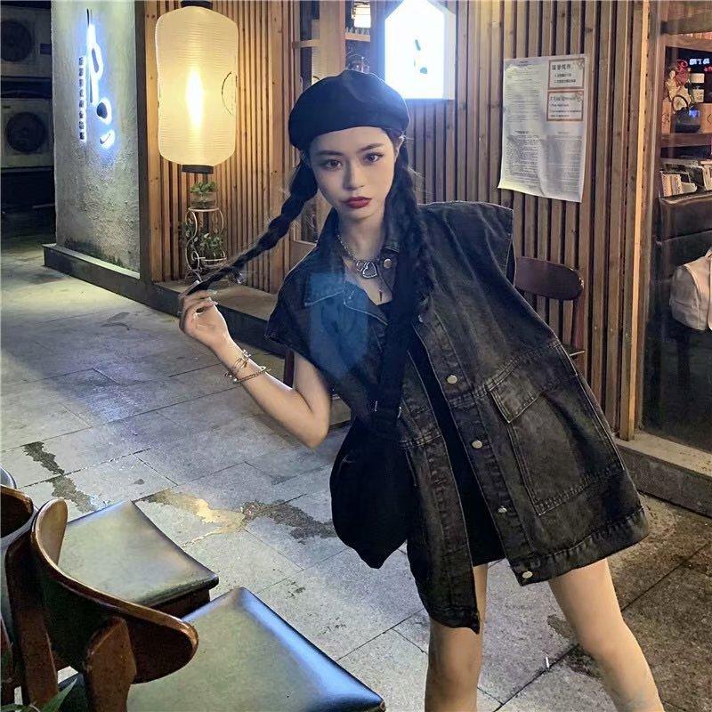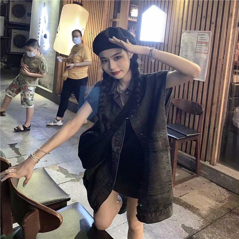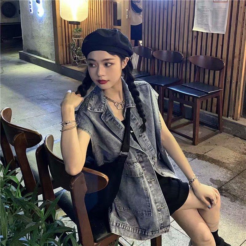 Chaleco vaquero para mujer, chaqueta holgada de verano, estilo coreano, de largo medio, combinable, sin mangas