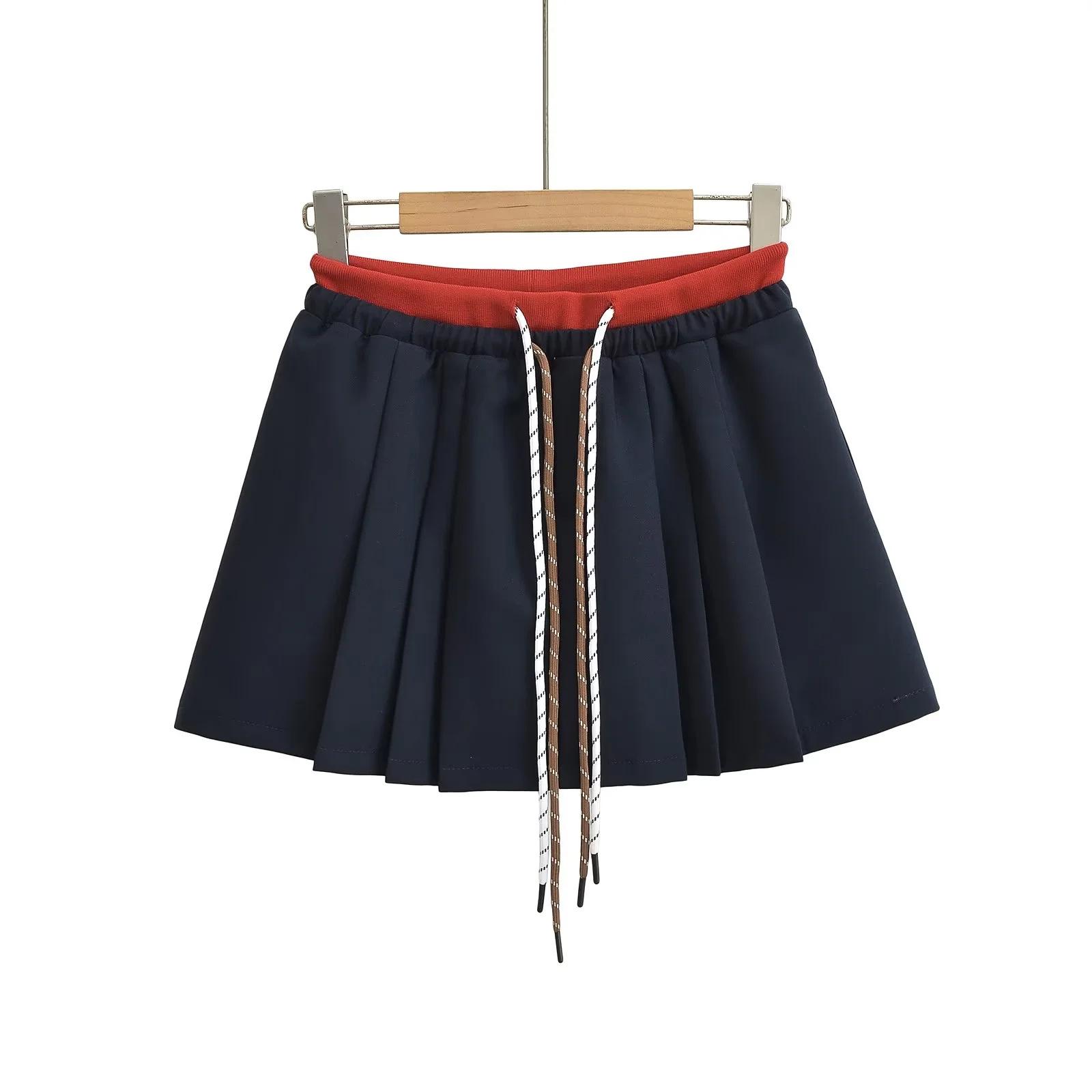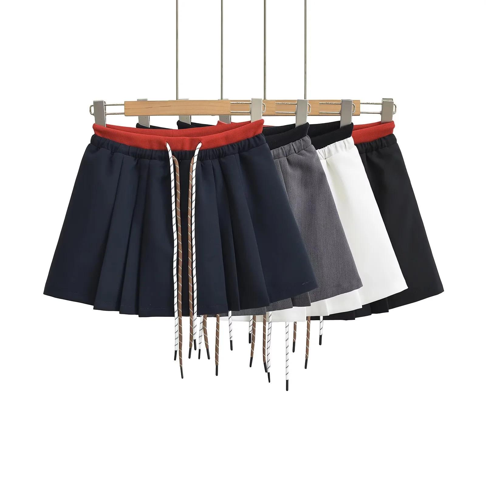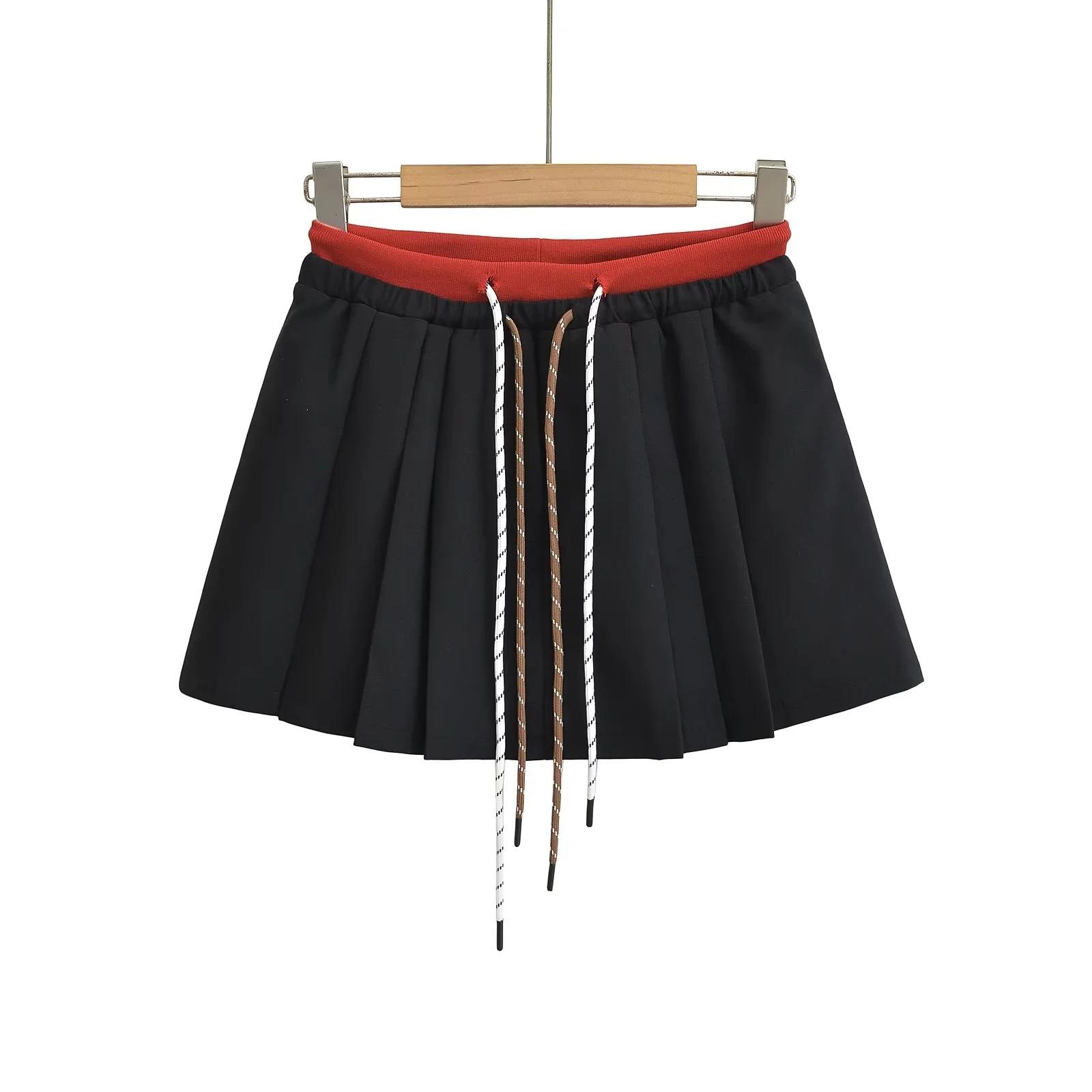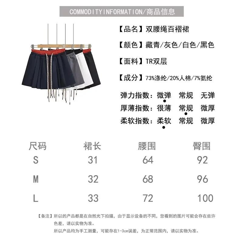 Falda plisada de cintura alta con cordón ajustable, estilo coreano, antiedad, de corte A, estilo americano, con contraste de color y doble cintura, nueva de otoño
