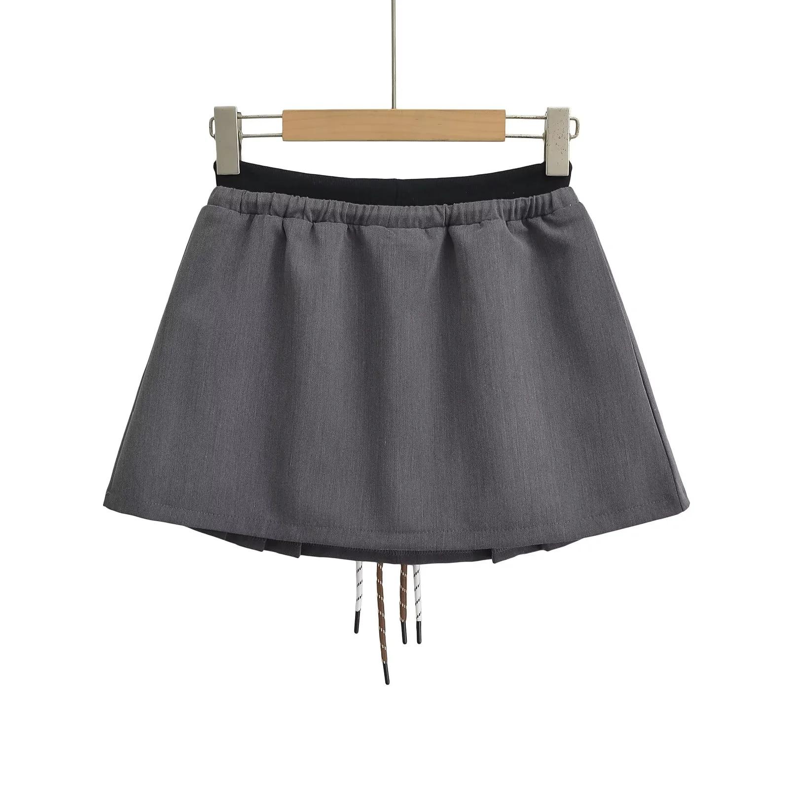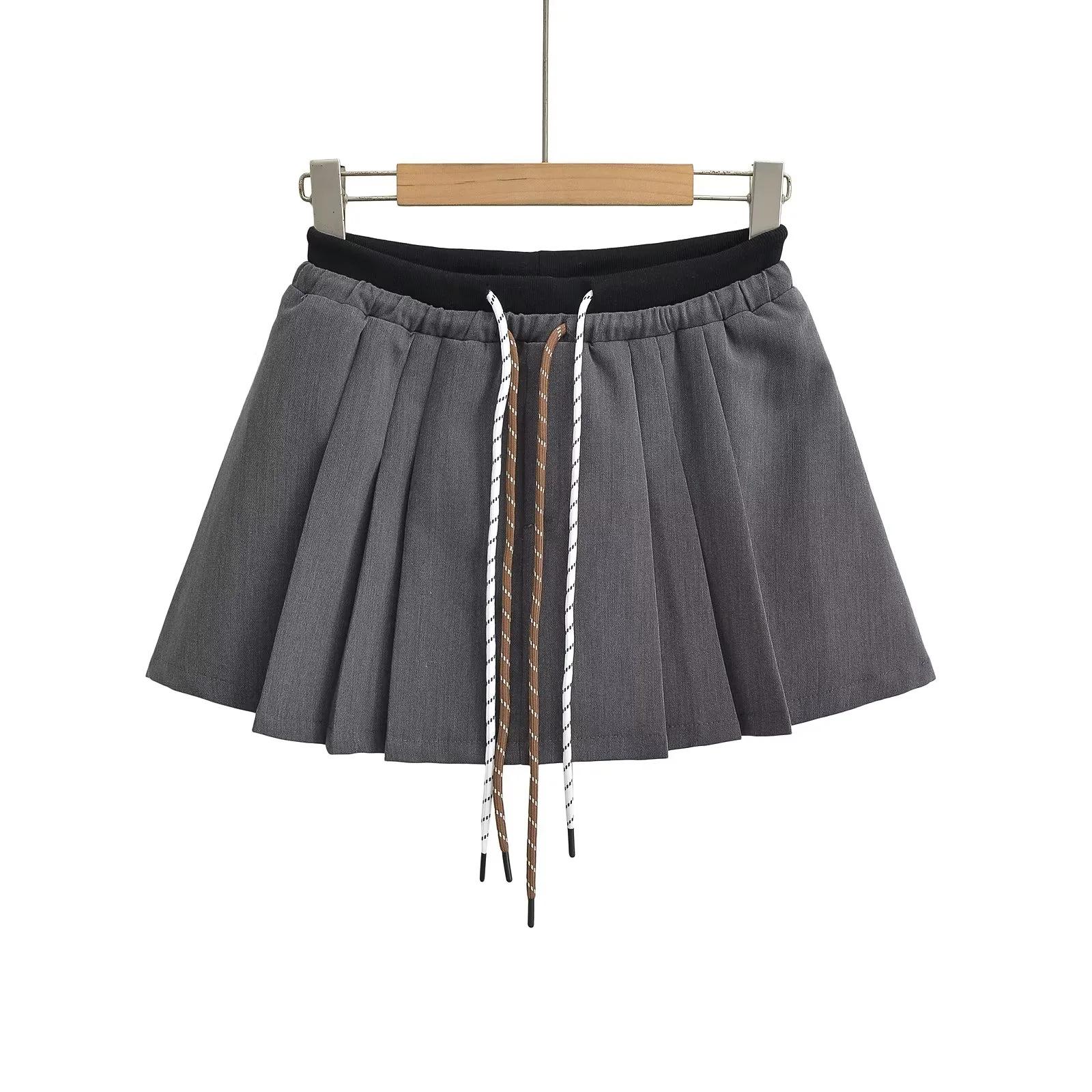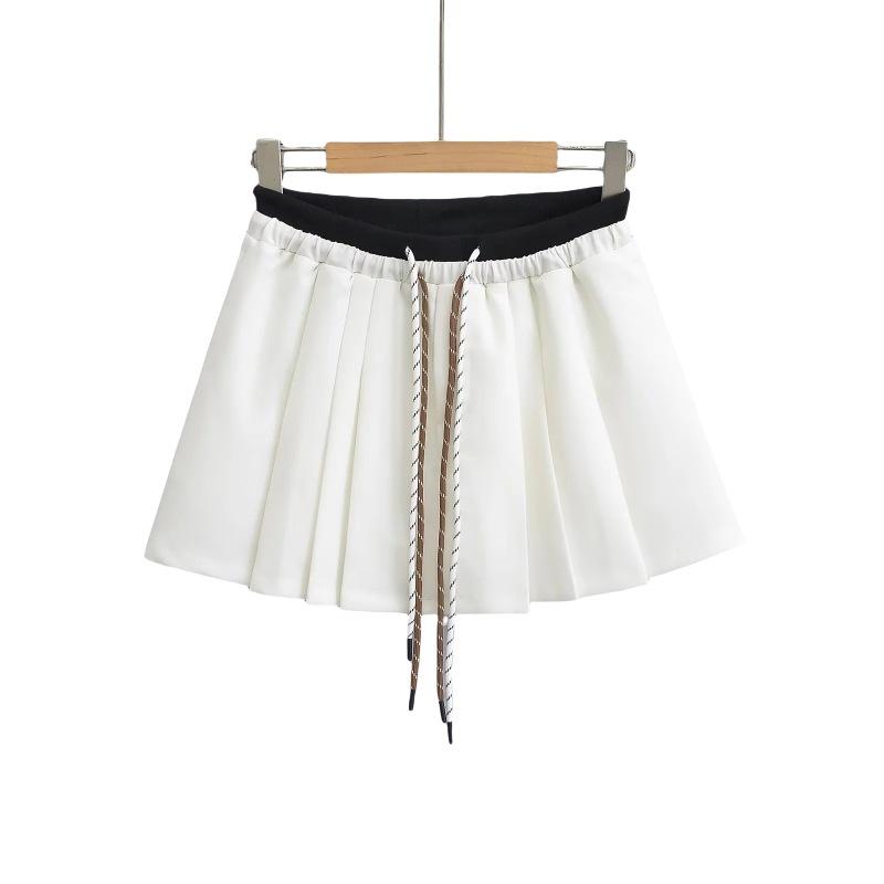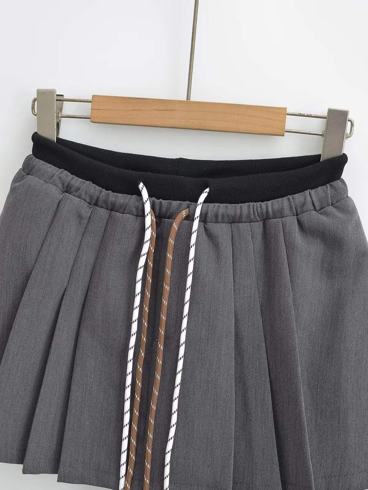 Falda plisada de cintura alta con cordón ajustable, estilo coreano, antiedad, de corte A, estilo americano, con contraste de color y doble cintura, nueva de otoño