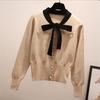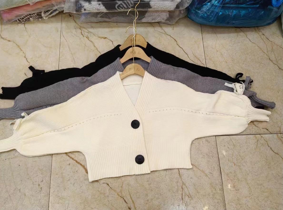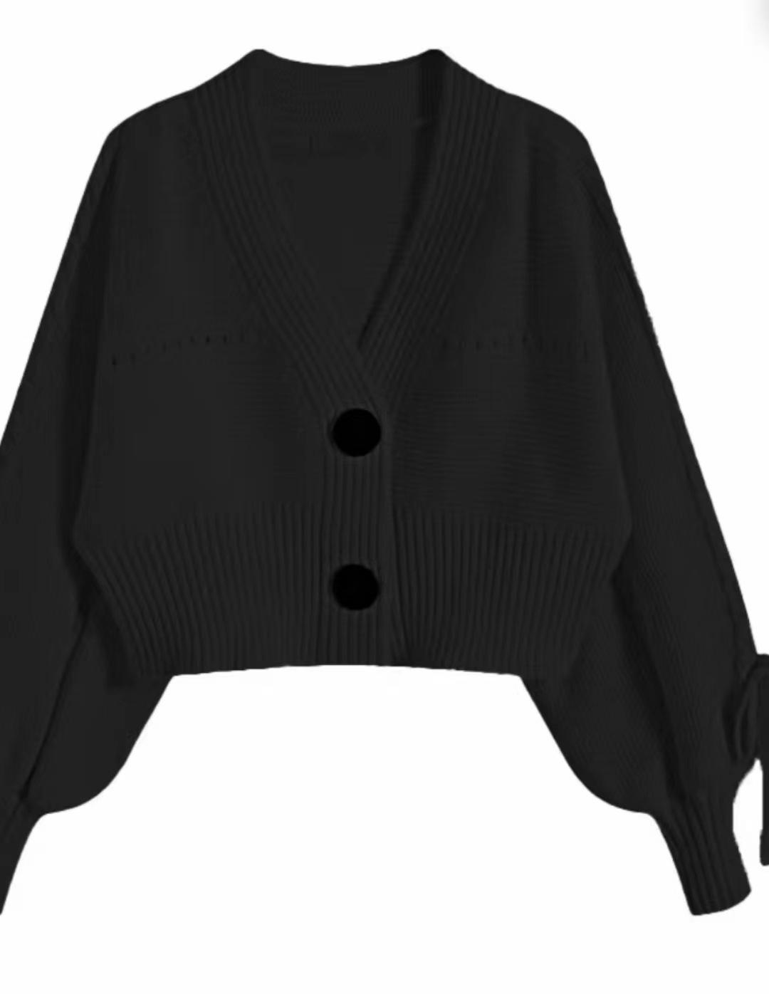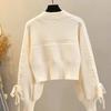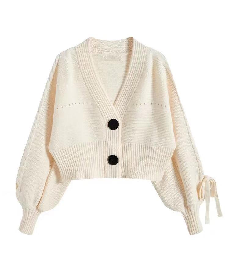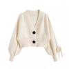 Cárdigan Elegante Grueso Delgado de Punto para Mujer Invierno Suelto Corto Cintura Alta Cuello en V Suéter Manga Linterna Abrigo Top