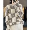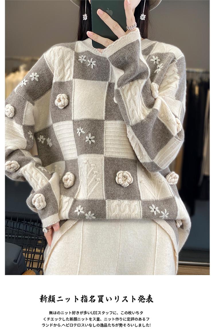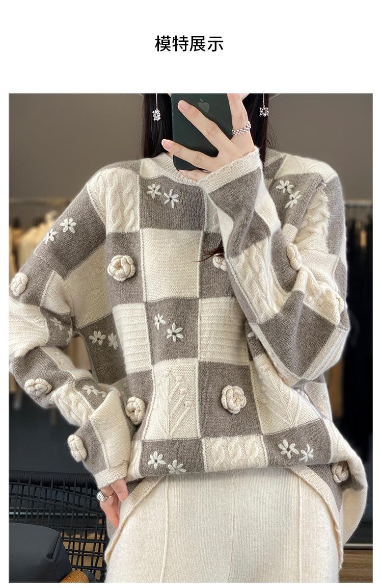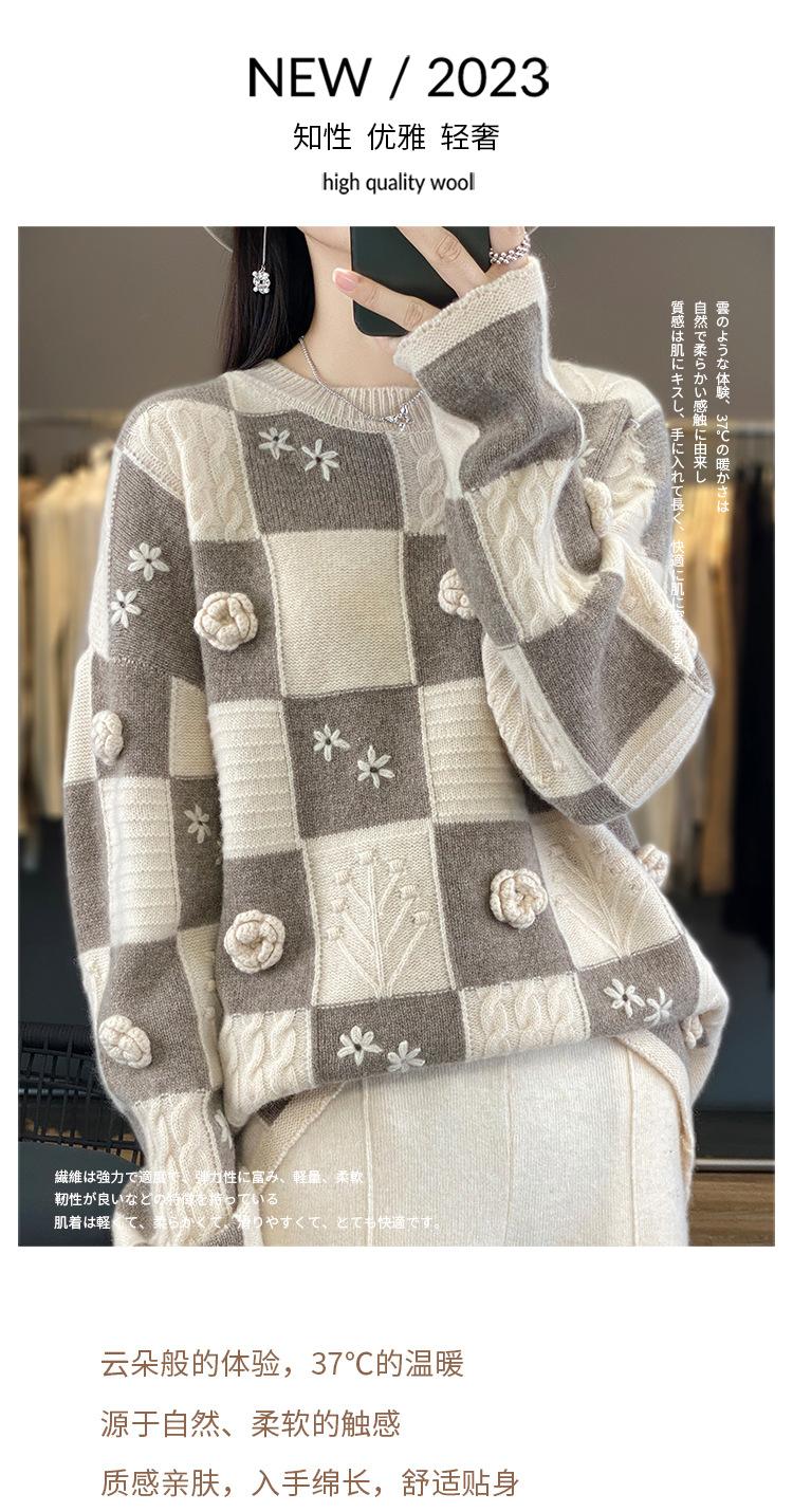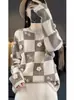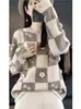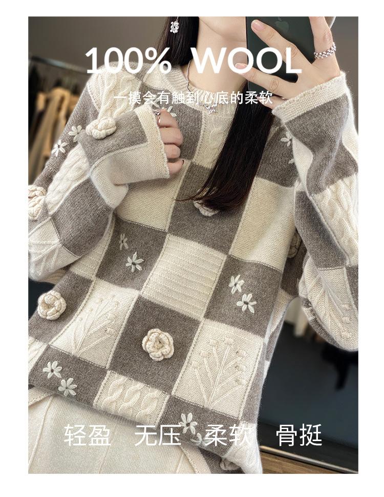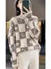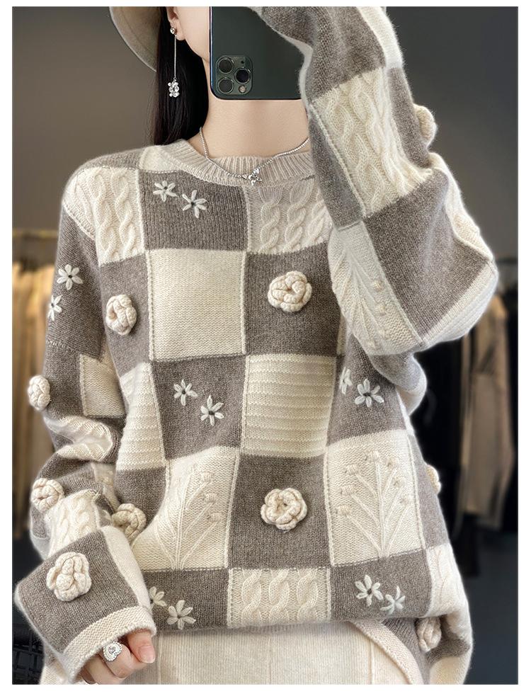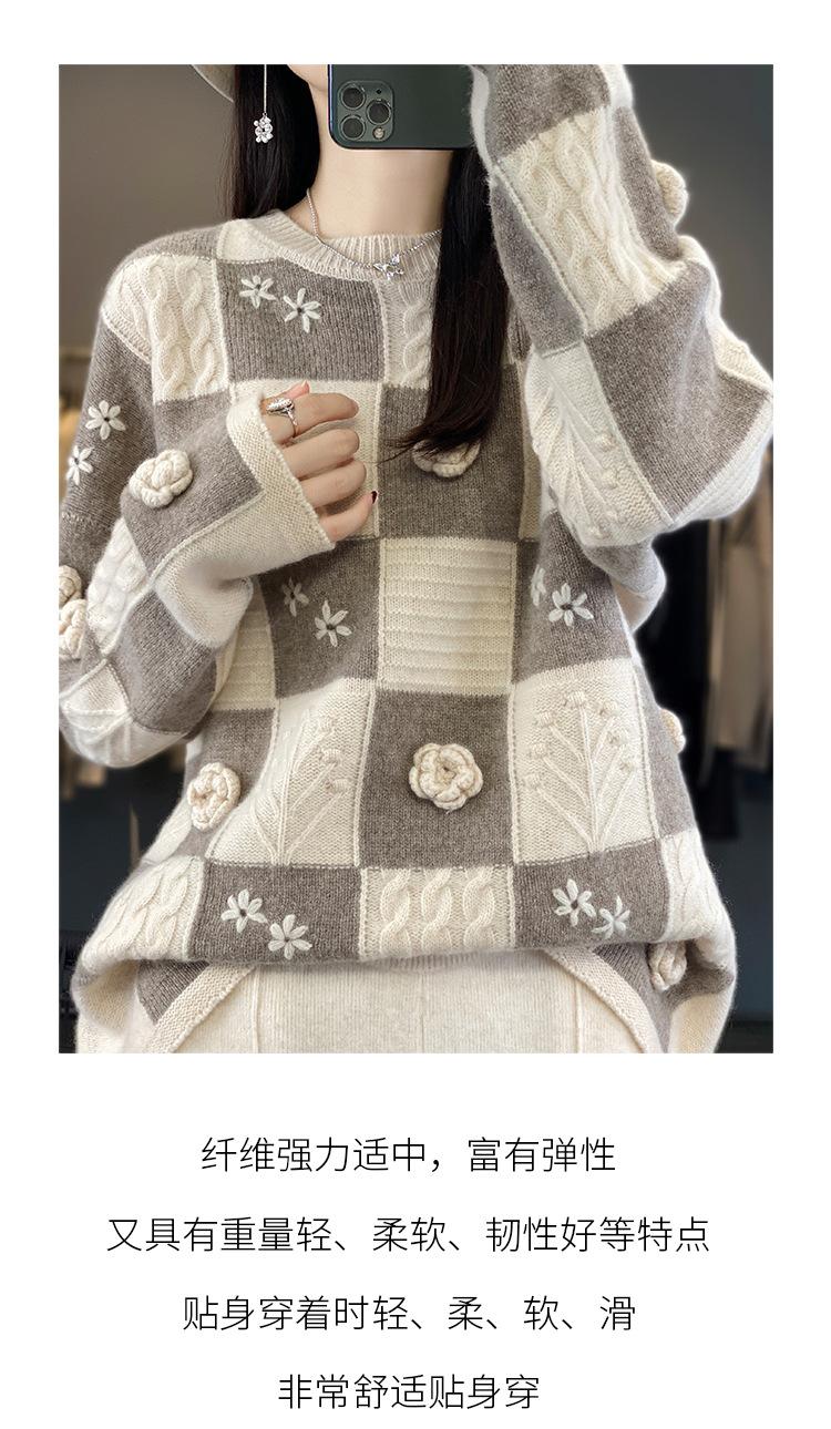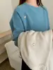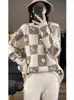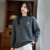 Suéter de Lana 100% Pura para Mujer Cuello Redondo Combinación de Colores Manga Larga Suelto Slim Estilo Coreano Suéter de Cachemira Suéter Base Interior