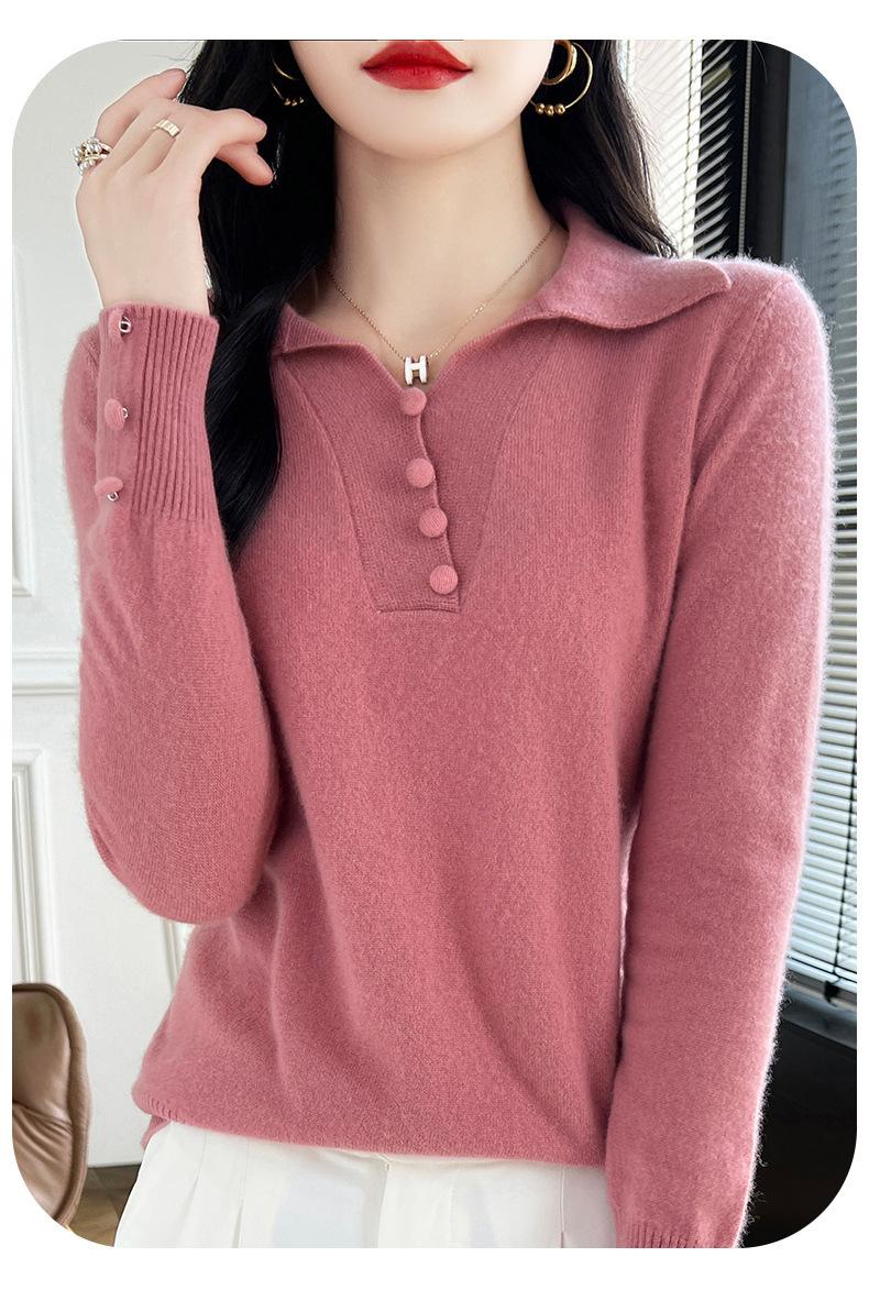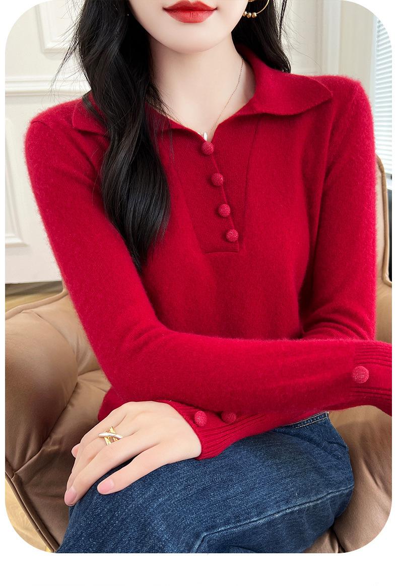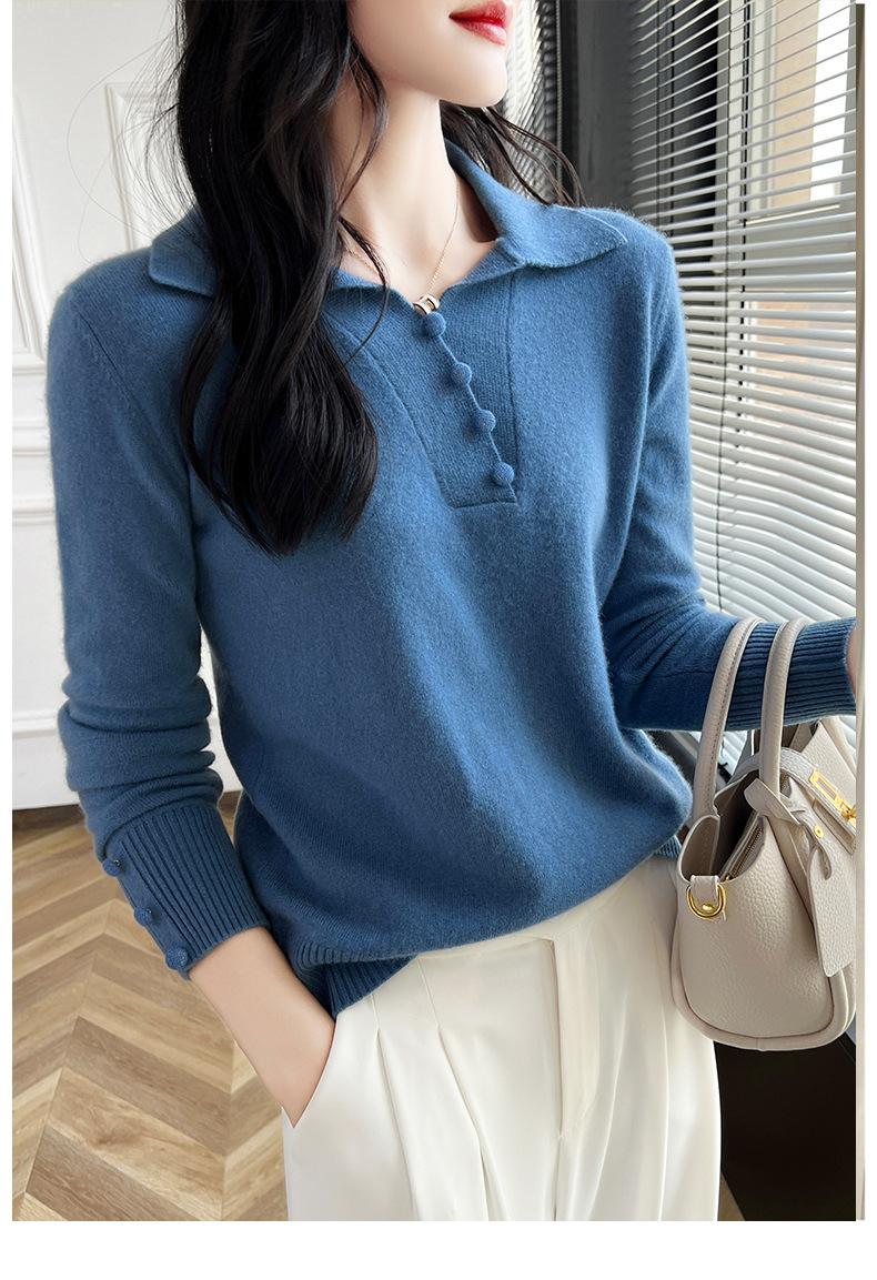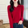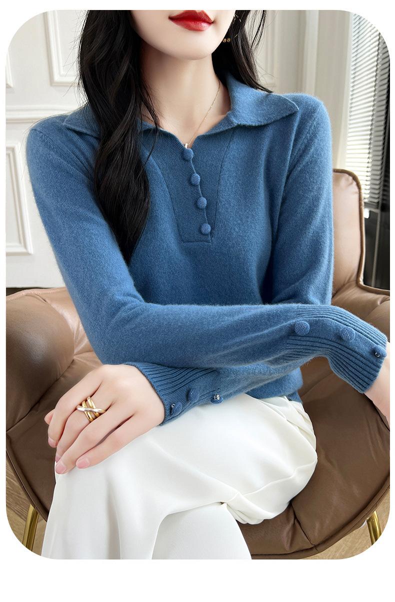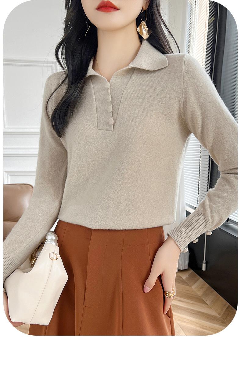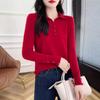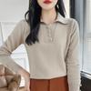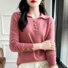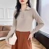 Suéter de moda de otoño e invierno 2024, top de solapa para mujer, suéter de cachemira versátil de manga larga para mujer, camisa base