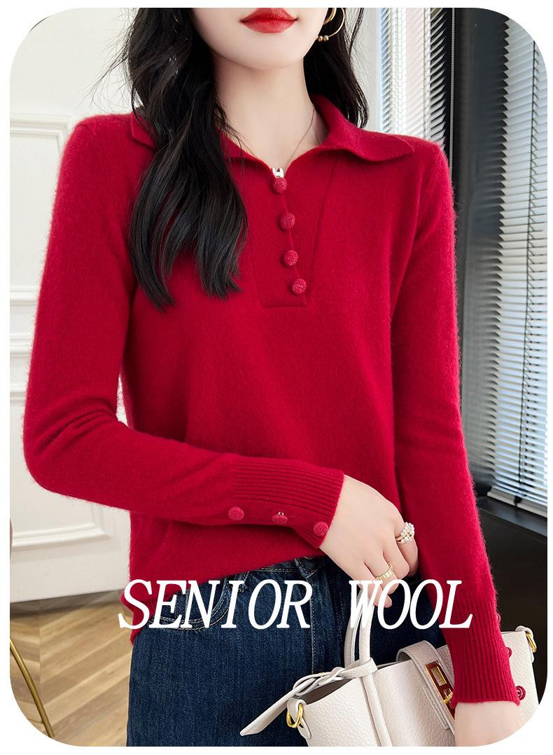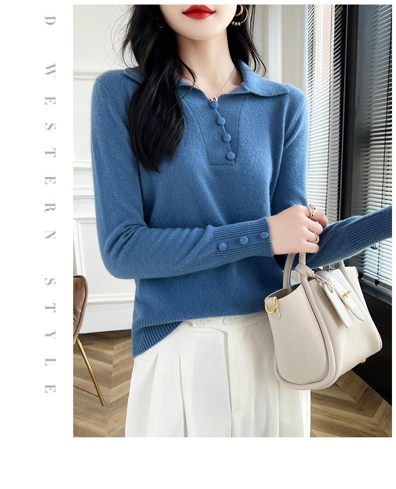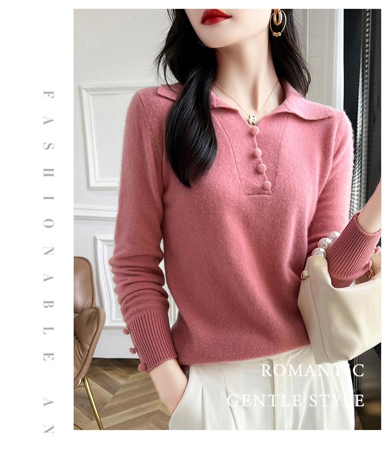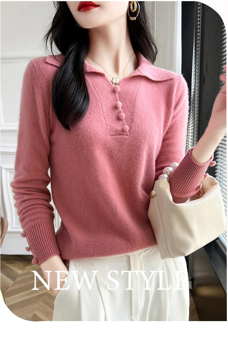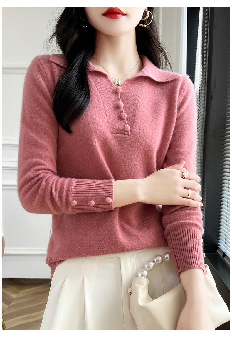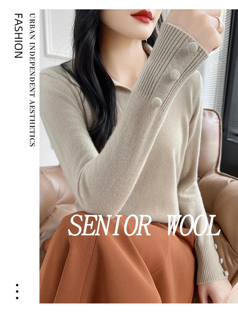 Suéter de moda de otoño e invierno 2024, top de solapa para mujer, suéter de cachemira versátil de manga larga para mujer, camisa base