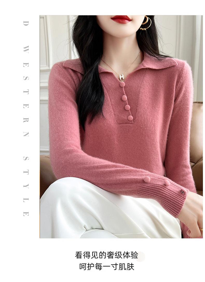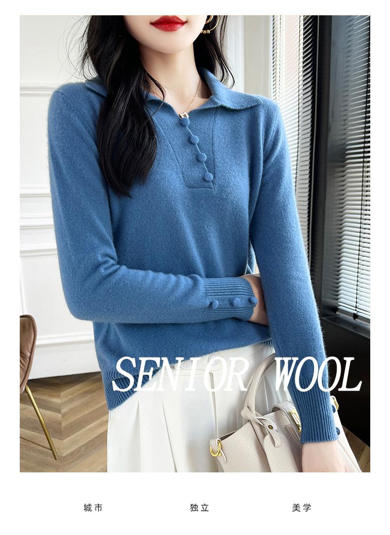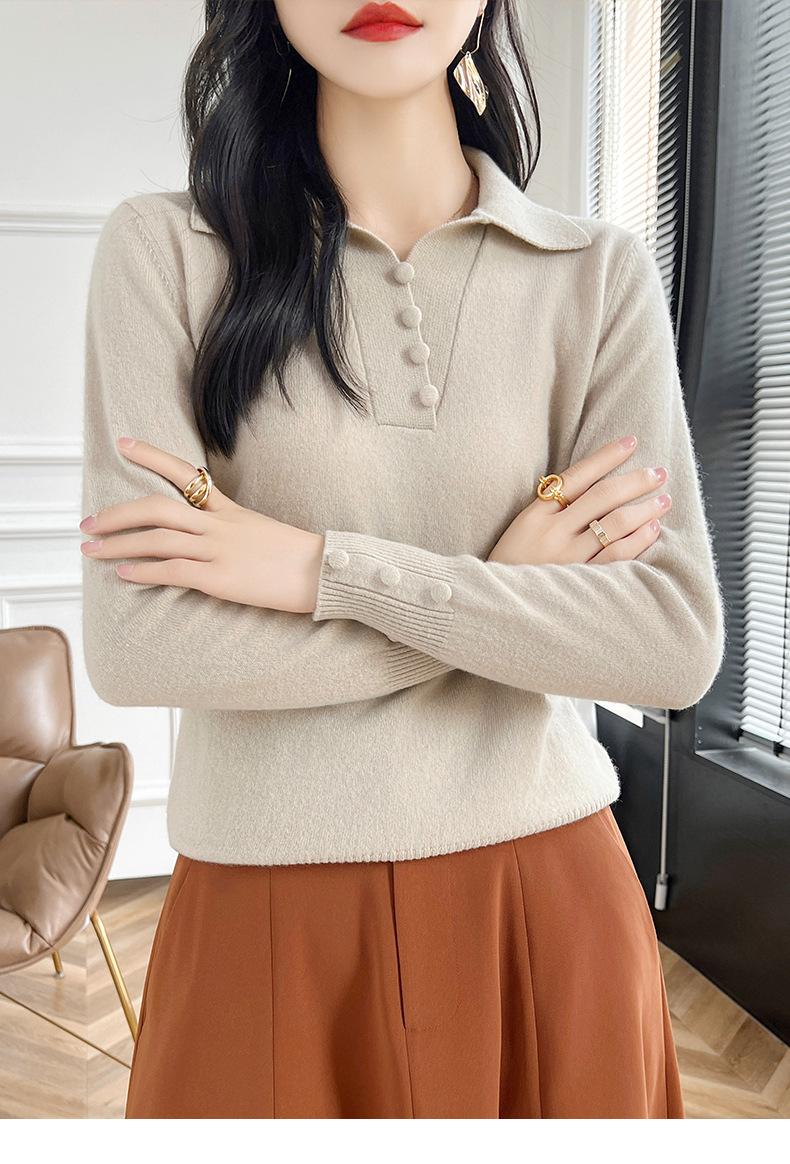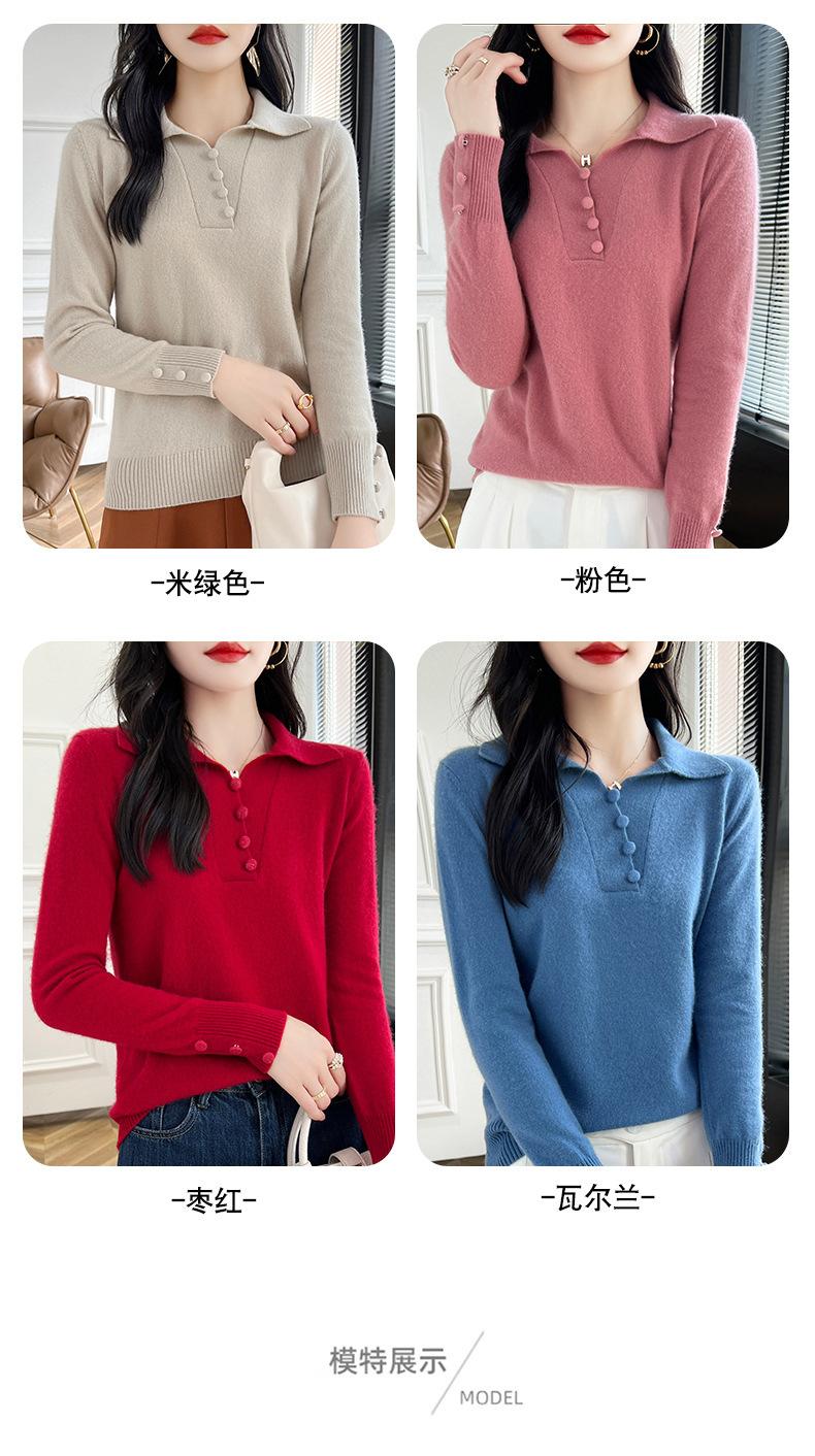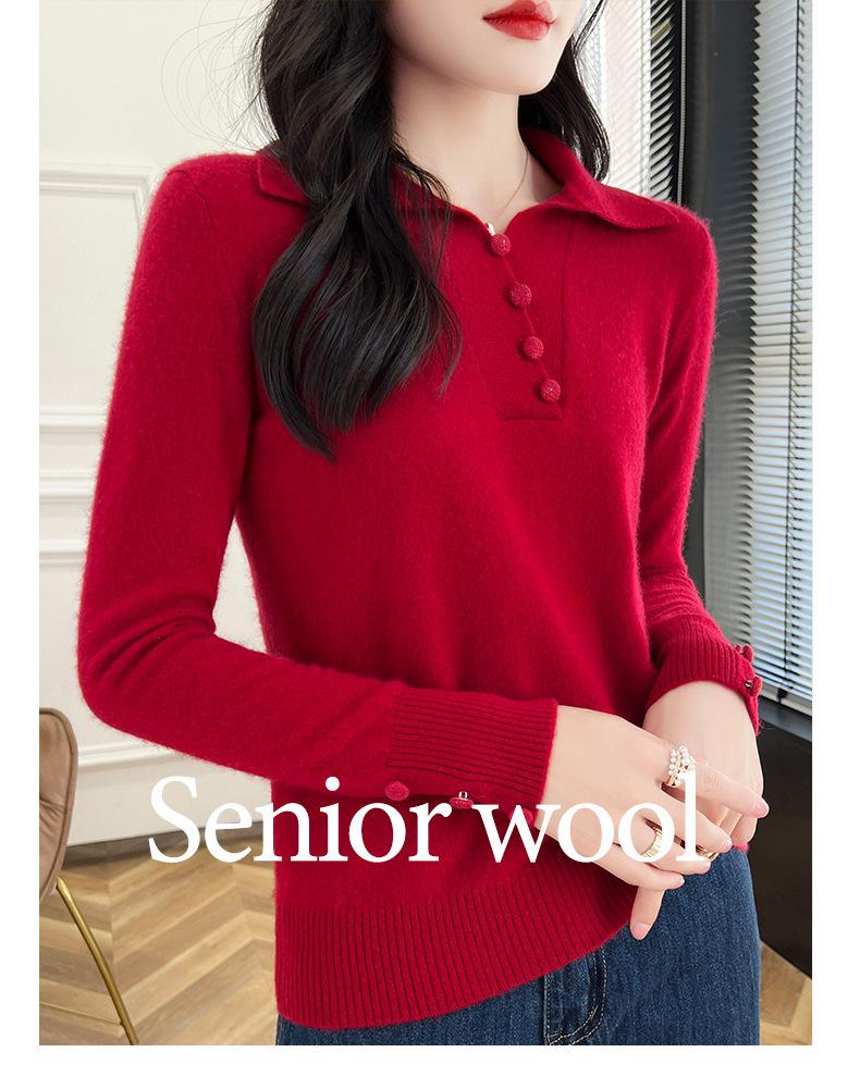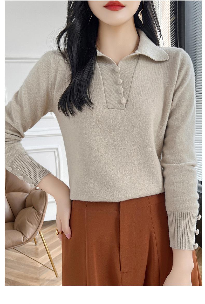 Suéter de moda de otoño e invierno 2024, top de solapa para mujer, suéter de cachemira versátil de manga larga para mujer, camisa base