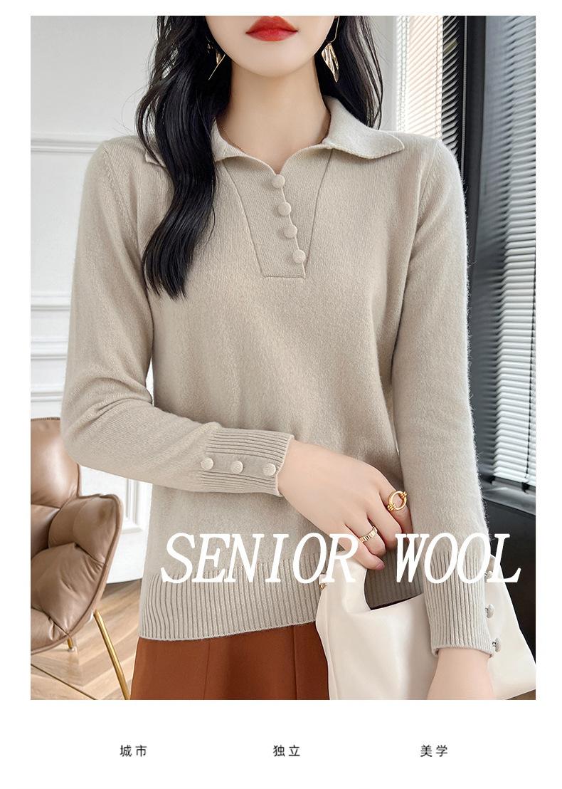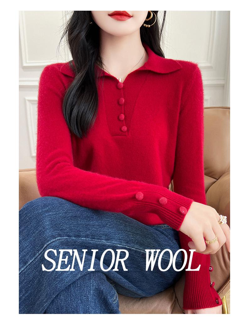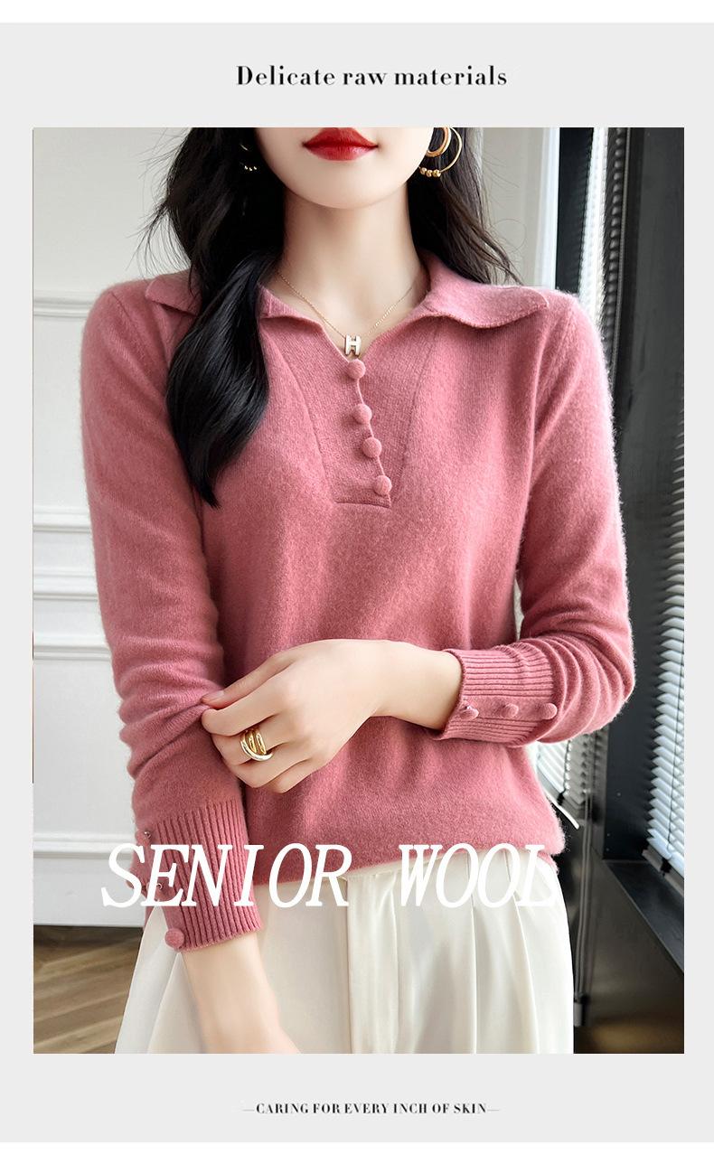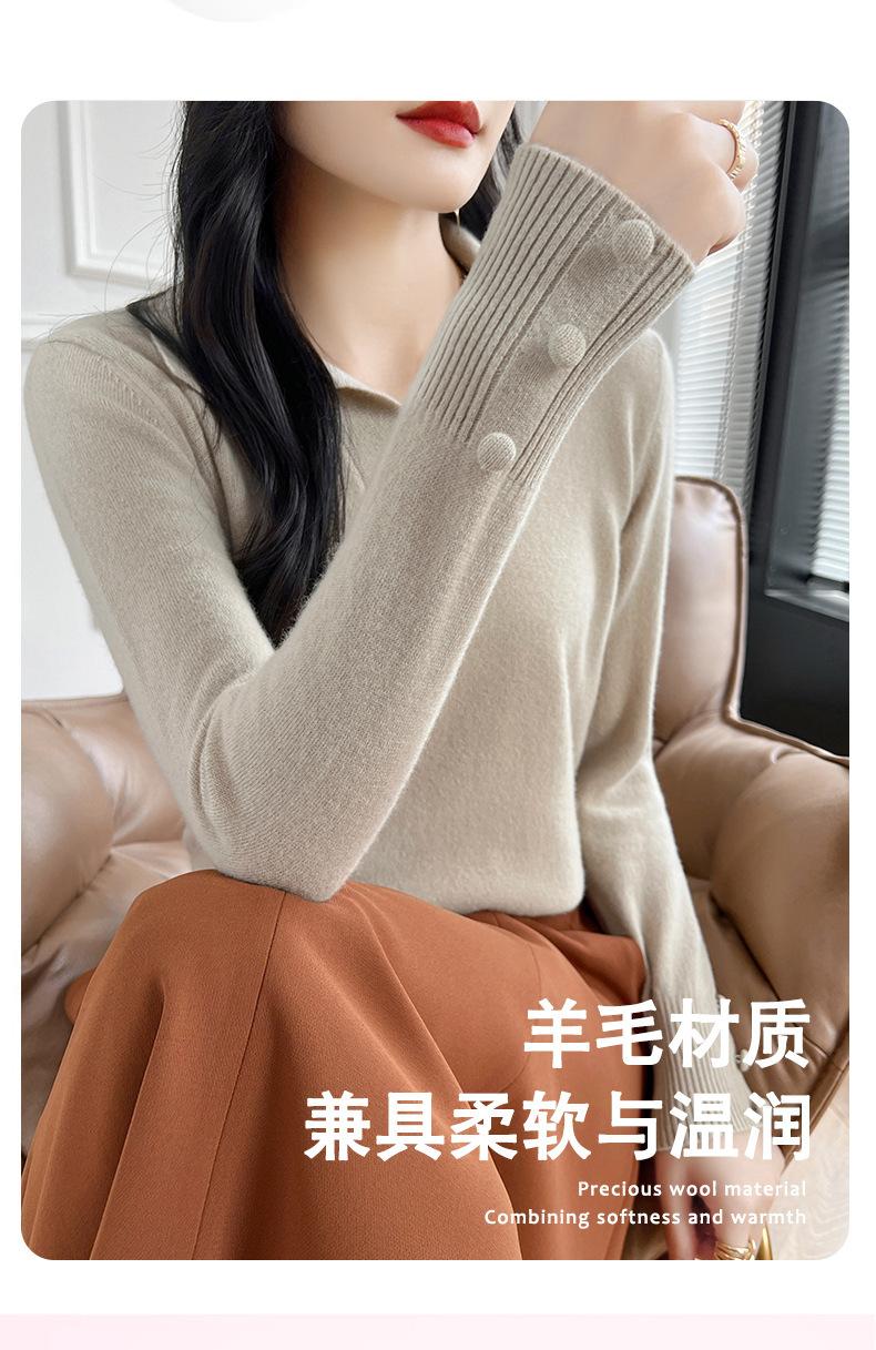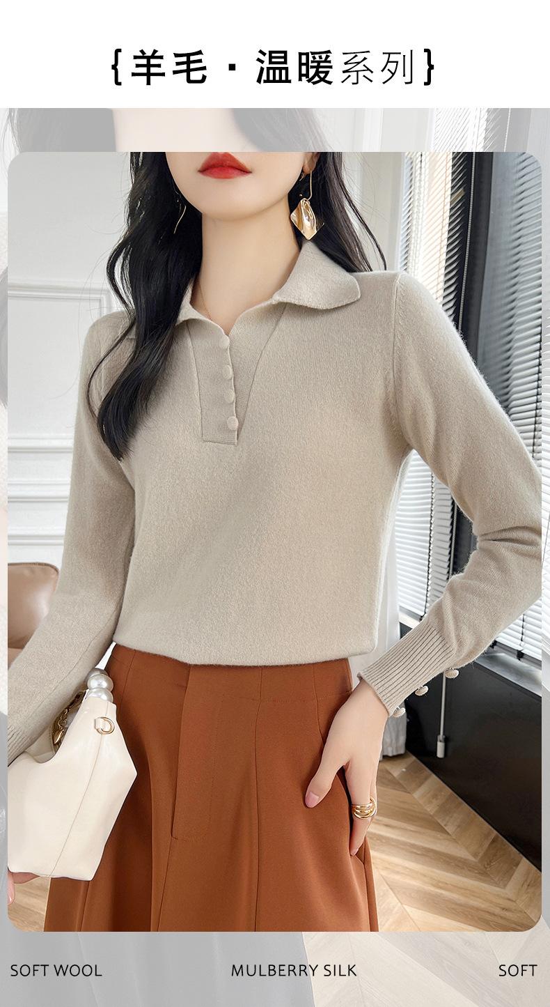 Suéter de moda de otoño e invierno 2024, top de solapa para mujer, suéter de cachemira versátil de manga larga para mujer, camisa base