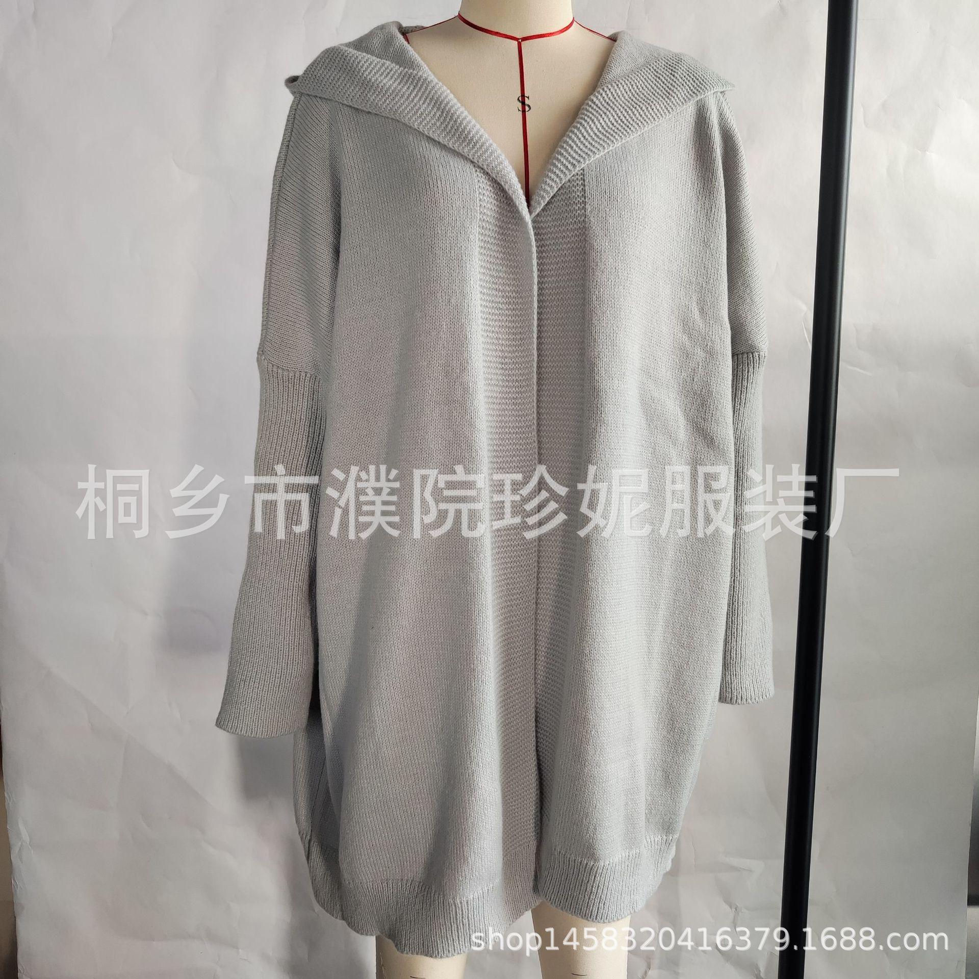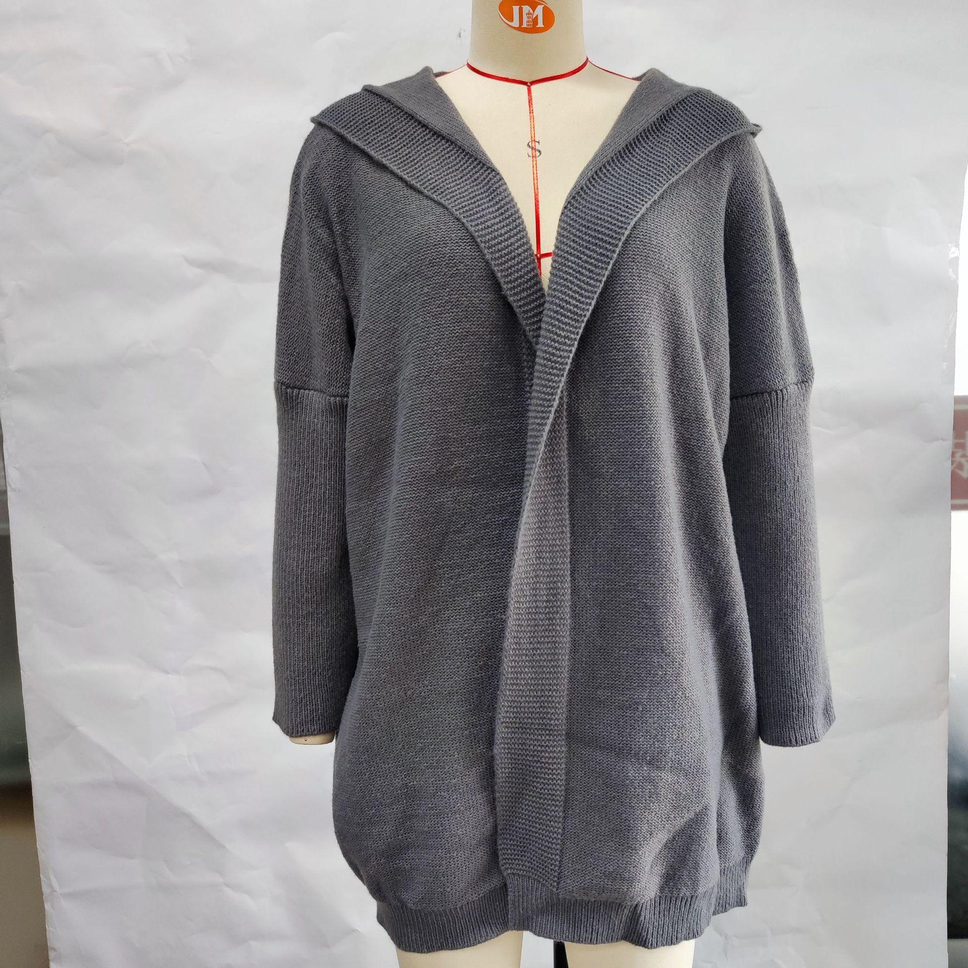 Cárdigan con capucha de comercio exterior nuevo transfronterizo Amazon Suéter de mujer Chaqueta de punto europea y americana con abertura frontal Manga larga Nuevo estilo