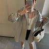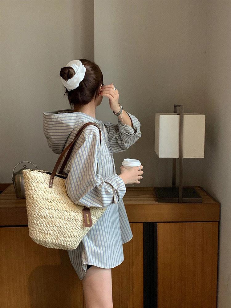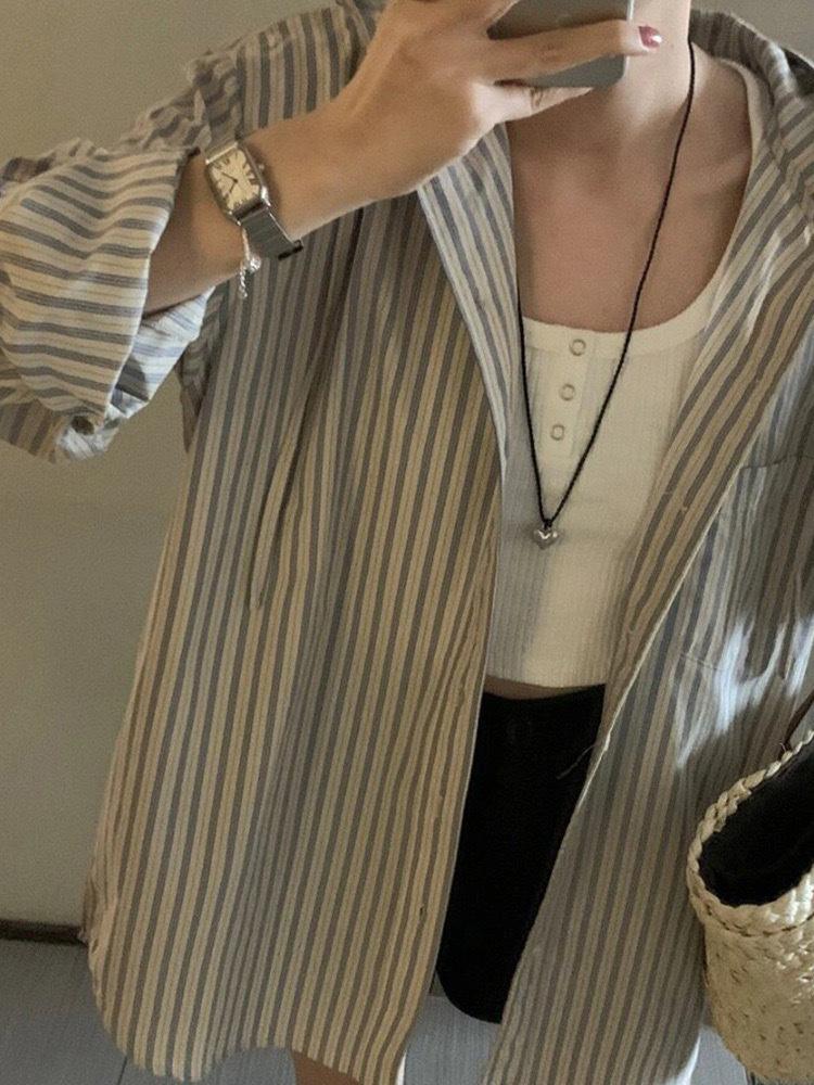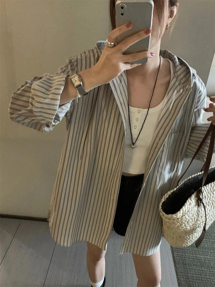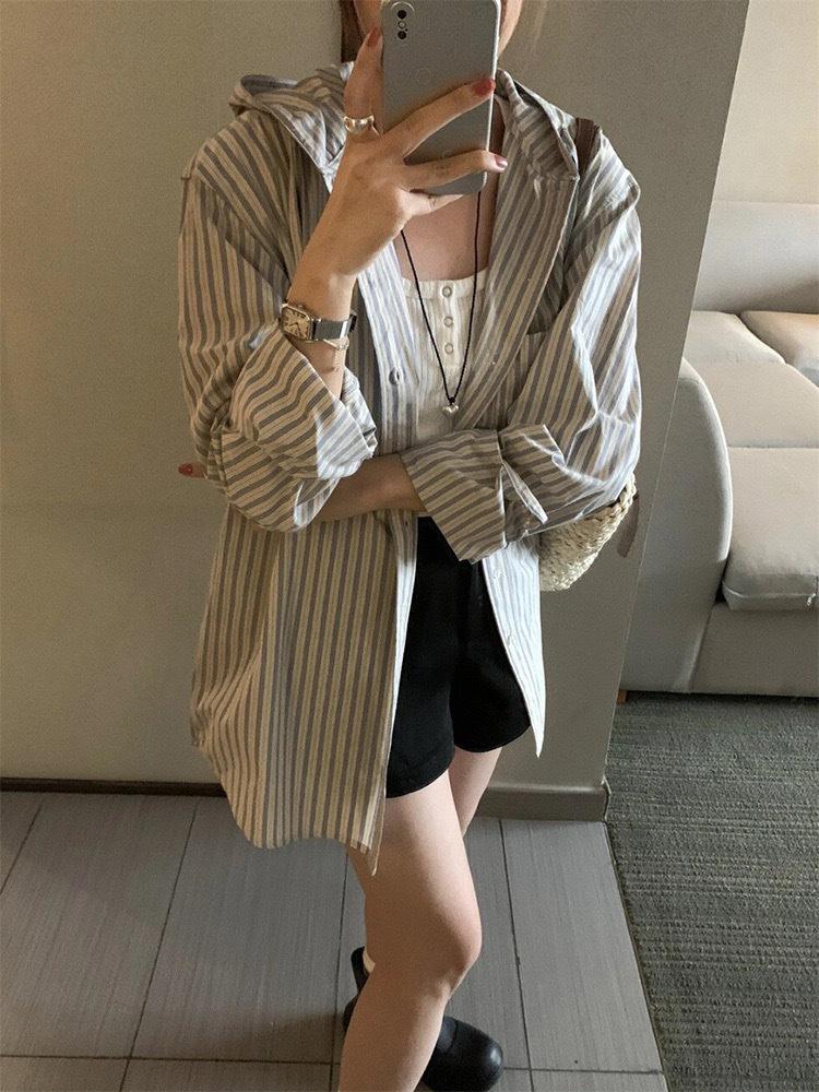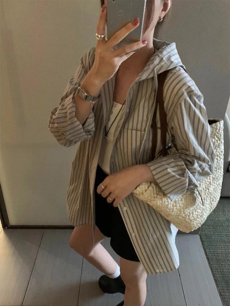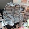 Chaqueta con capucha a rayas para primavera y otoño, estilo coreano, minimalista, holgada e informal, de manga larga y longitud media.