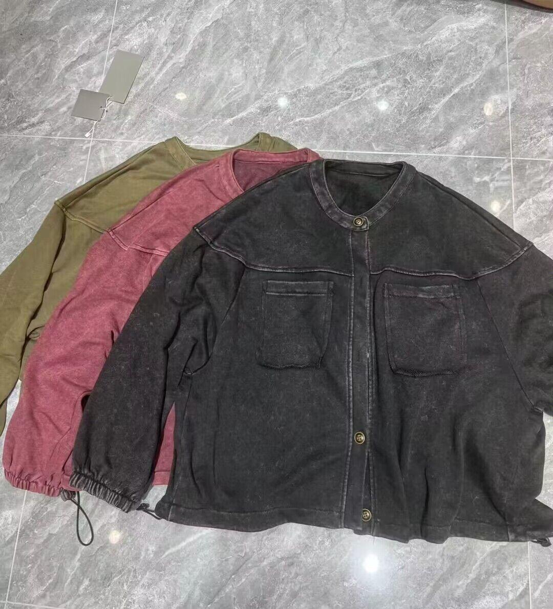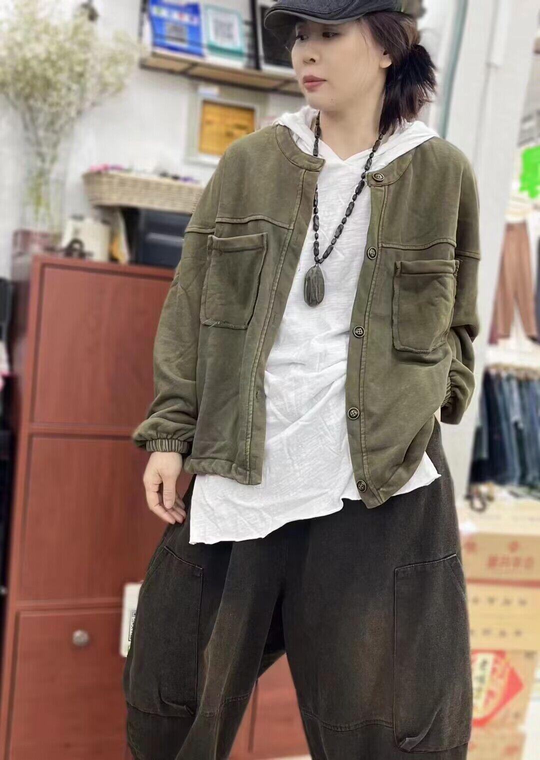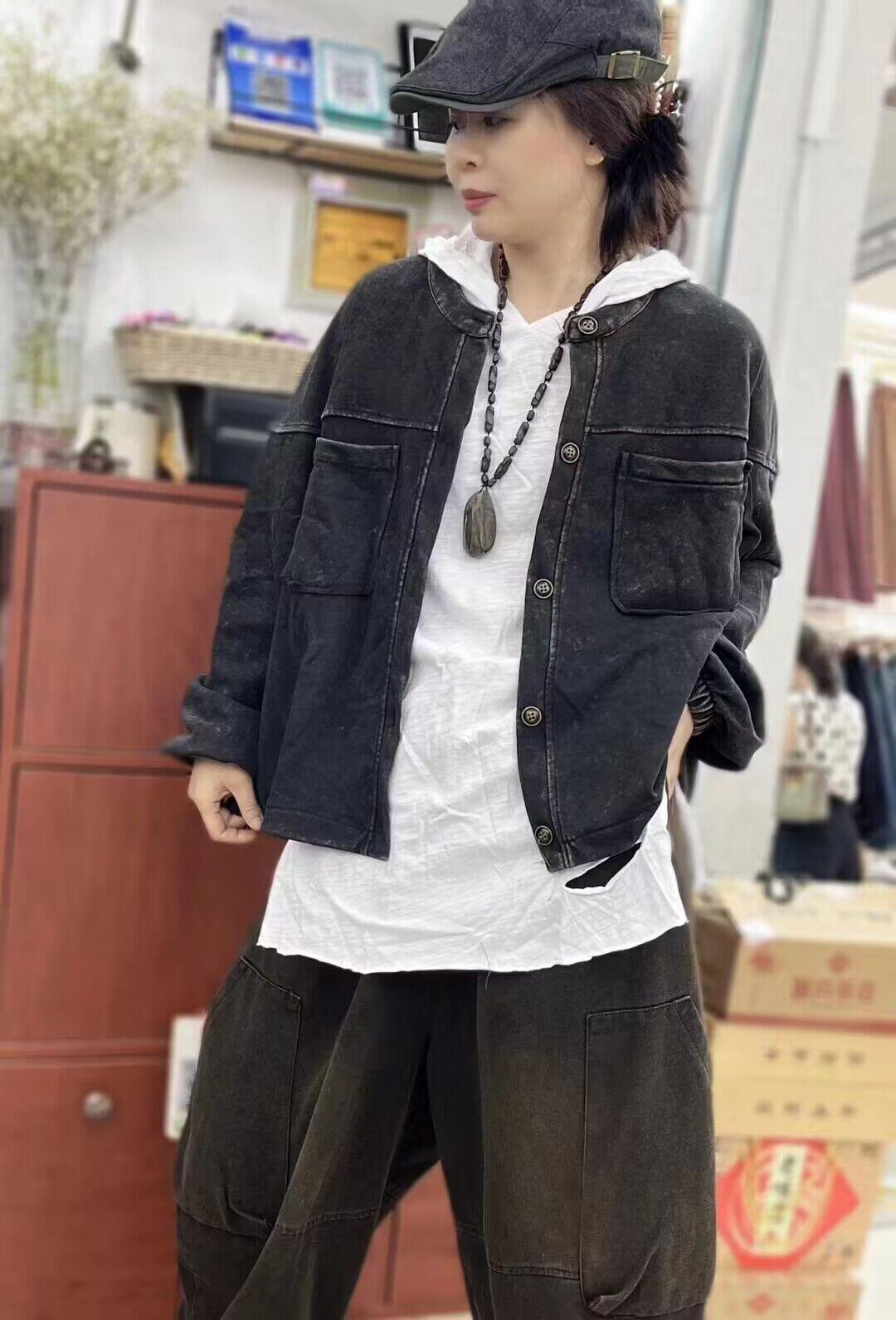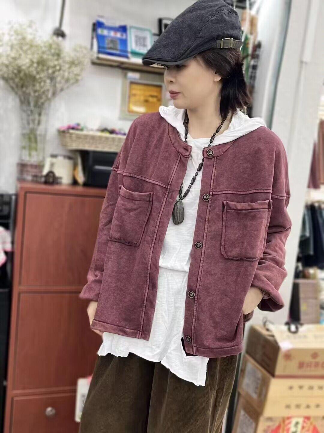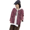 Chaqueta de doble bolsillo para mujer, otoño 2024, estilo vintage, artística, holgada, talla grande, color frito, manga larga, informal, traje de béisbol