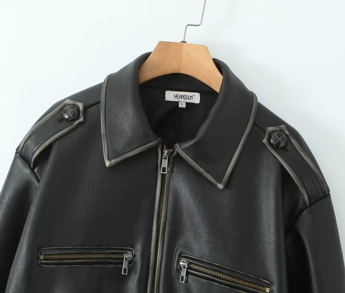 Chaqueta de cuero de estilo motociclista para mujer, estilo industrial pesado, estilo europeo y americano, otoño 2024