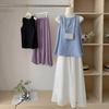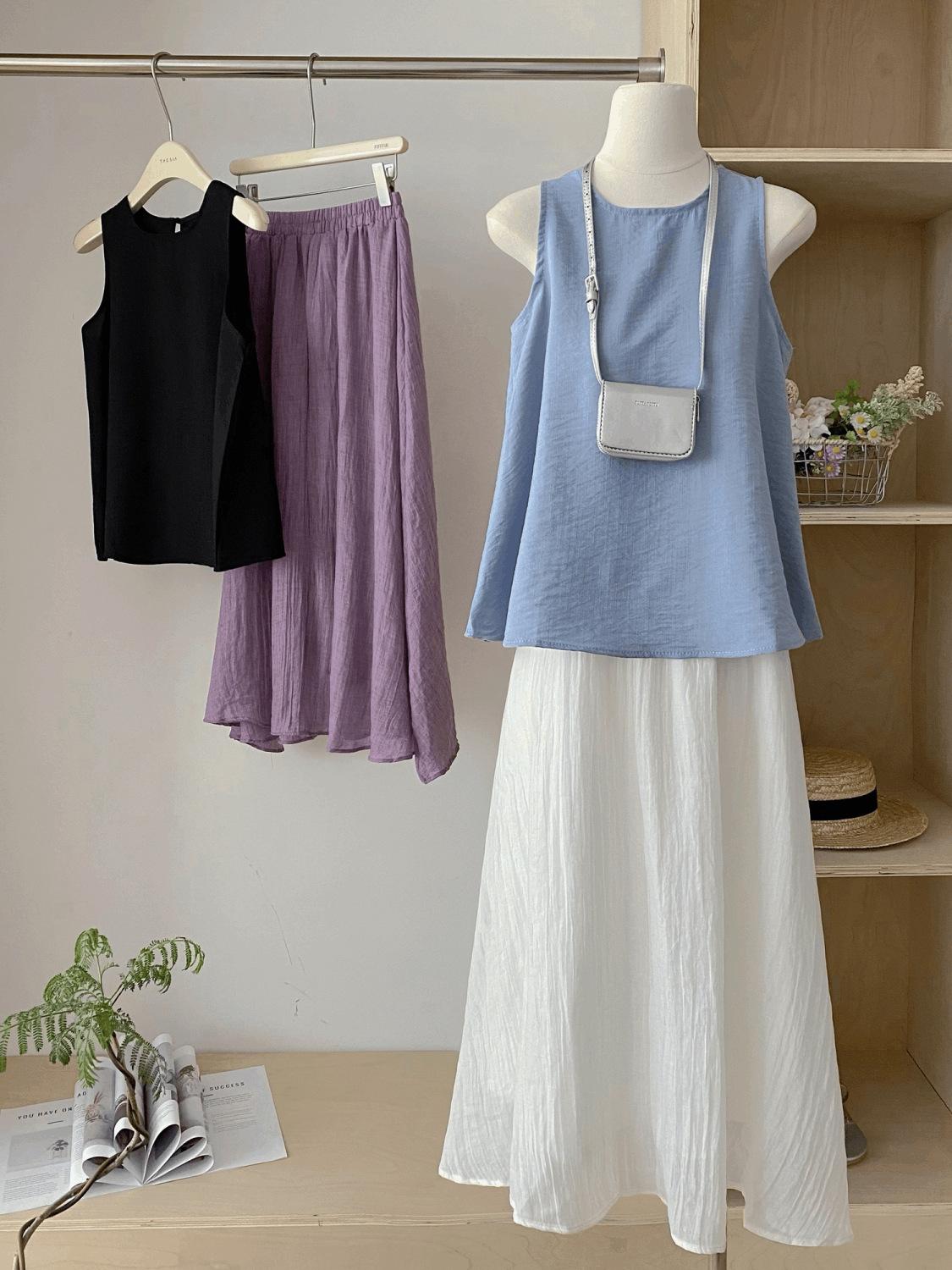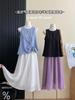 Black Vest, Purple Skirt, Black Vest Purple Skirt, Blue vest, White skirt, Blue vest + white skirt