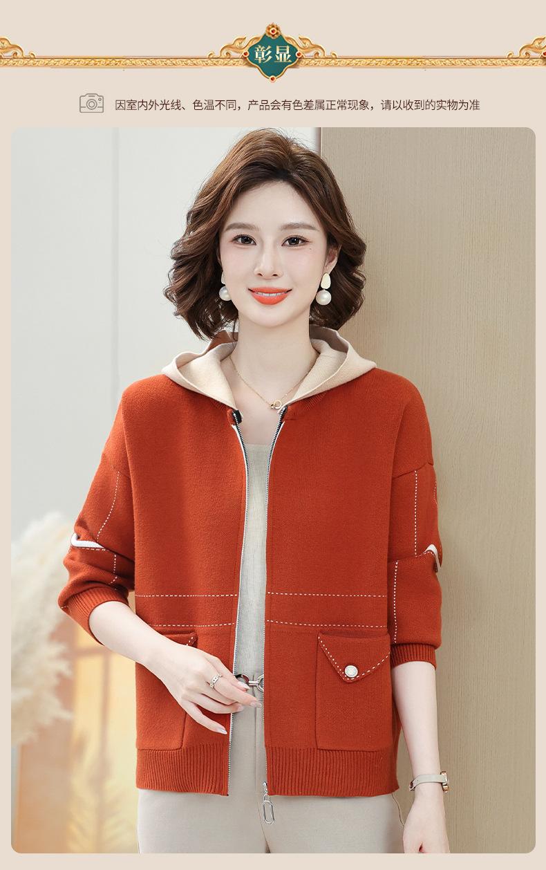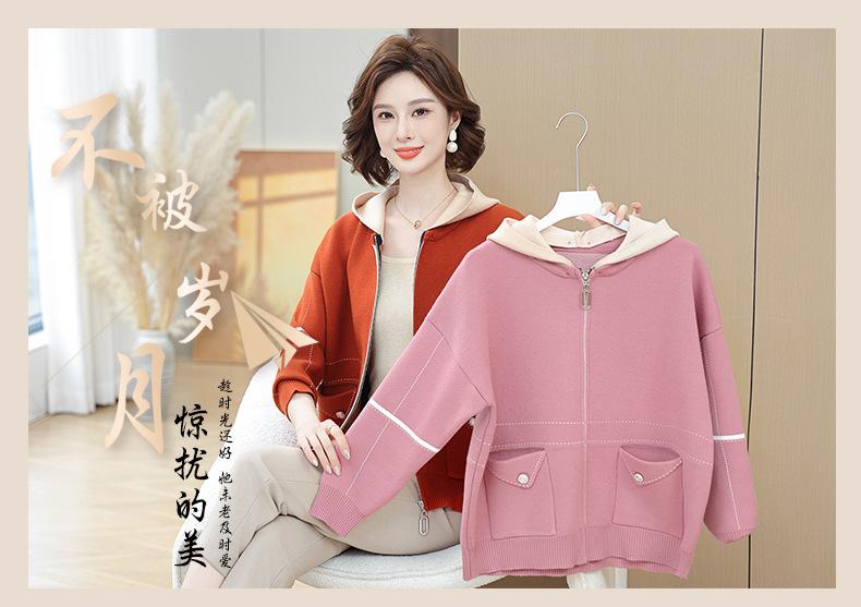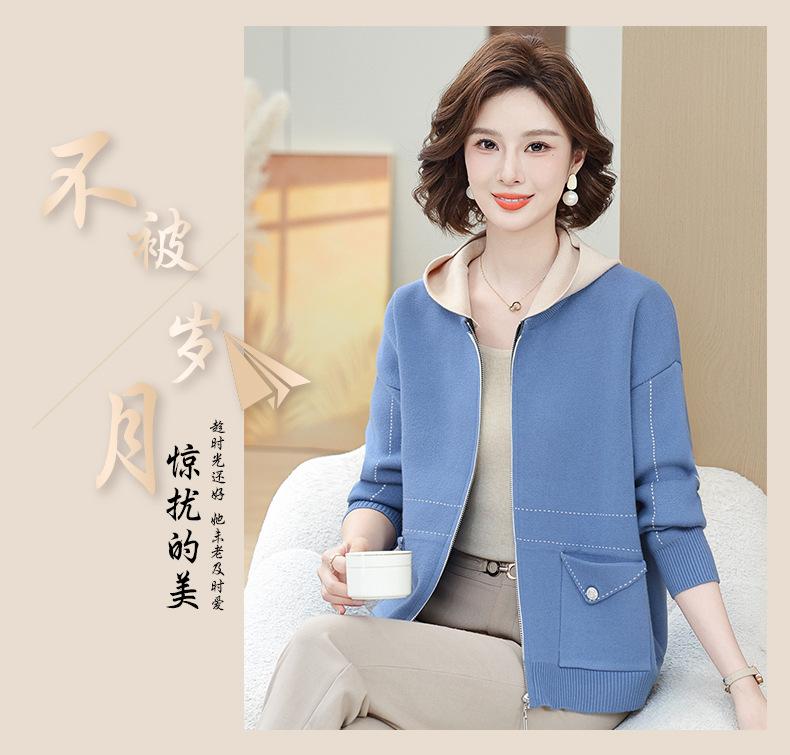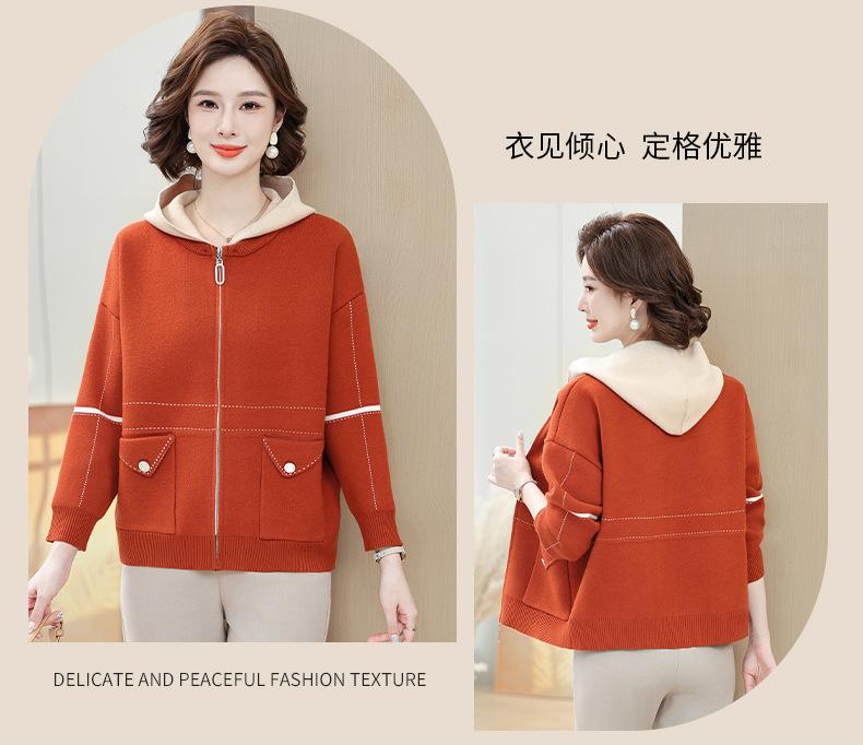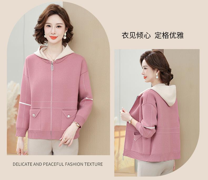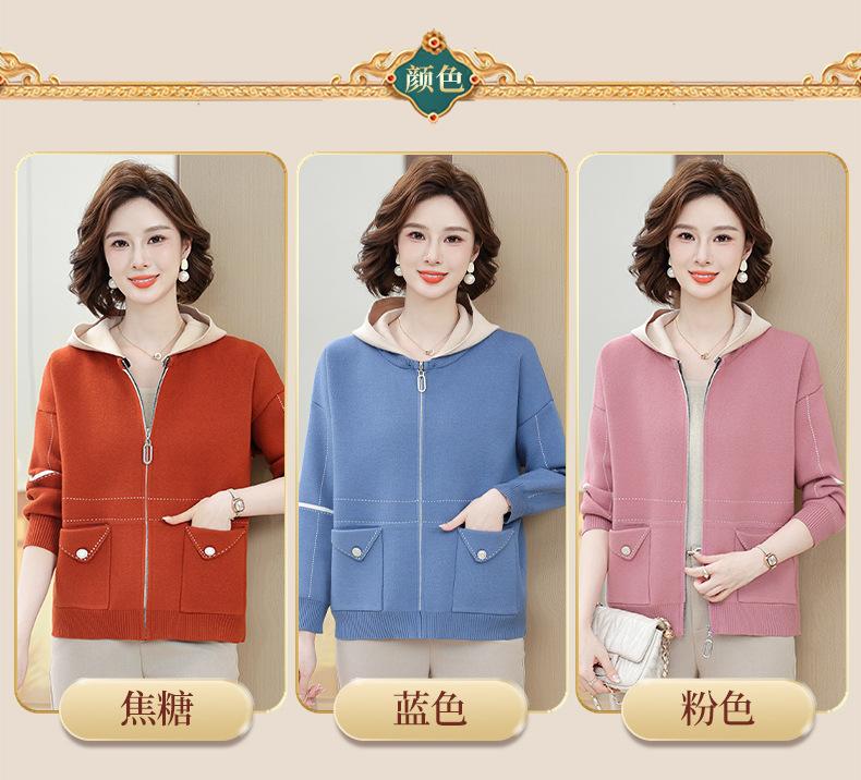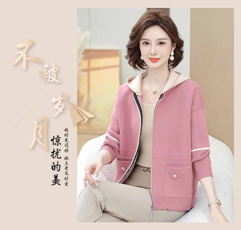 Otoño e Invierno 2024 Nuevo Estilo Abrigo Estilo Occidental para Madre Ropa Superior de Punto con Capucha de Moda Otoñal para Mujeres de Mediana Edad y Ancianas