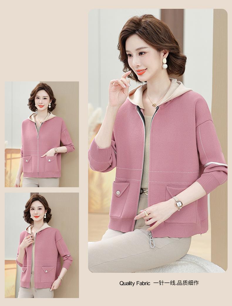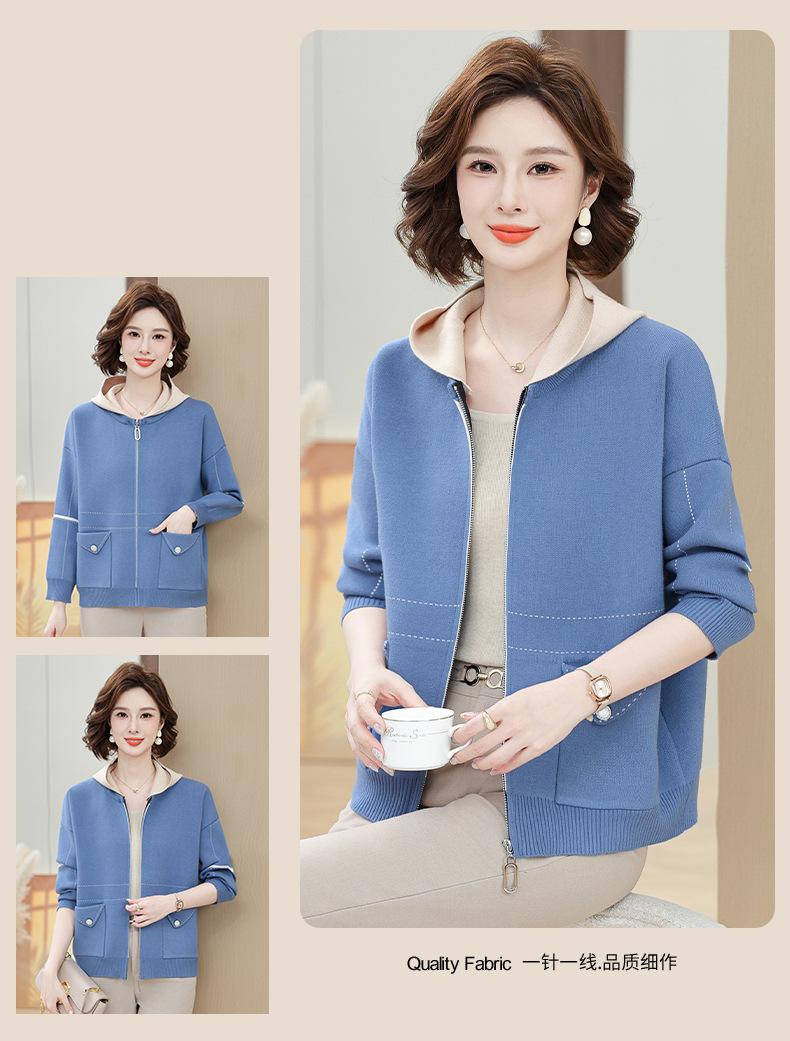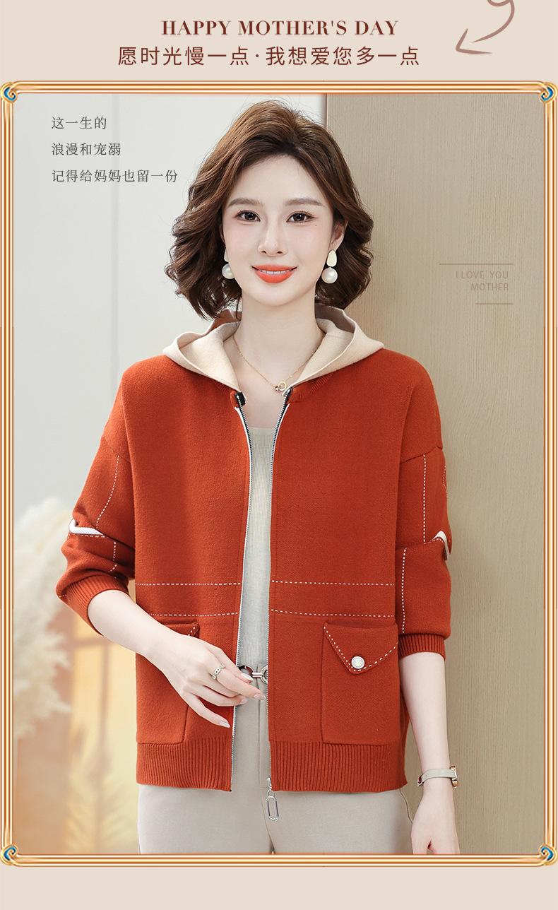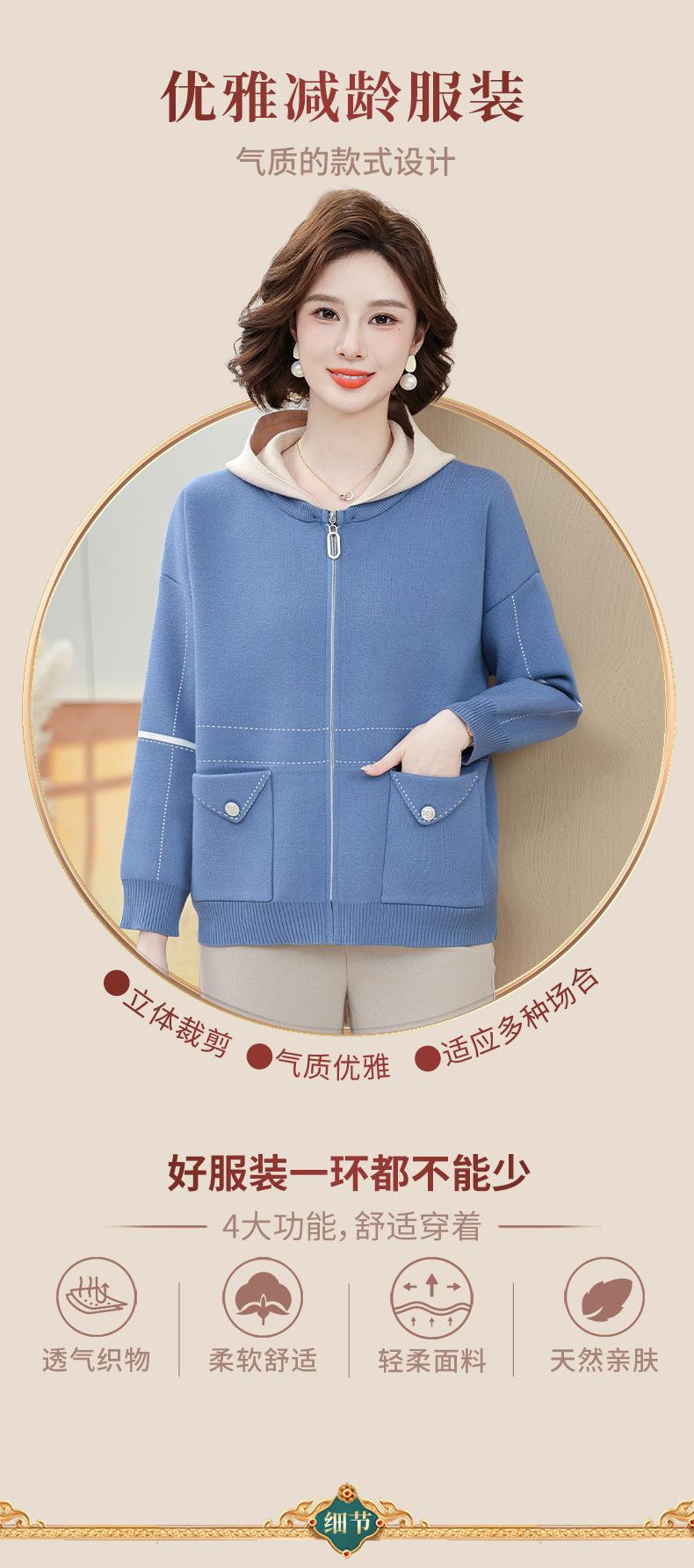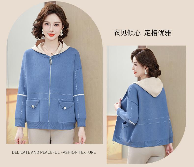 Otoño e Invierno 2024 Nuevo Estilo Abrigo Estilo Occidental para Madre Ropa Superior de Punto con Capucha de Moda Otoñal para Mujeres de Mediana Edad y Ancianas