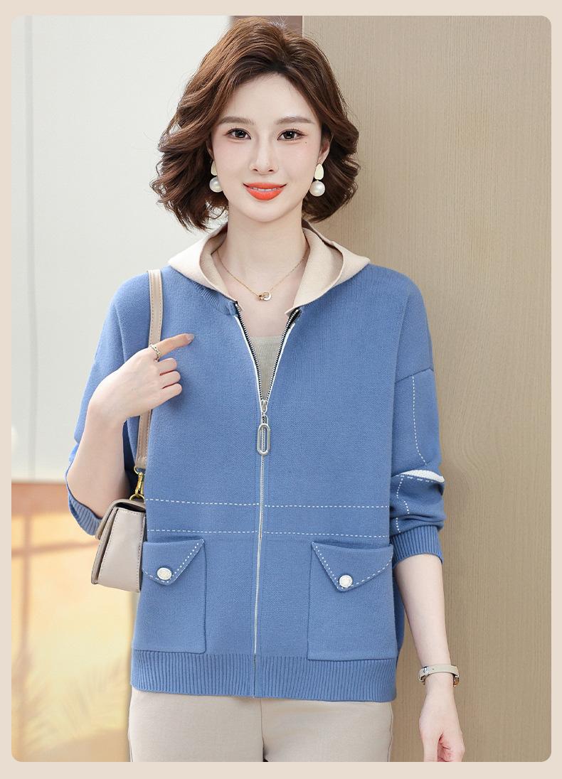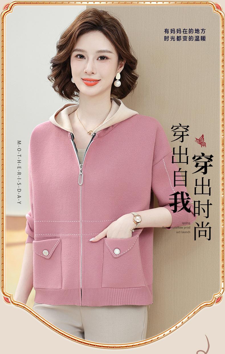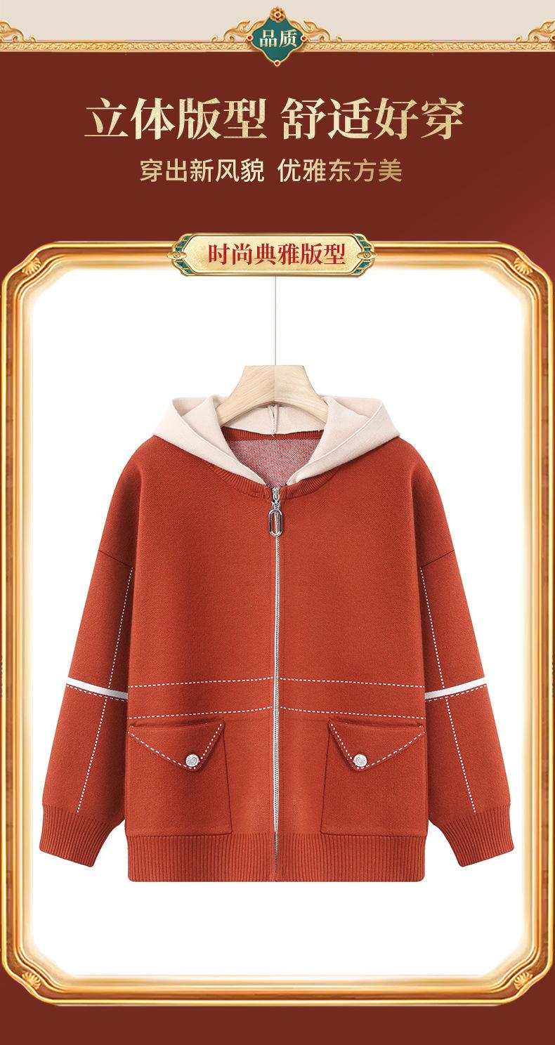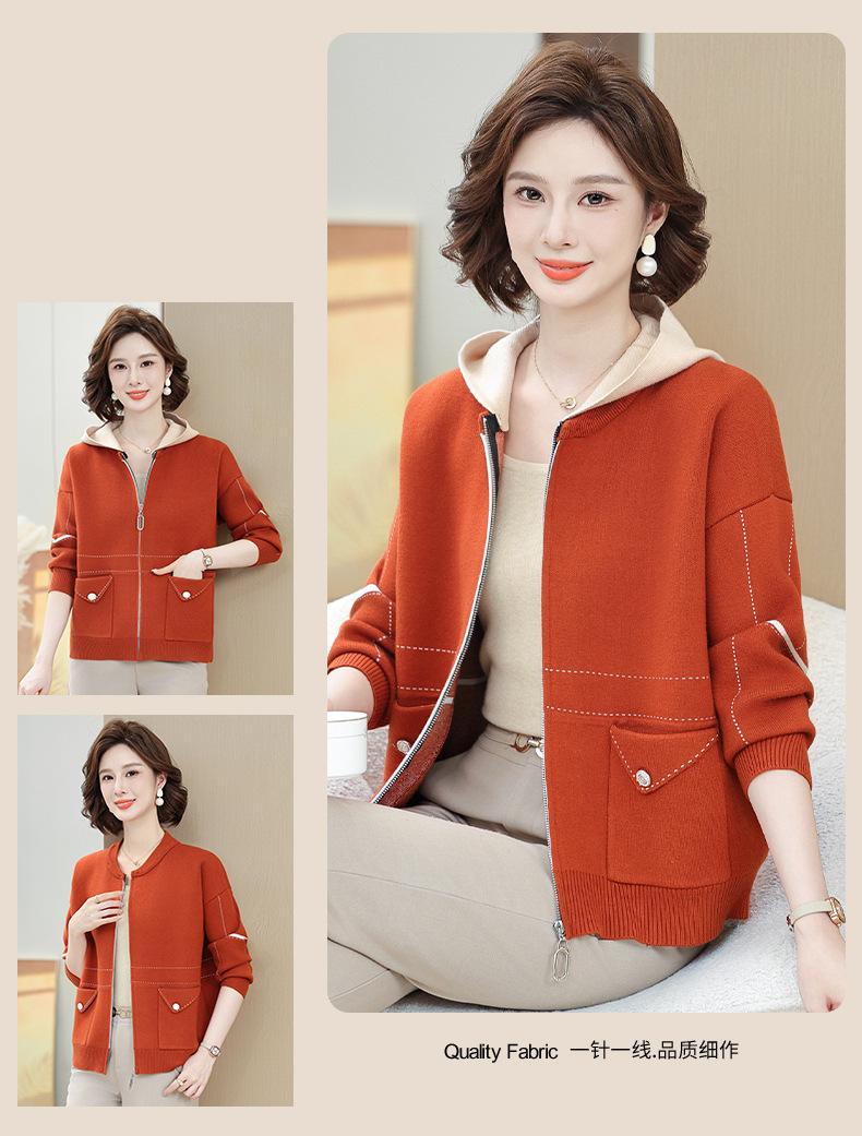 Otoño e Invierno 2024 Nuevo Estilo Abrigo Estilo Occidental para Madre Ropa Superior de Punto con Capucha de Moda Otoñal para Mujeres de Mediana Edad y Ancianas