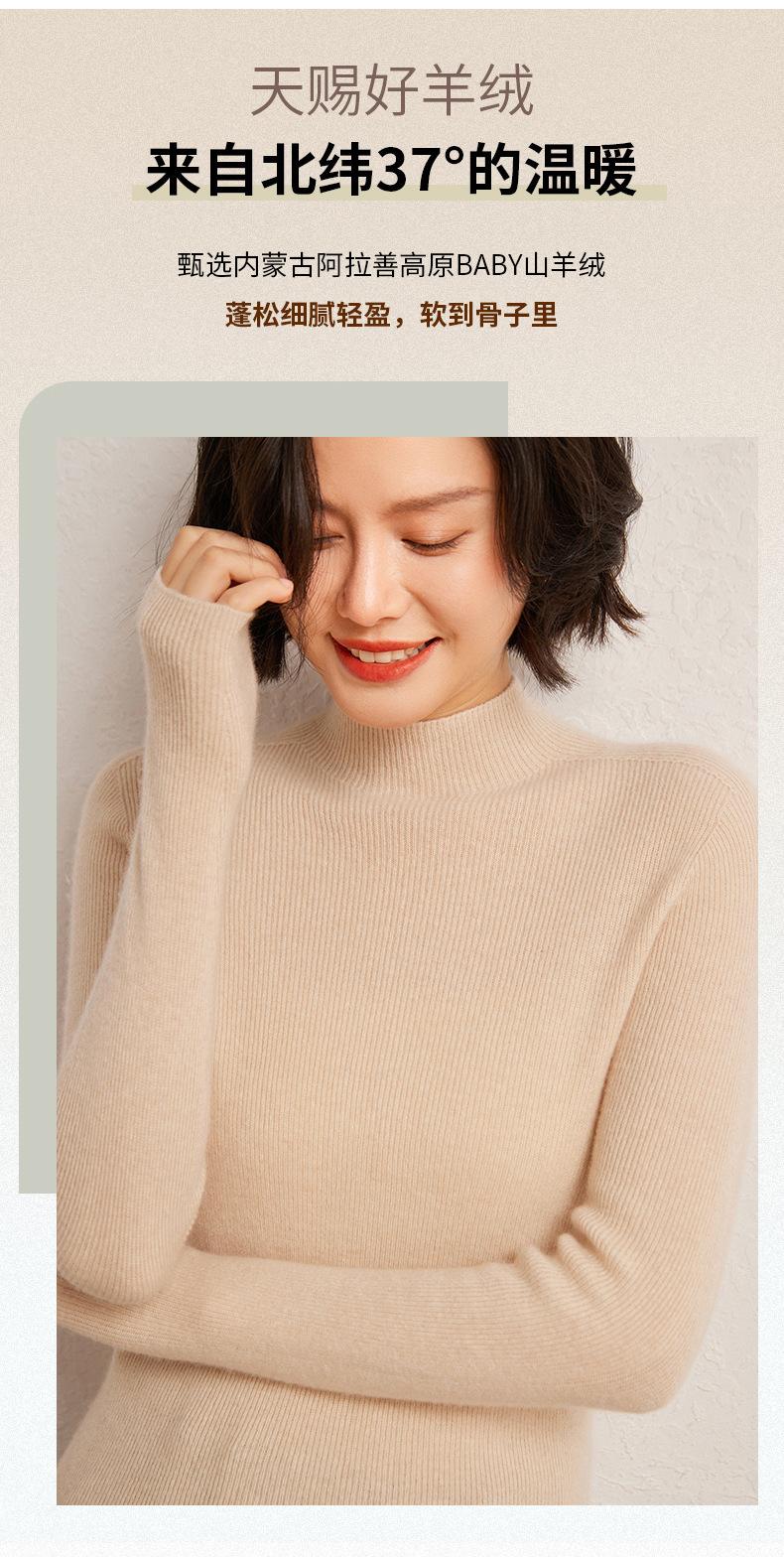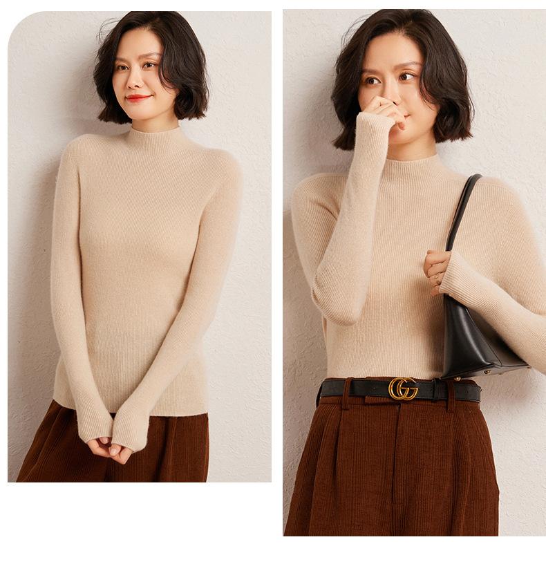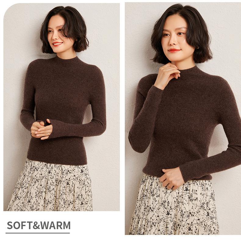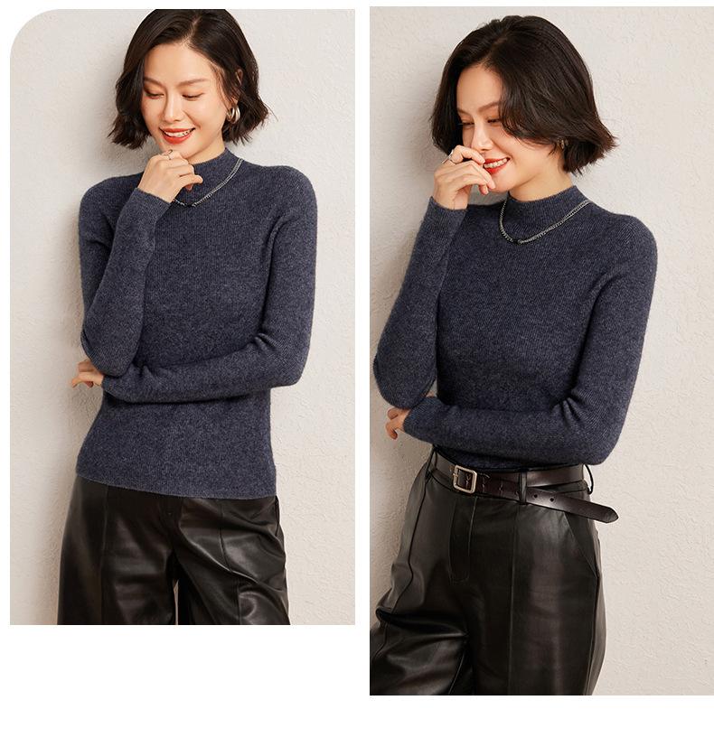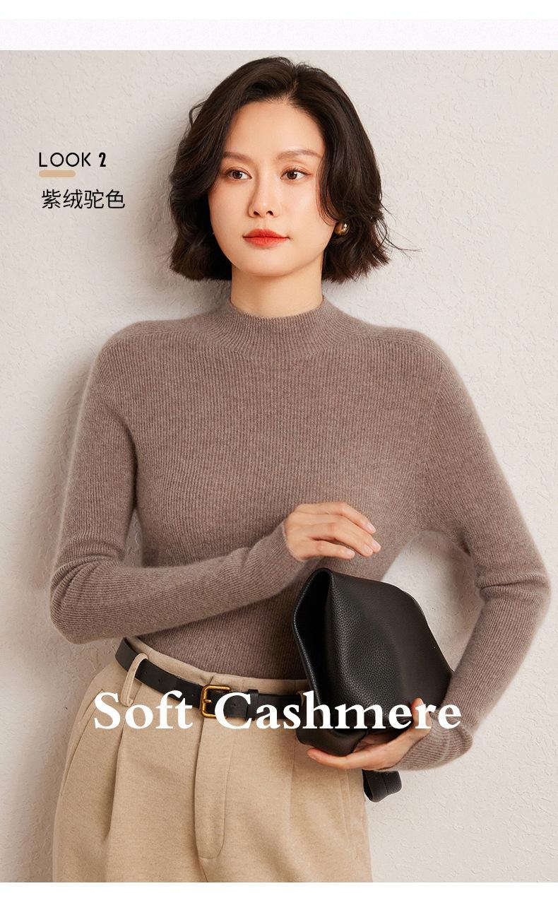 Suéter de Cachemira de Punto de Primera Línea Listo para Usar Otoño e Invierno 2025 para Mujer con Cuello Medio Alto, Suéter de Lana, Ropa Interior de Moda
