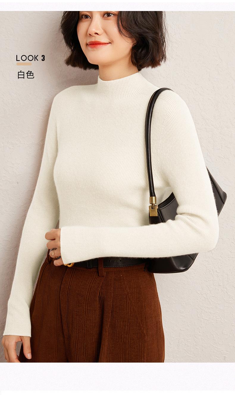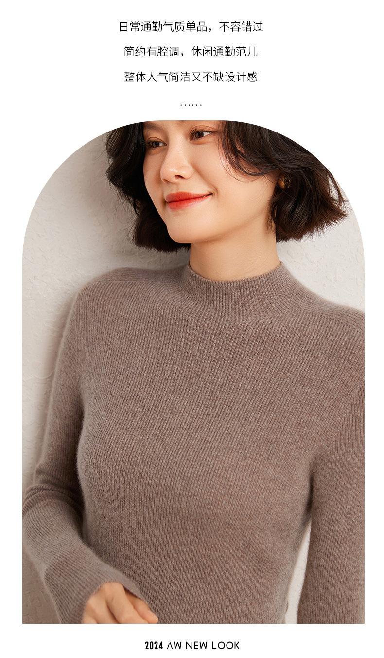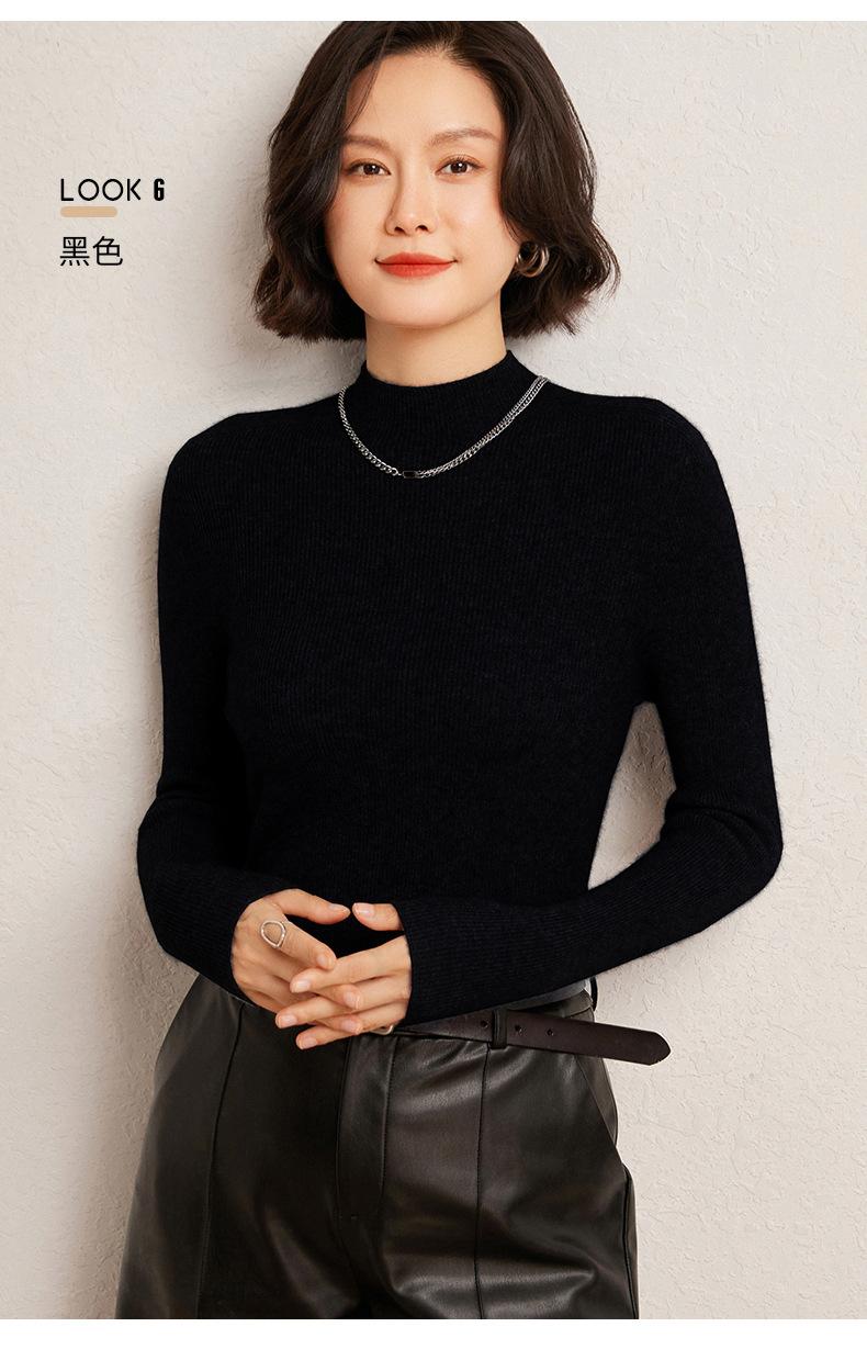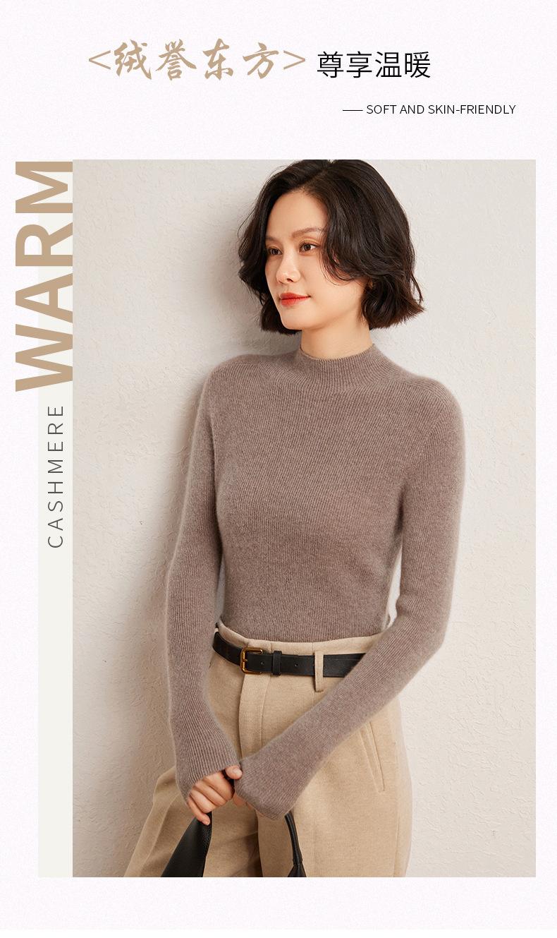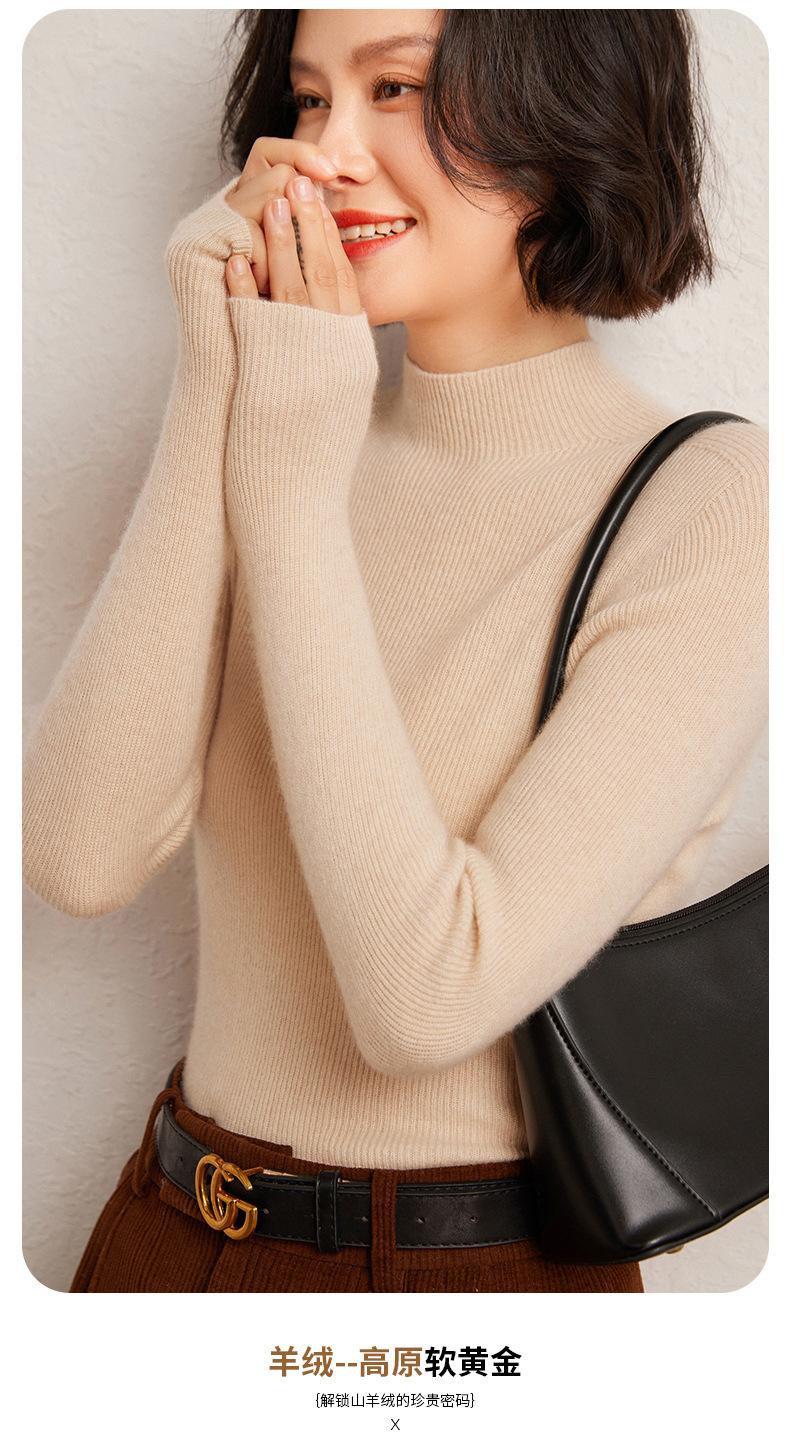 Suéter de Cachemira de Punto de Primera Línea Listo para Usar Otoño e Invierno 2025 para Mujer con Cuello Medio Alto, Suéter de Lana, Ropa Interior de Moda