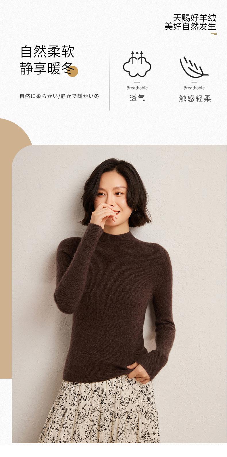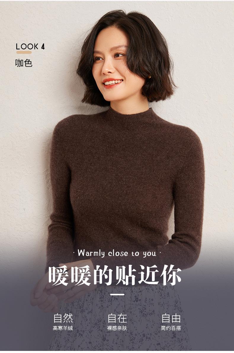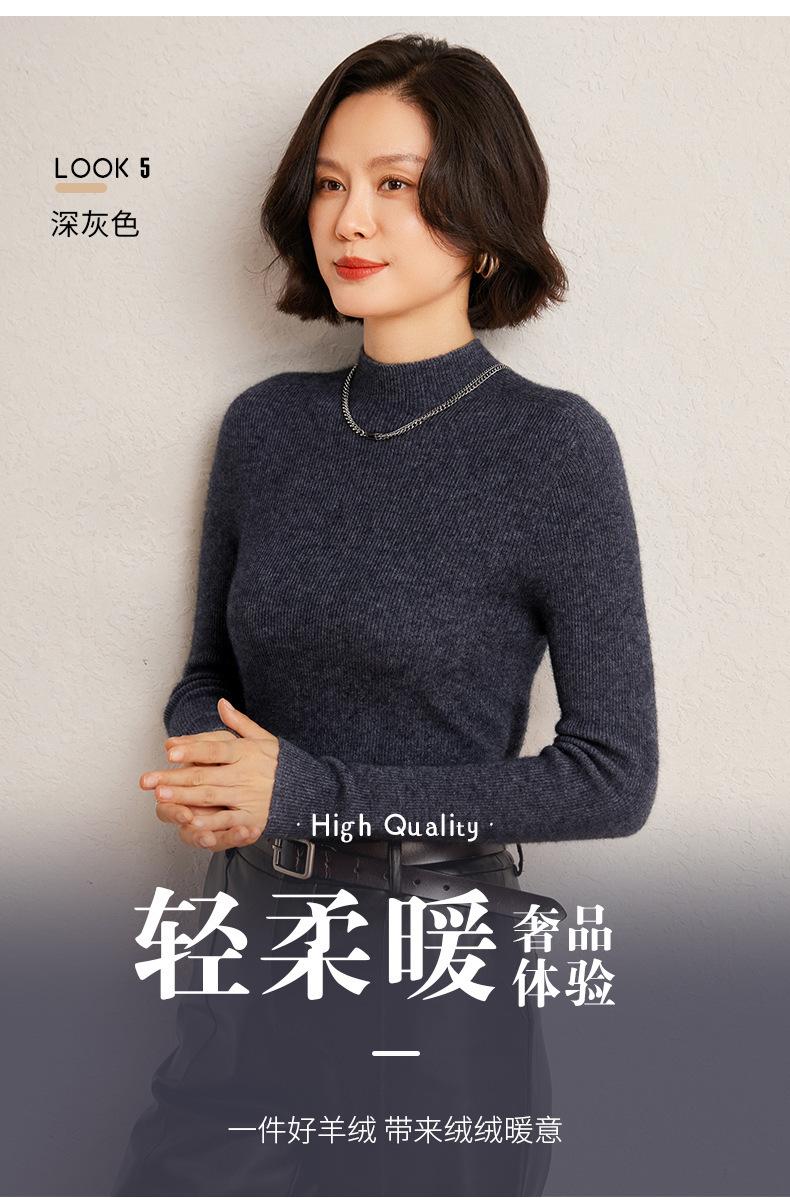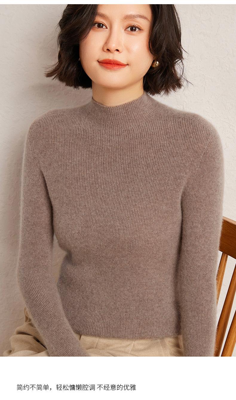 Suéter de Cachemira de Punto de Primera Línea Listo para Usar Otoño e Invierno 2025 para Mujer con Cuello Medio Alto, Suéter de Lana, Ropa Interior de Moda