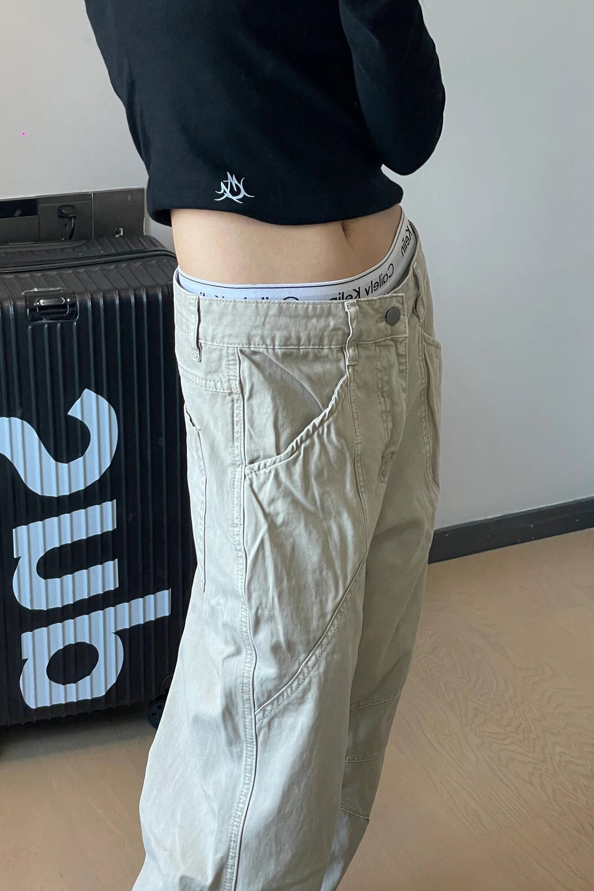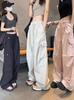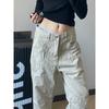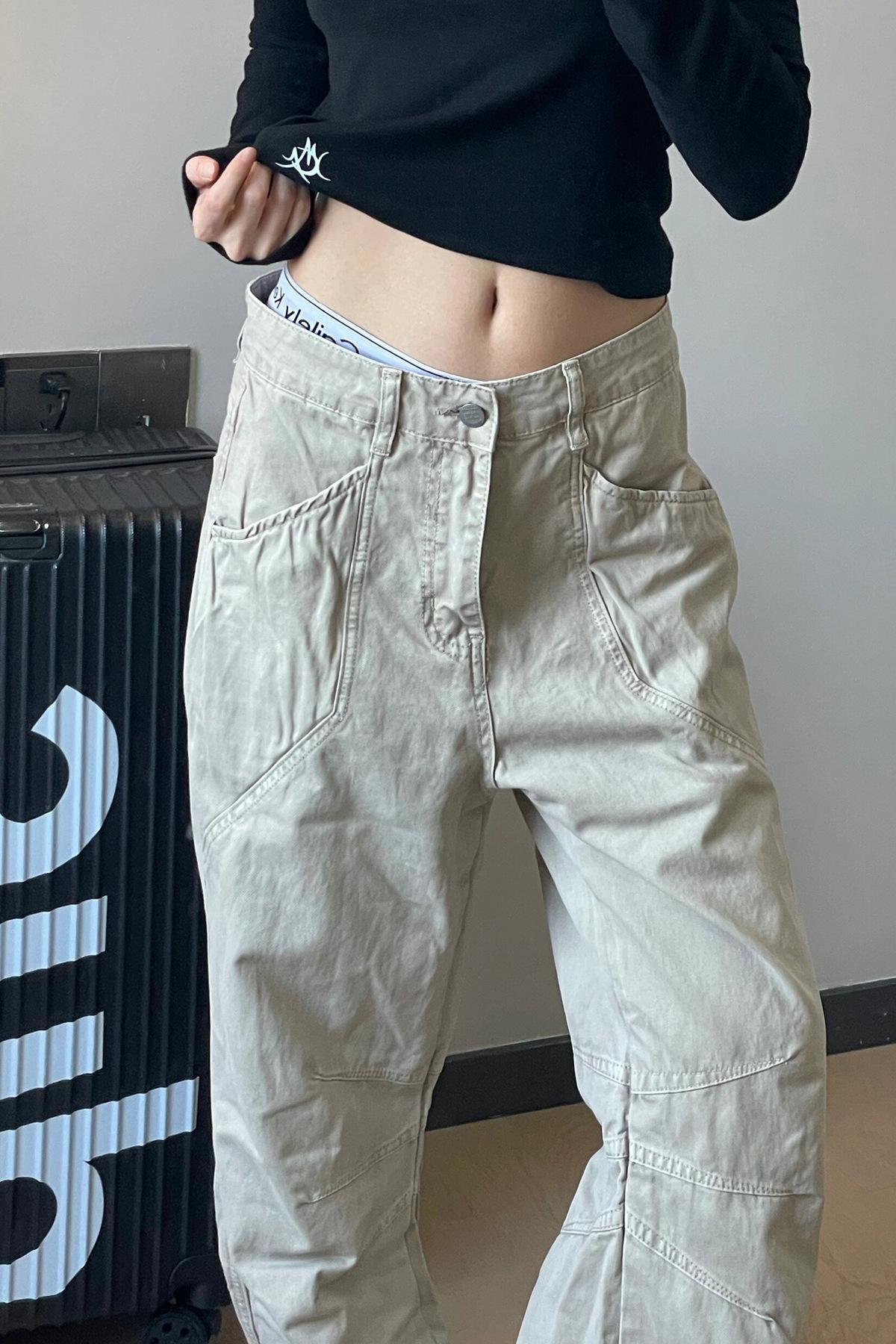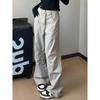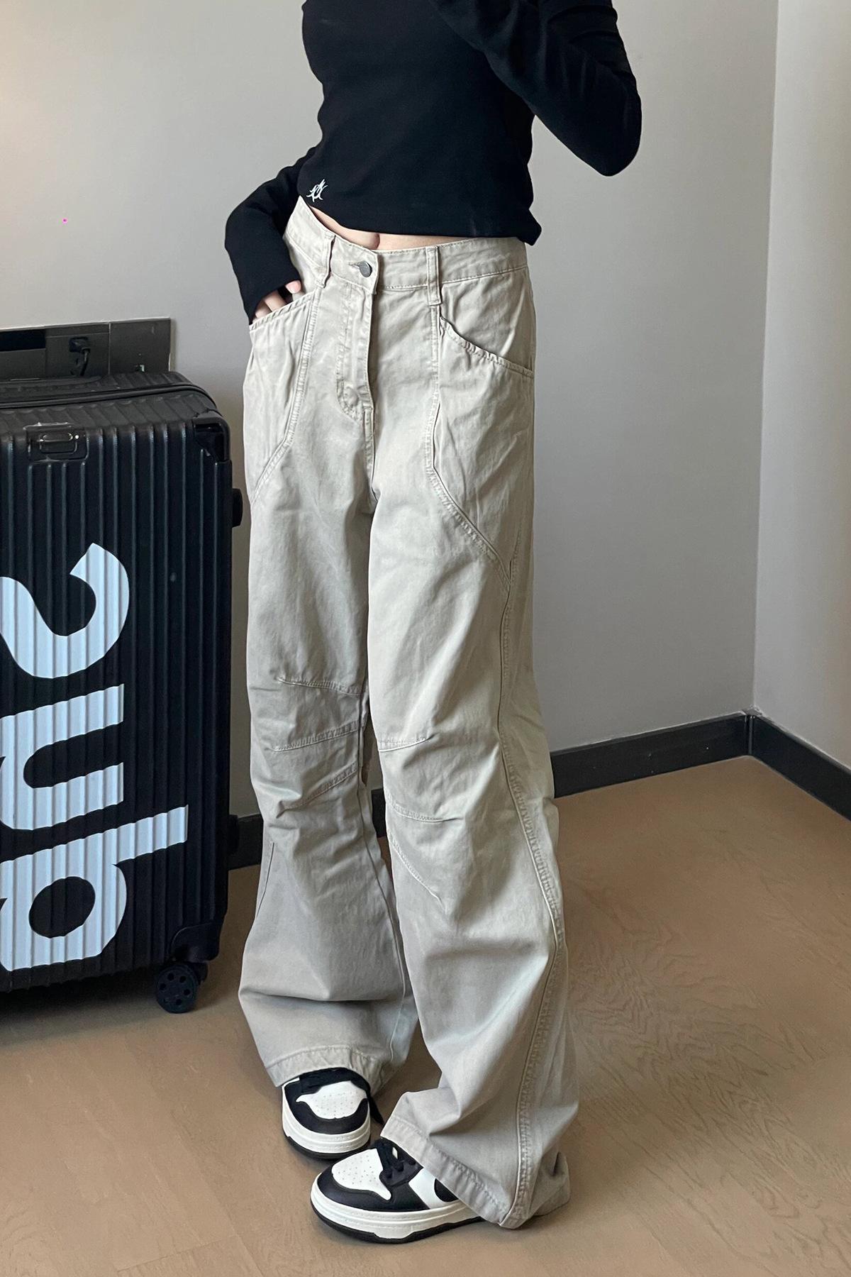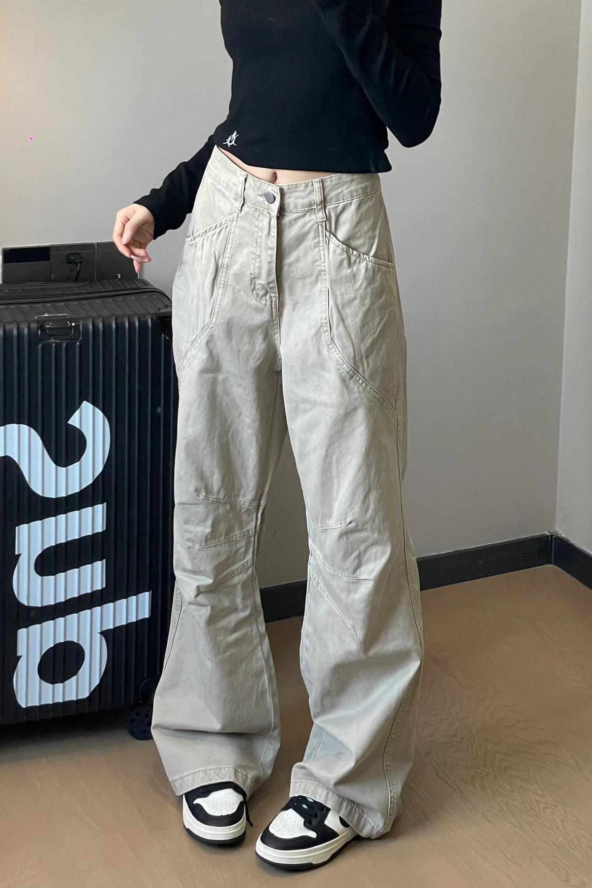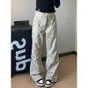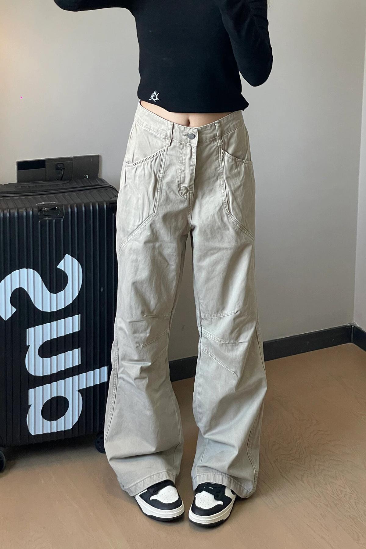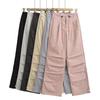 Pantalones de peto con diseño plisado retro americano para mujer, primavera y otoño 2024, nuevos pantalones casuales holgados y rectos con microflecos