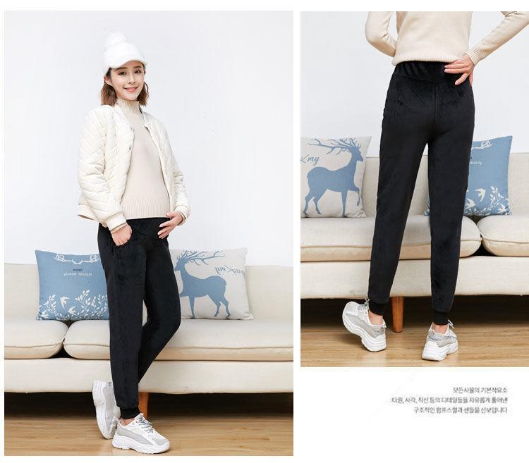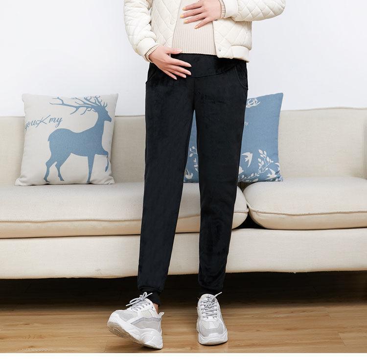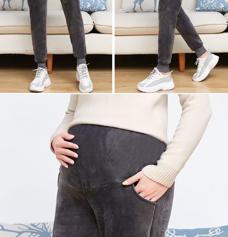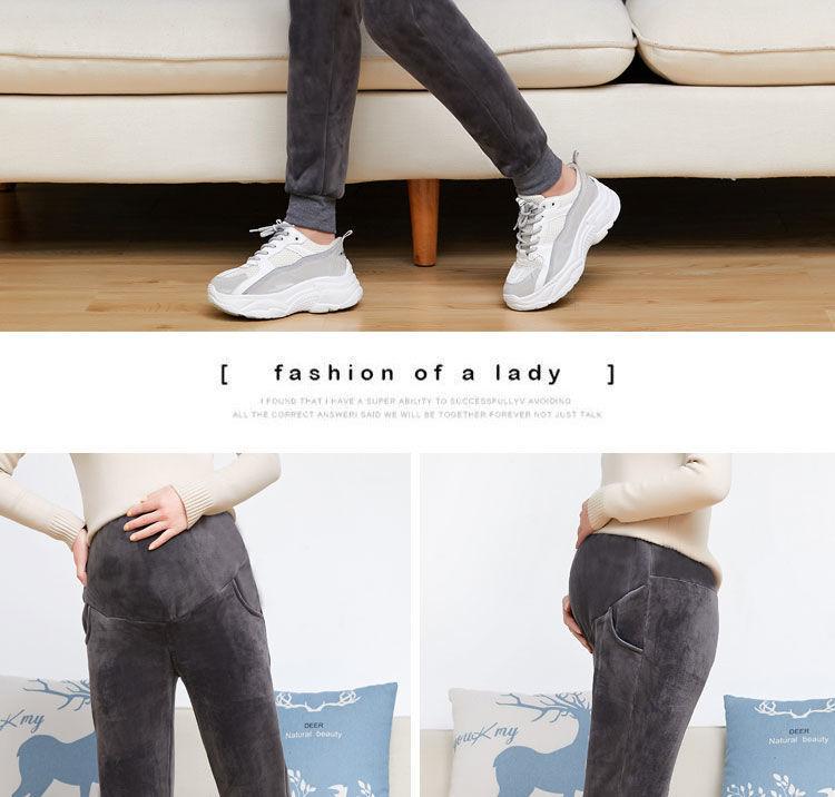 Pantalones de mujer embarazada con forro polar, pantalones de algodón gruesos y cálidos, pantalones de otoño e invierno, ropa exterior, leggings, pantalones de primavera y otoño con soporte abdominal para embarazadas, invierno