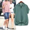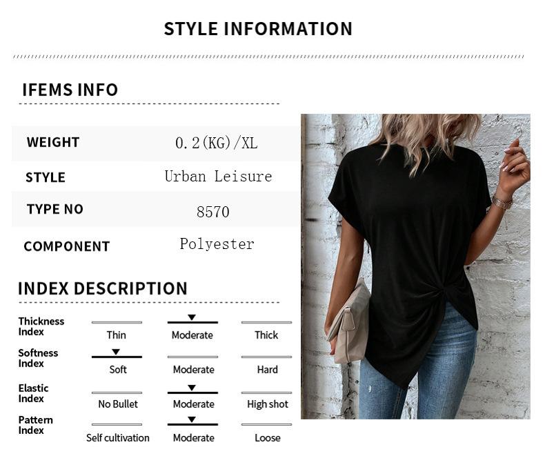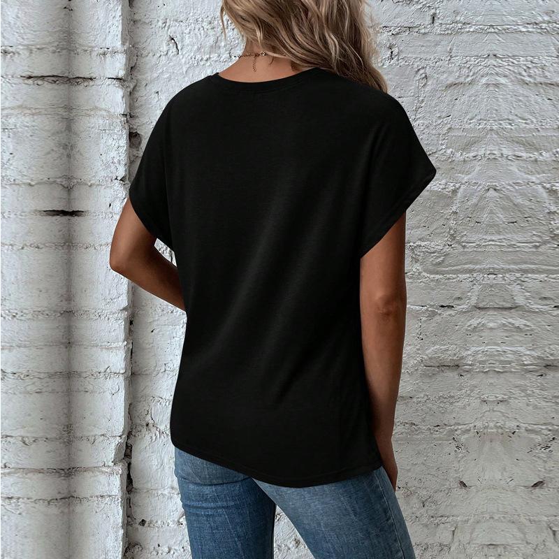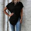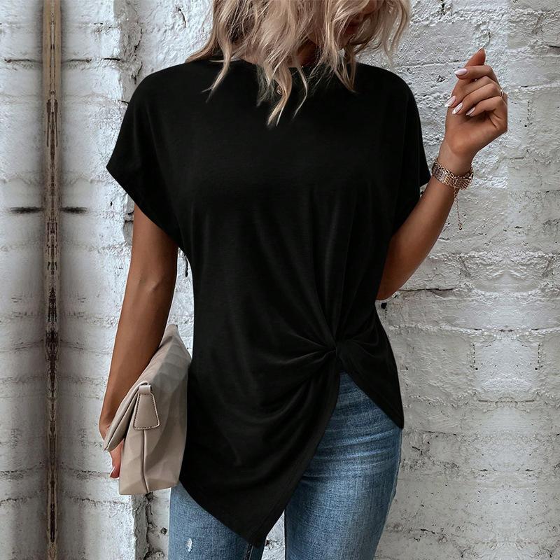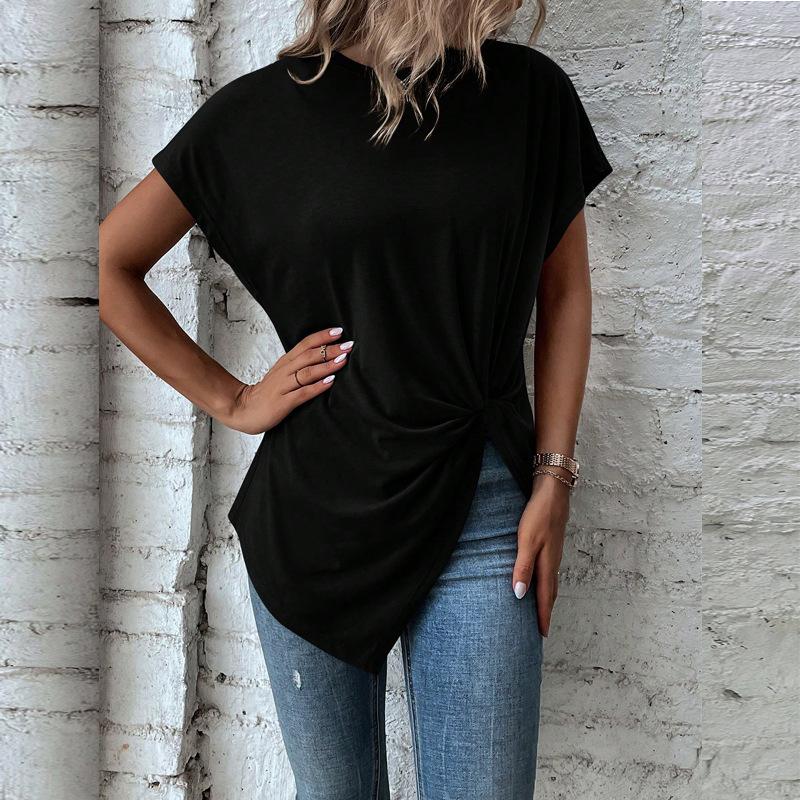 Ropa de Mujer de Exportación Europea y Americana Transfronteriza 2023 Amazon Verano Nuevo Color Puro Dobladillo Asimétrico Esquina Top de Manga Corta