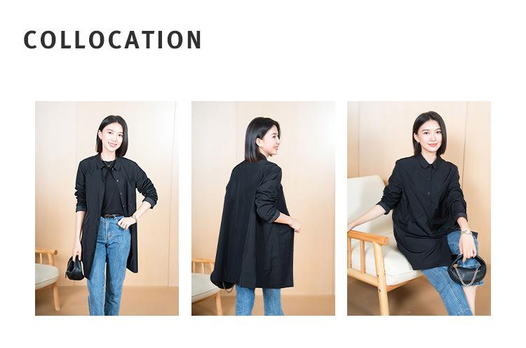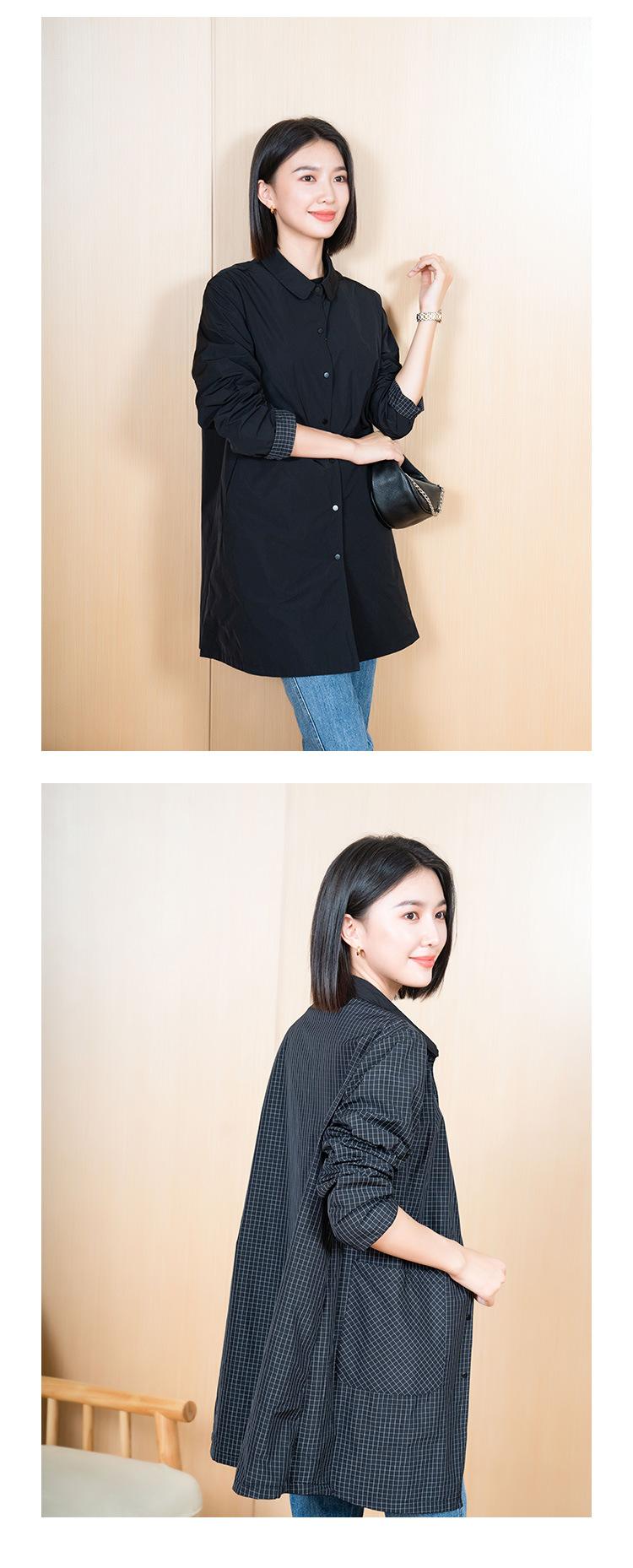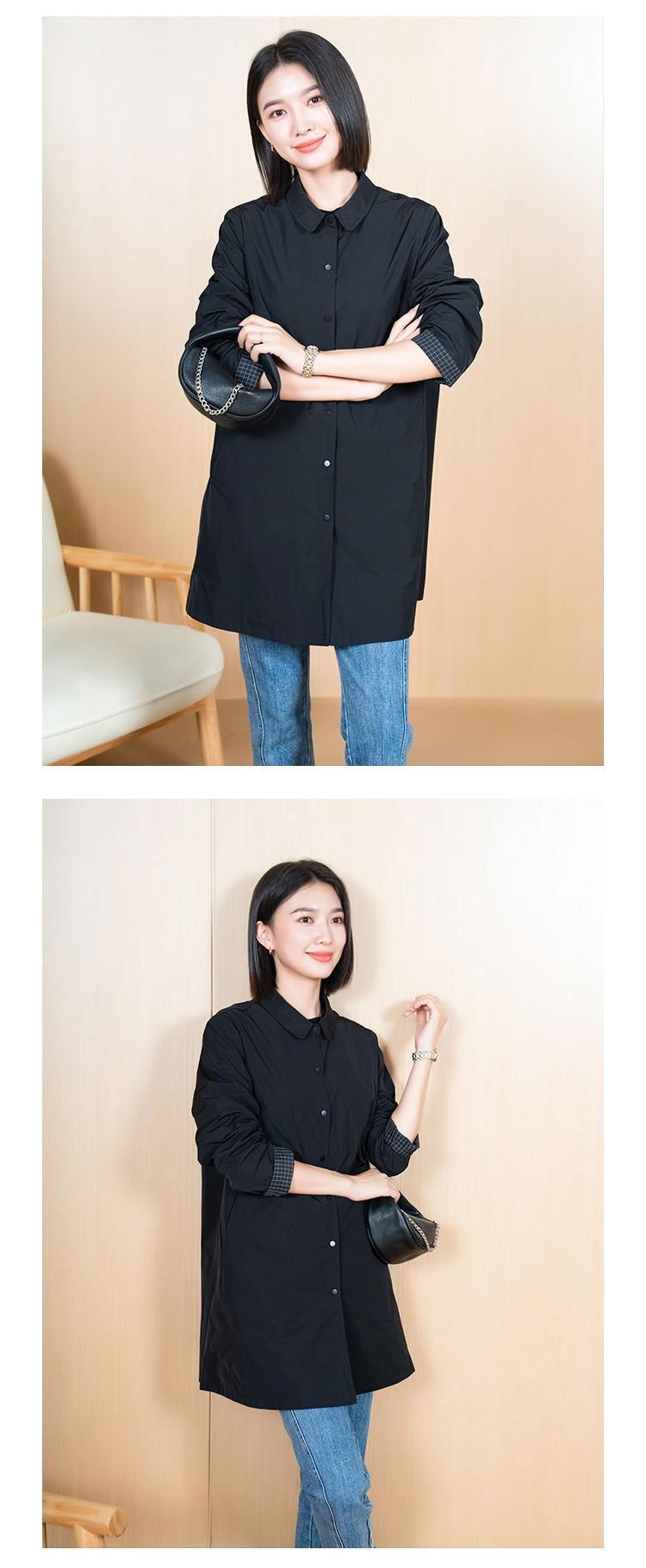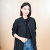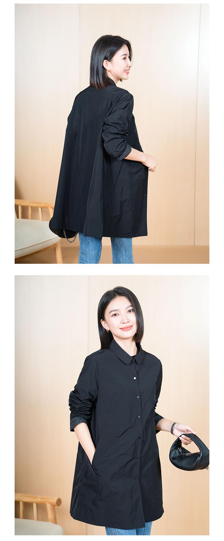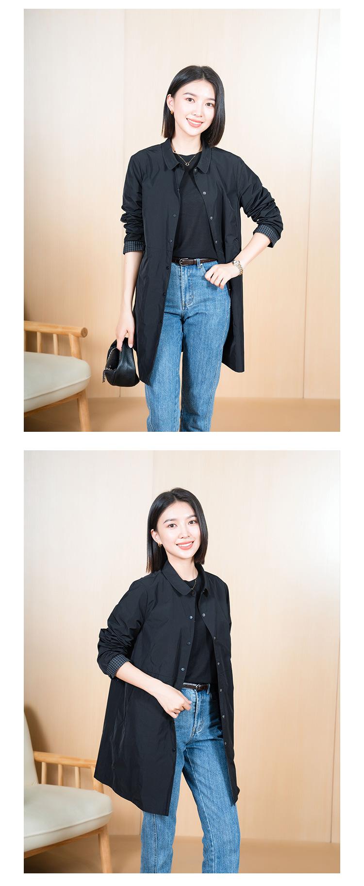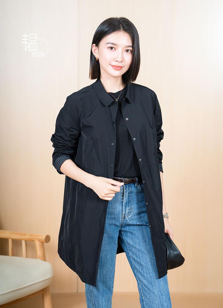 YUN Yun - Chaqueta cortavientos negra de manga larga para mujer, nueva, de temperamento alto, larga, de doble cara, informal, de dos piezas