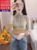 Suéter de cuello alto medio con forma de hongo para mujer, forro polar grueso, otoño e invierno, interior cálido, parte superior ajustada, suéter de base de terciopelo de una pieza