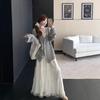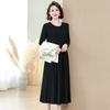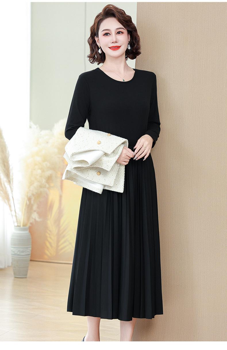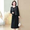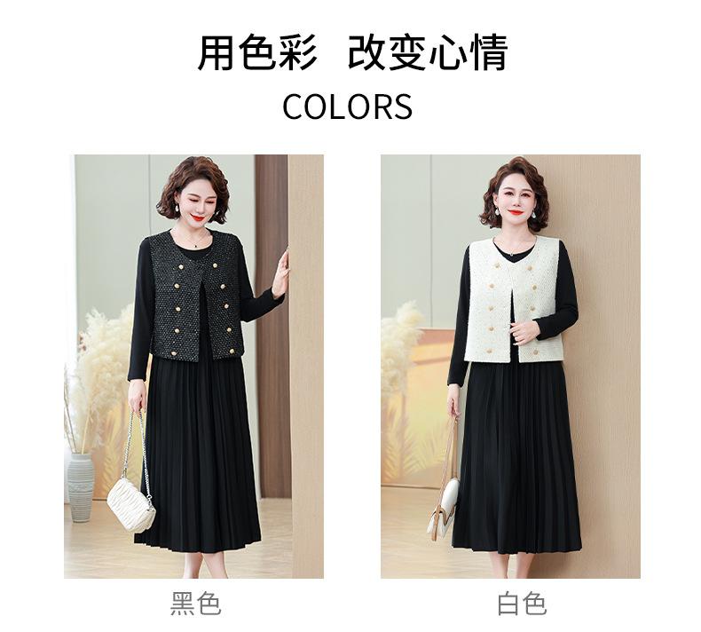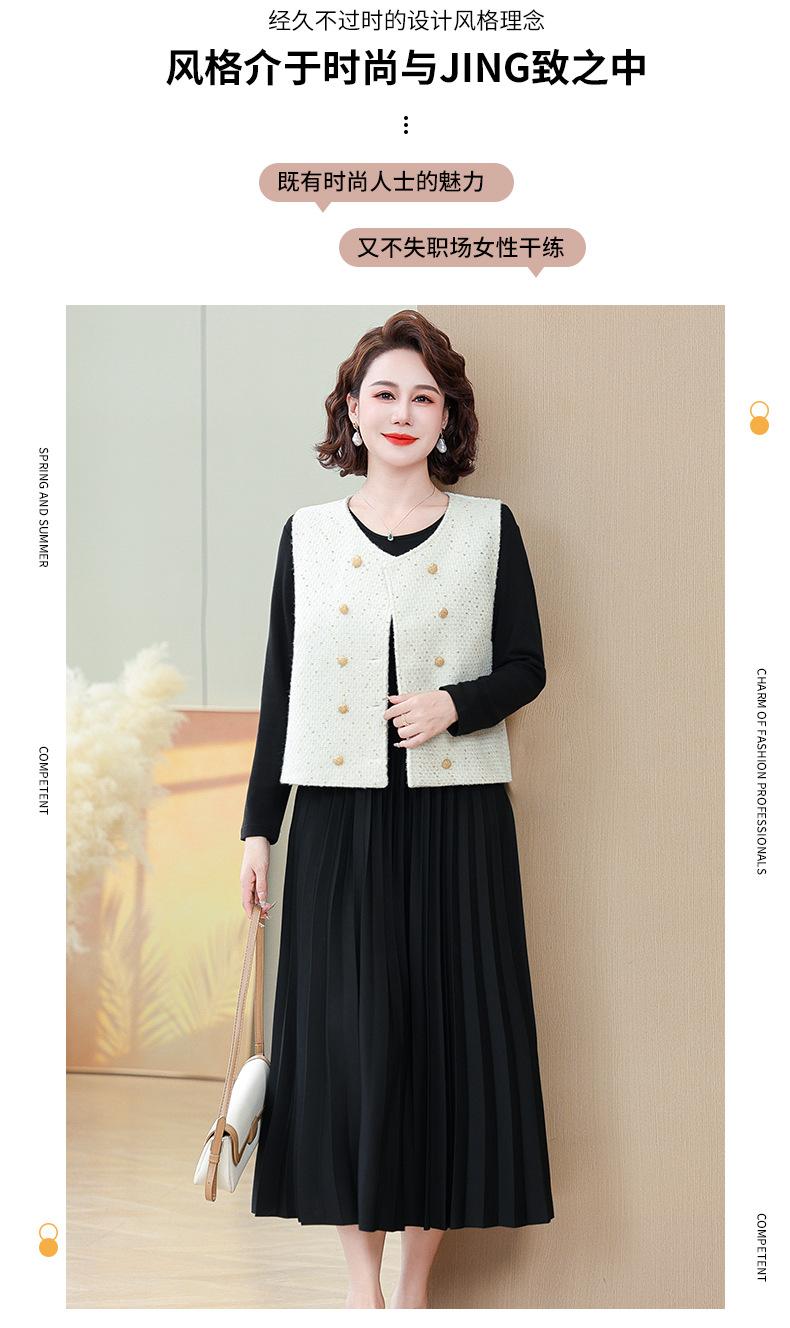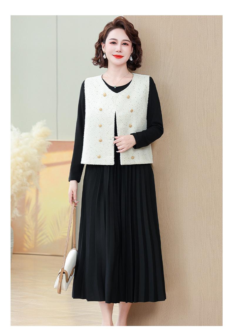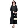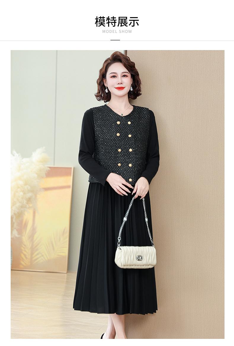 Traje de Vestido Negro de Manga Larga Otoño Ropa de Mujer Estilo Chanel Chaleco Chaqueta Falda Conjunto de Dos Piezas para Madre de Mediana Edad