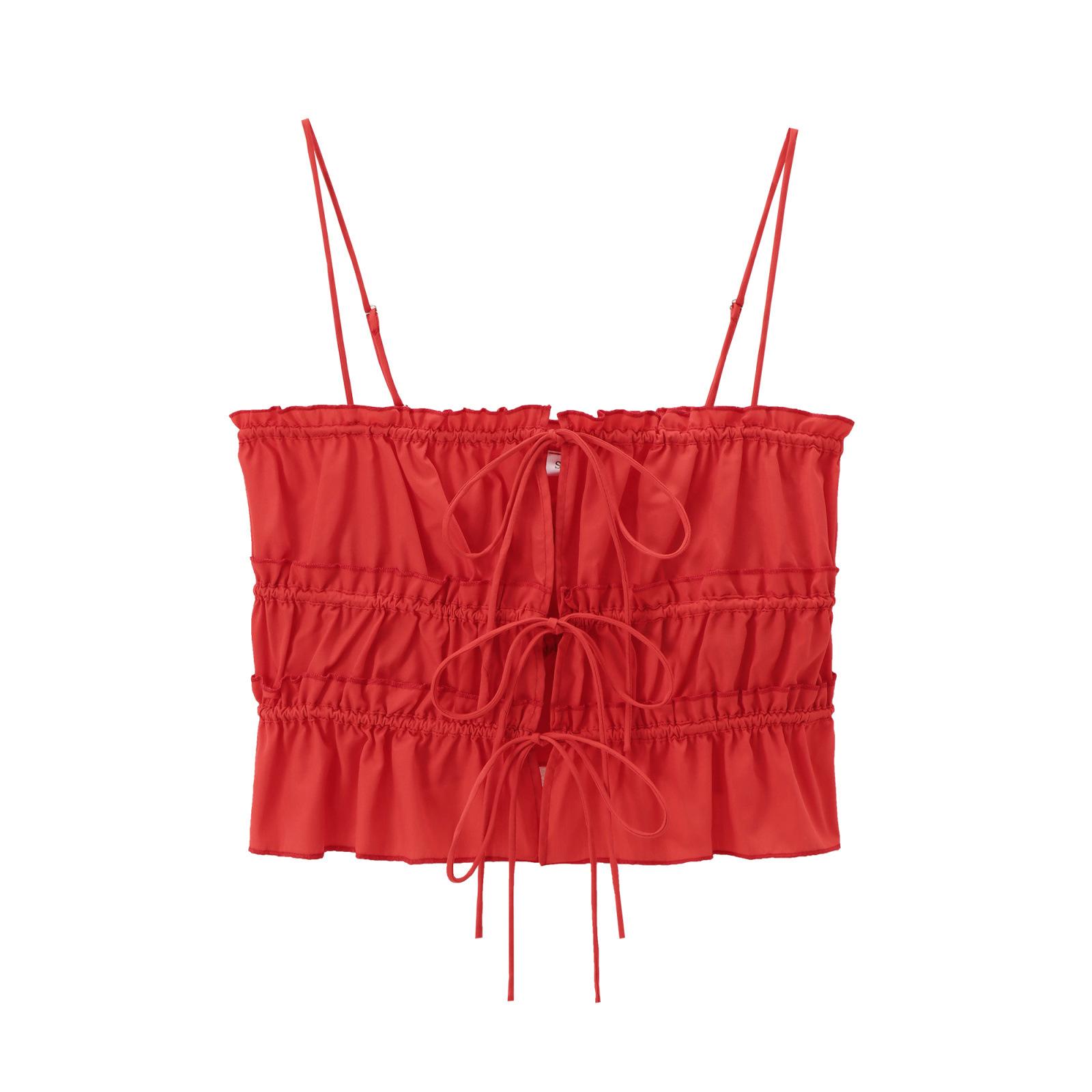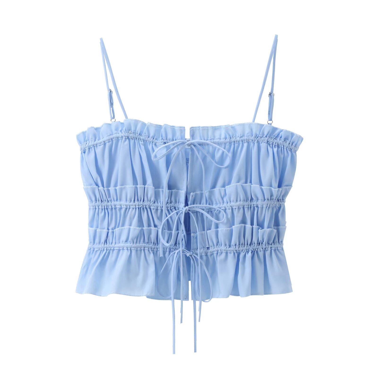 Ropa Europea y Americana 2024 Nuevo Top Camisola Exterior Sexy de Popelina Ajustado Francés con Cordones y Decoración de Lazo