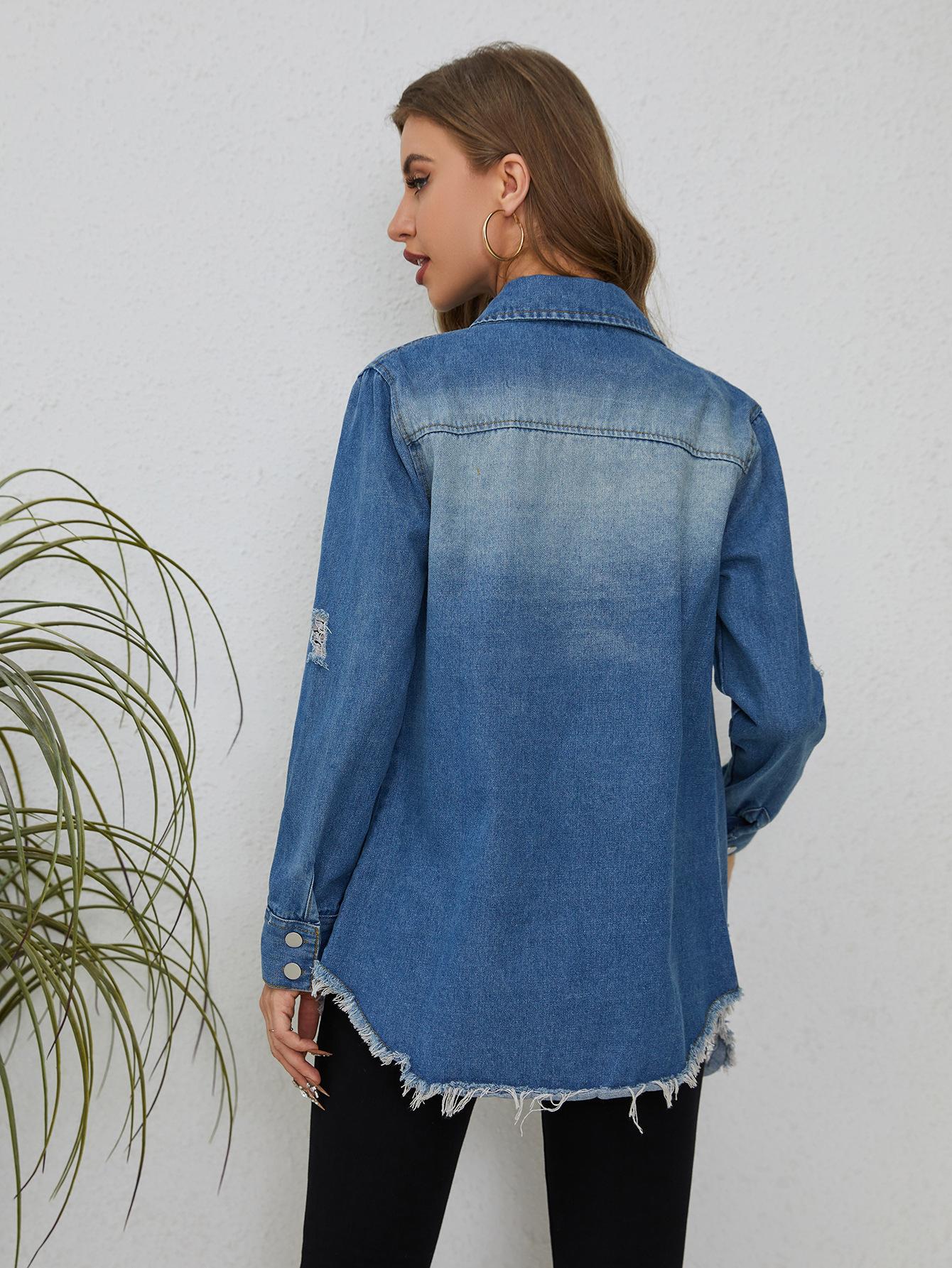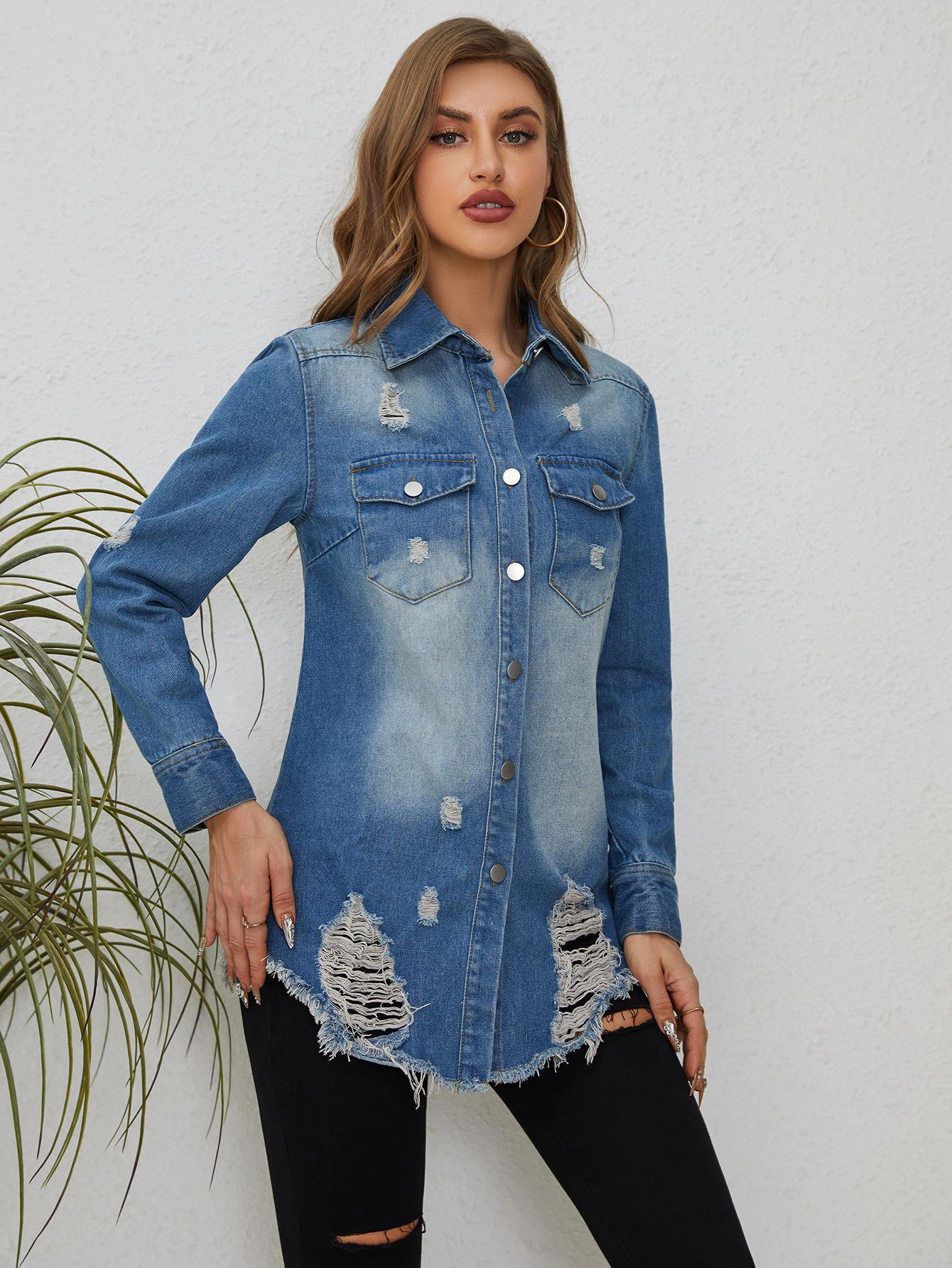 Abrigo vaquero de mujer de longitud media con agujeros rotos de Amazon AliExpress, comercio exterior europeo y americano