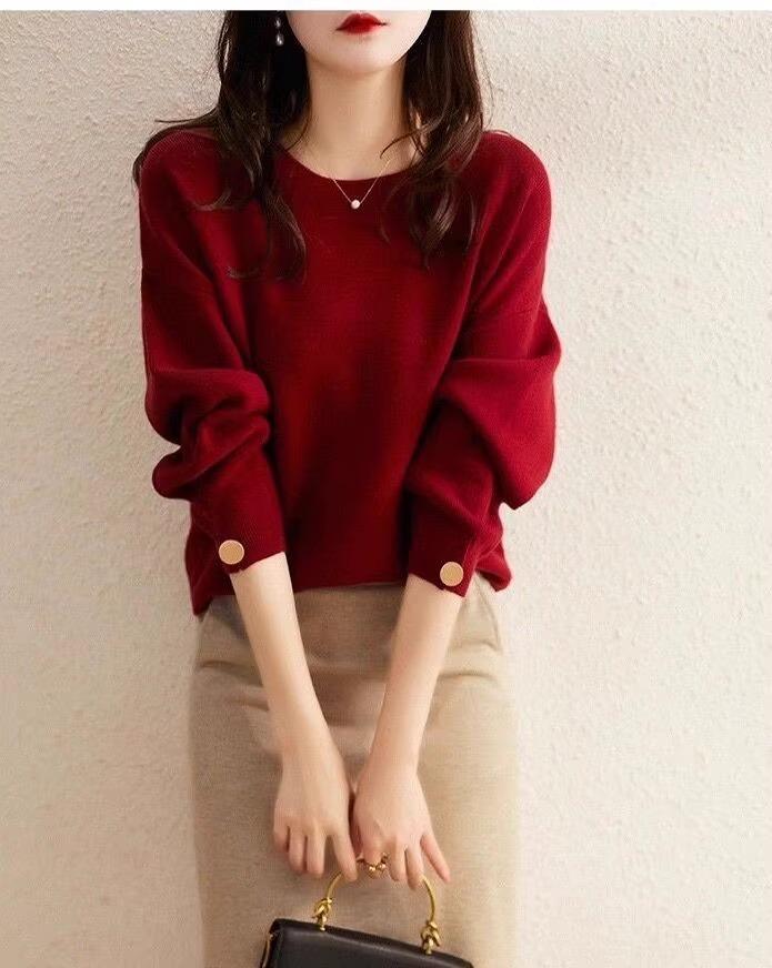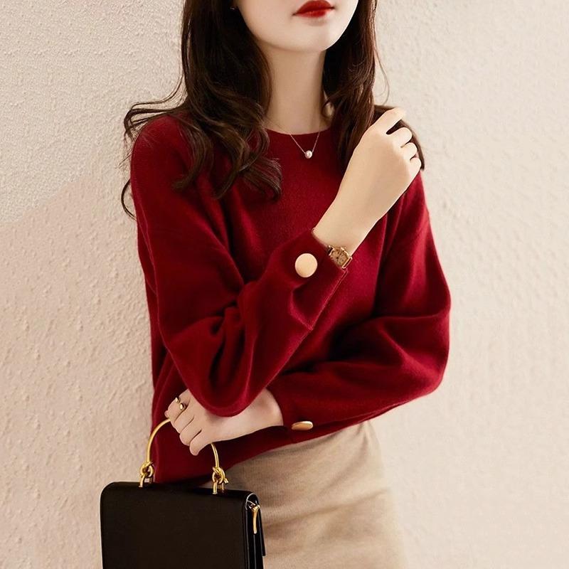 Suéter interior de otoño e invierno para mujer, suéter básico, nuevo, cálido, grueso, suelto, para Año Nuevo, parte superior roja, 2024
