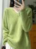 Otoño e Invierno Nueva Llegada Diamante Grueso Cuello en V Tejido de Lana Pesado Ropa de Punto para Mujer Color Sólido Commuter Manga Larga Suave Ceroso Top Base