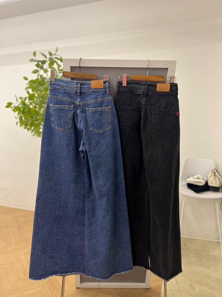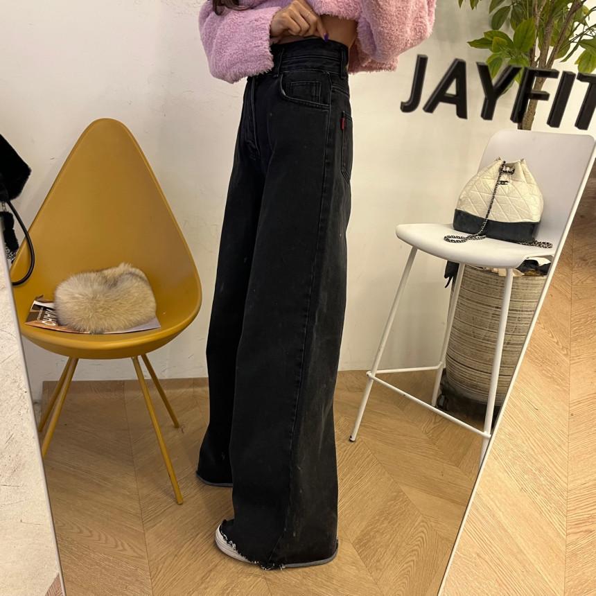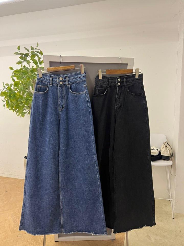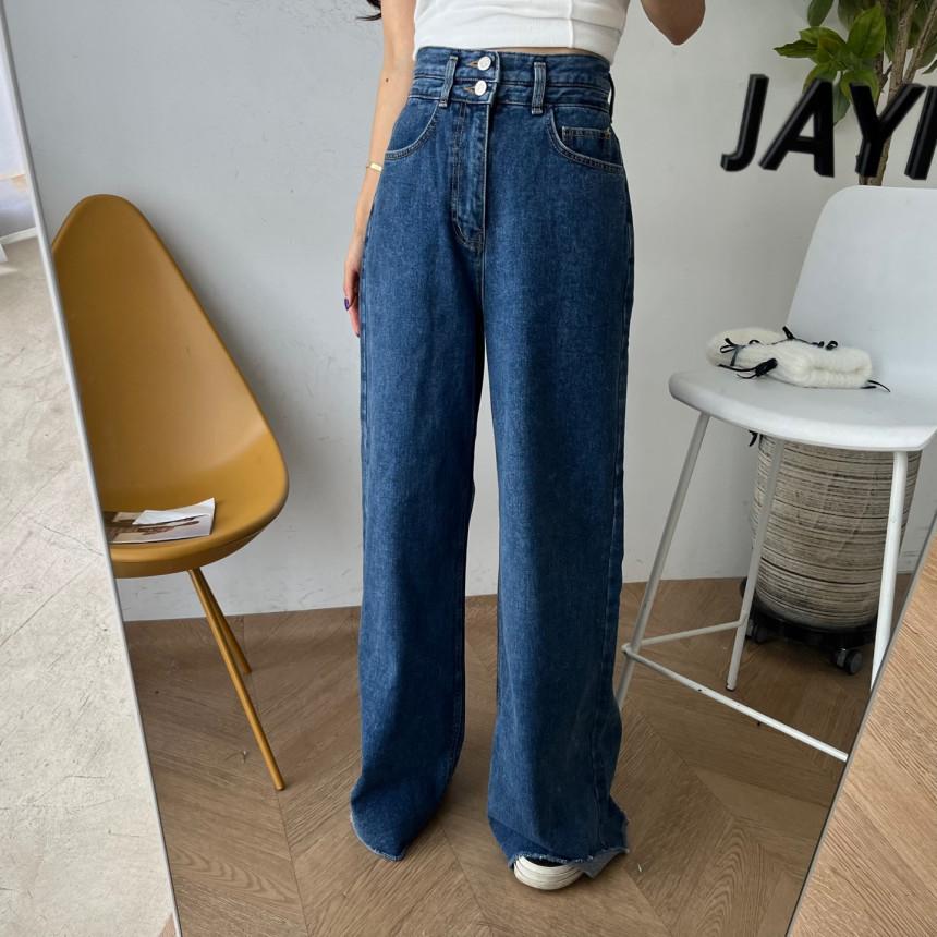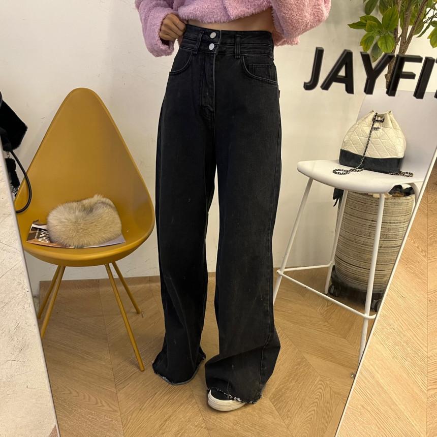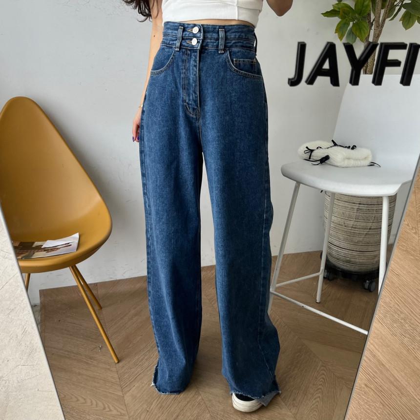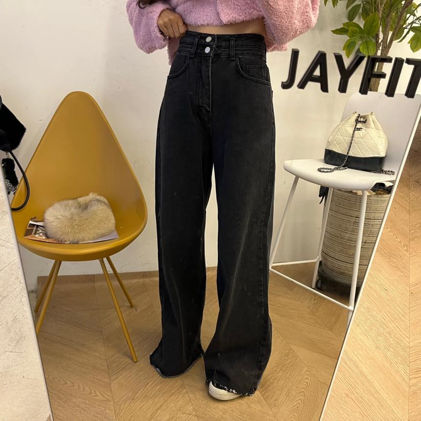 Vaqueros rectos deshilachados con doble botón y abertura de alta calidad para mujer de Corea del Sur Dongdaemun