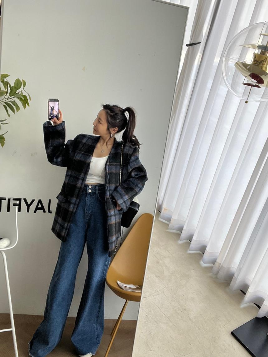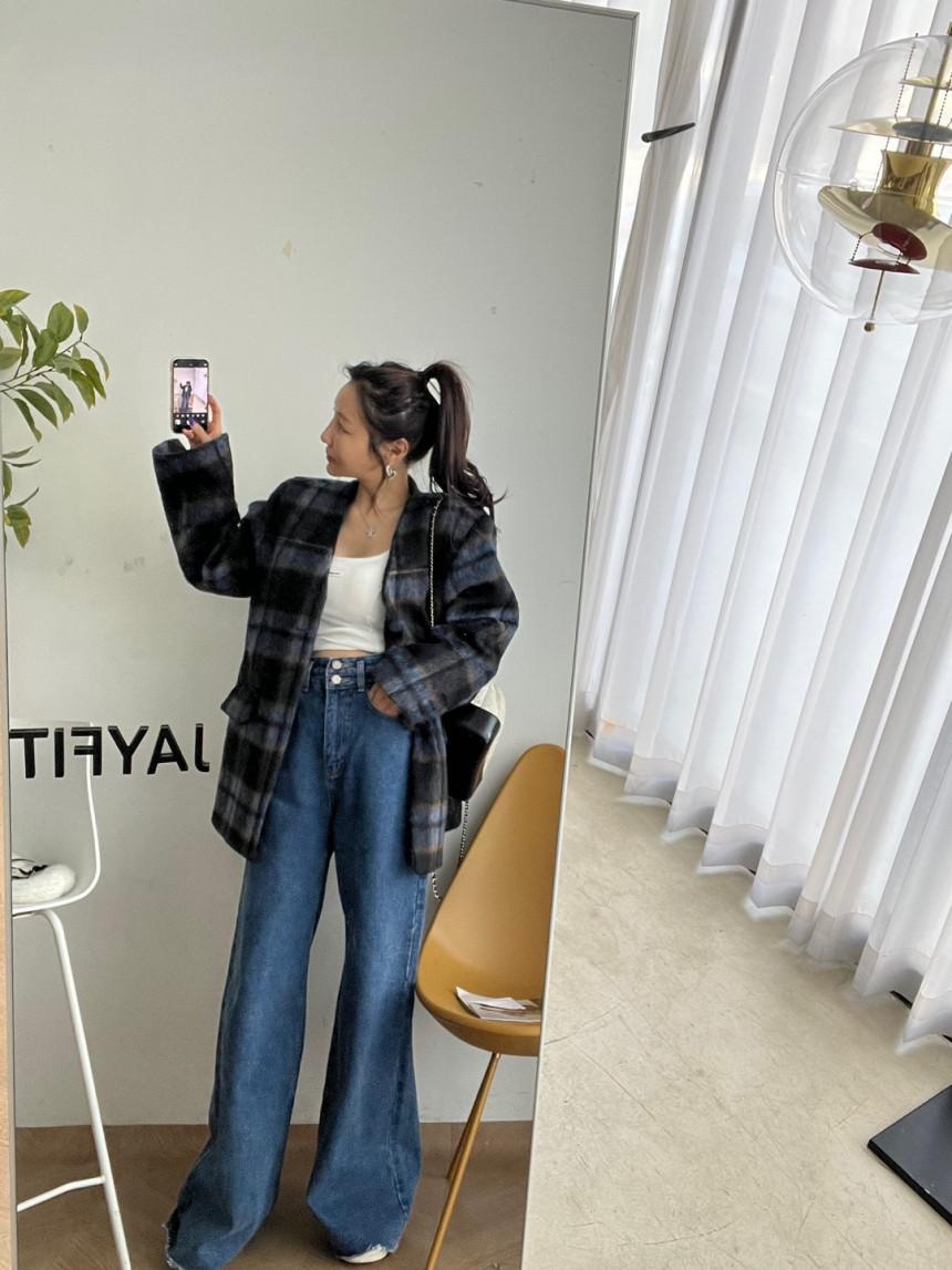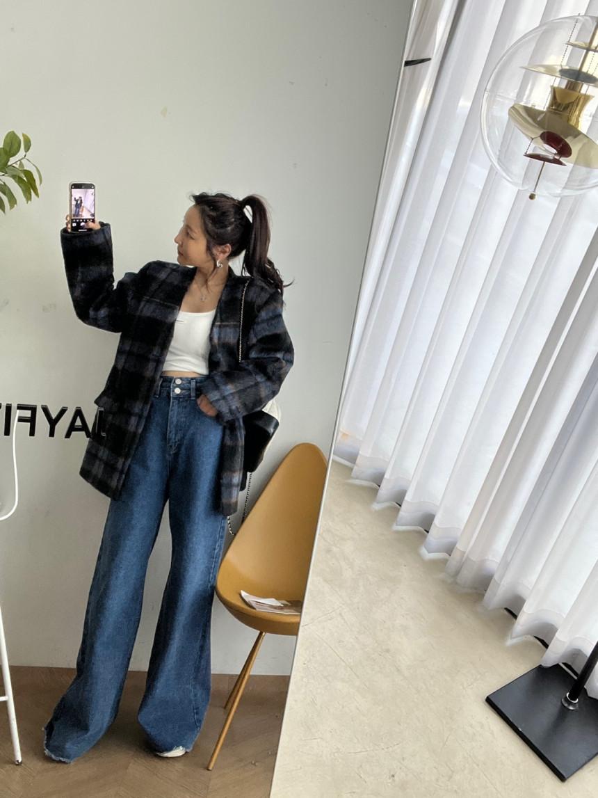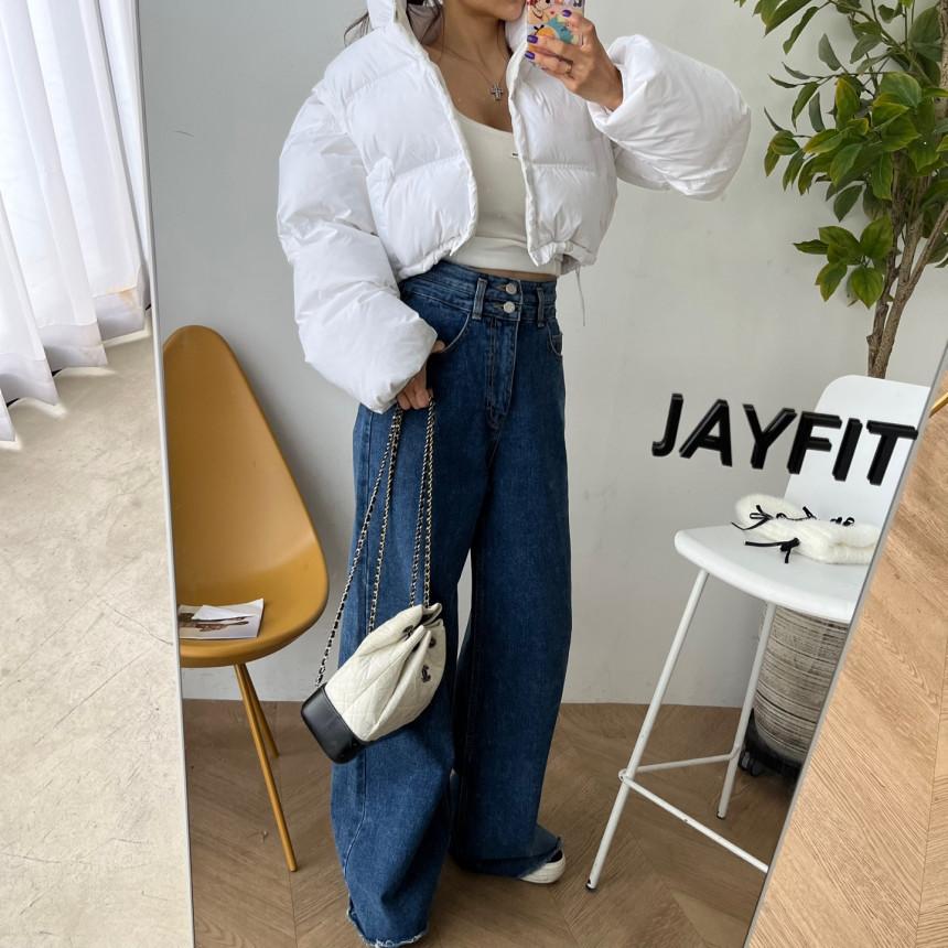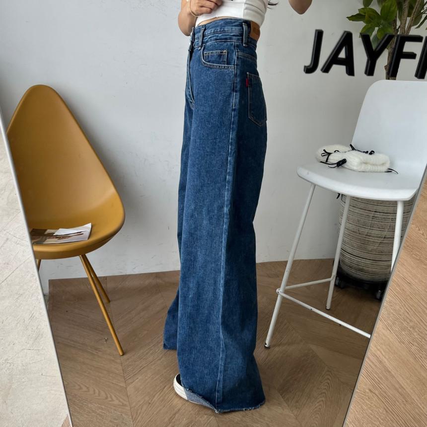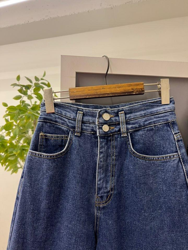Vaqueros rectos deshilachados con doble botón y abertura de alta calidad para mujer de Corea del Sur Dongdaemun