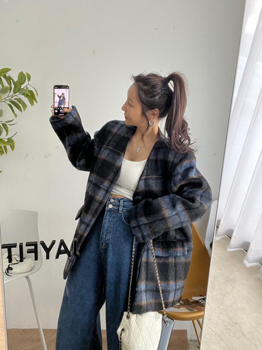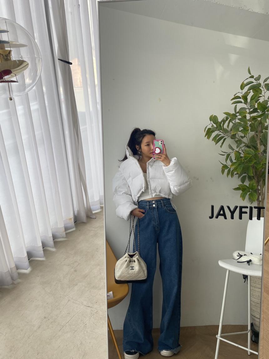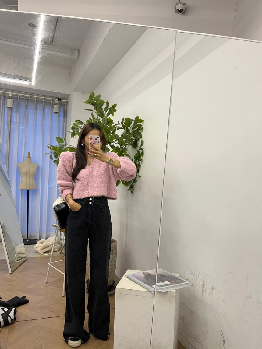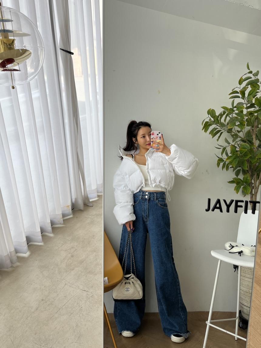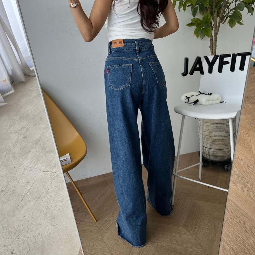 Vaqueros rectos deshilachados con doble botón y abertura de alta calidad para mujer de Corea del Sur Dongdaemun