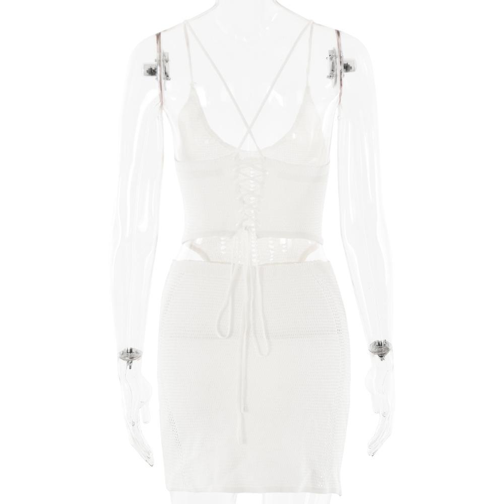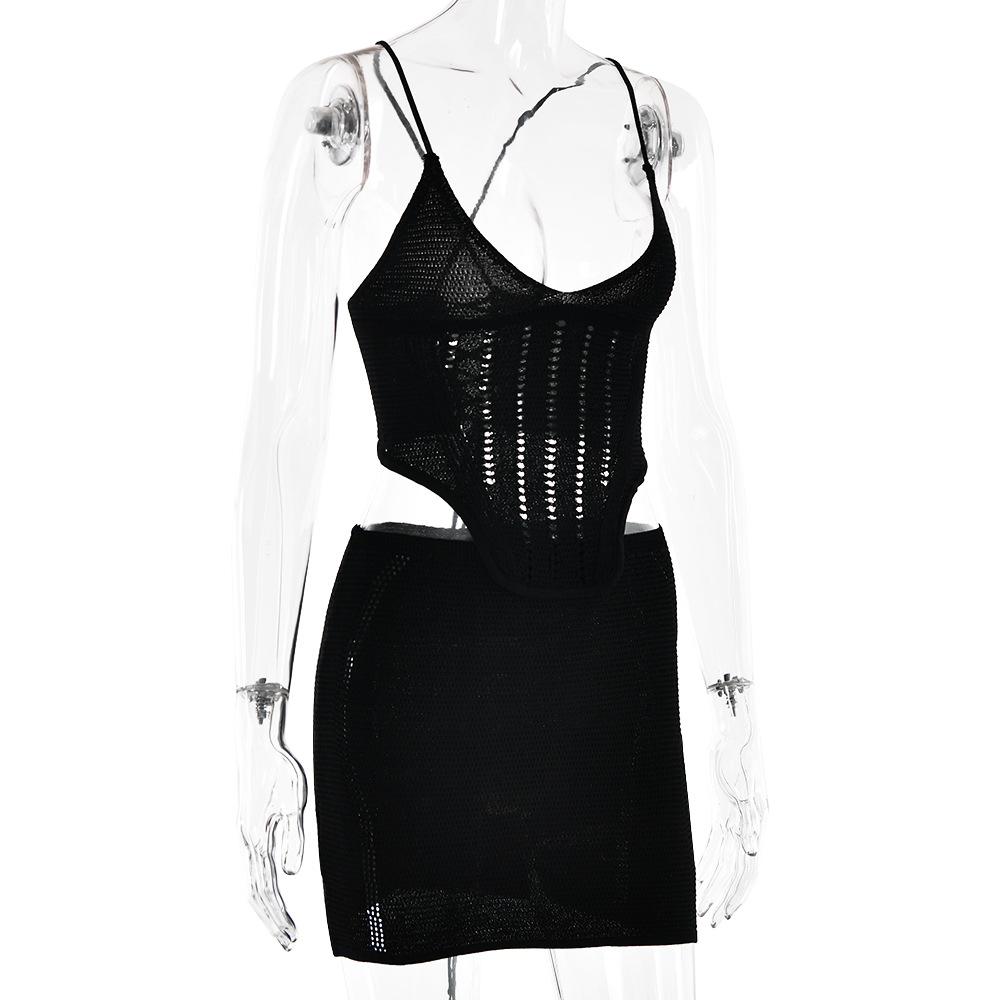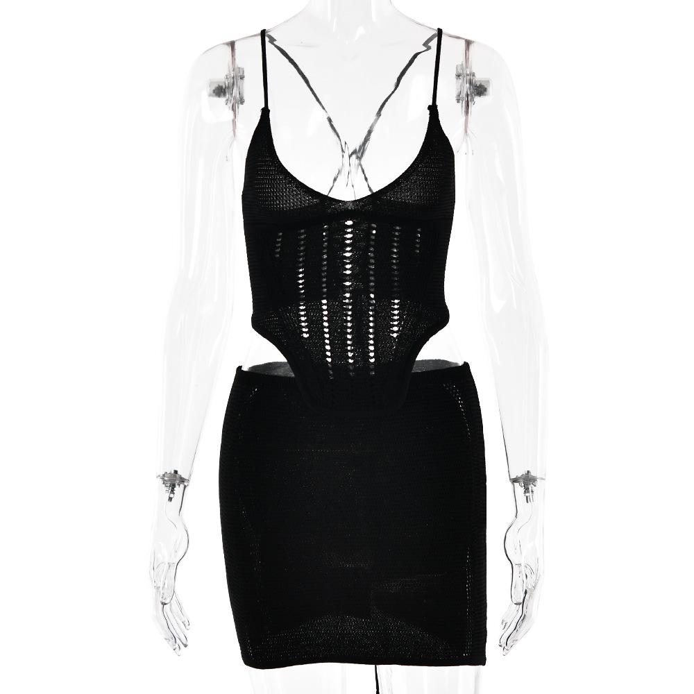 Traje de punto con falda sin espalda y tirantes de moda sexy de dos piezas para verano de 2024, transfronterizo europeo y americano, comercio exterior
