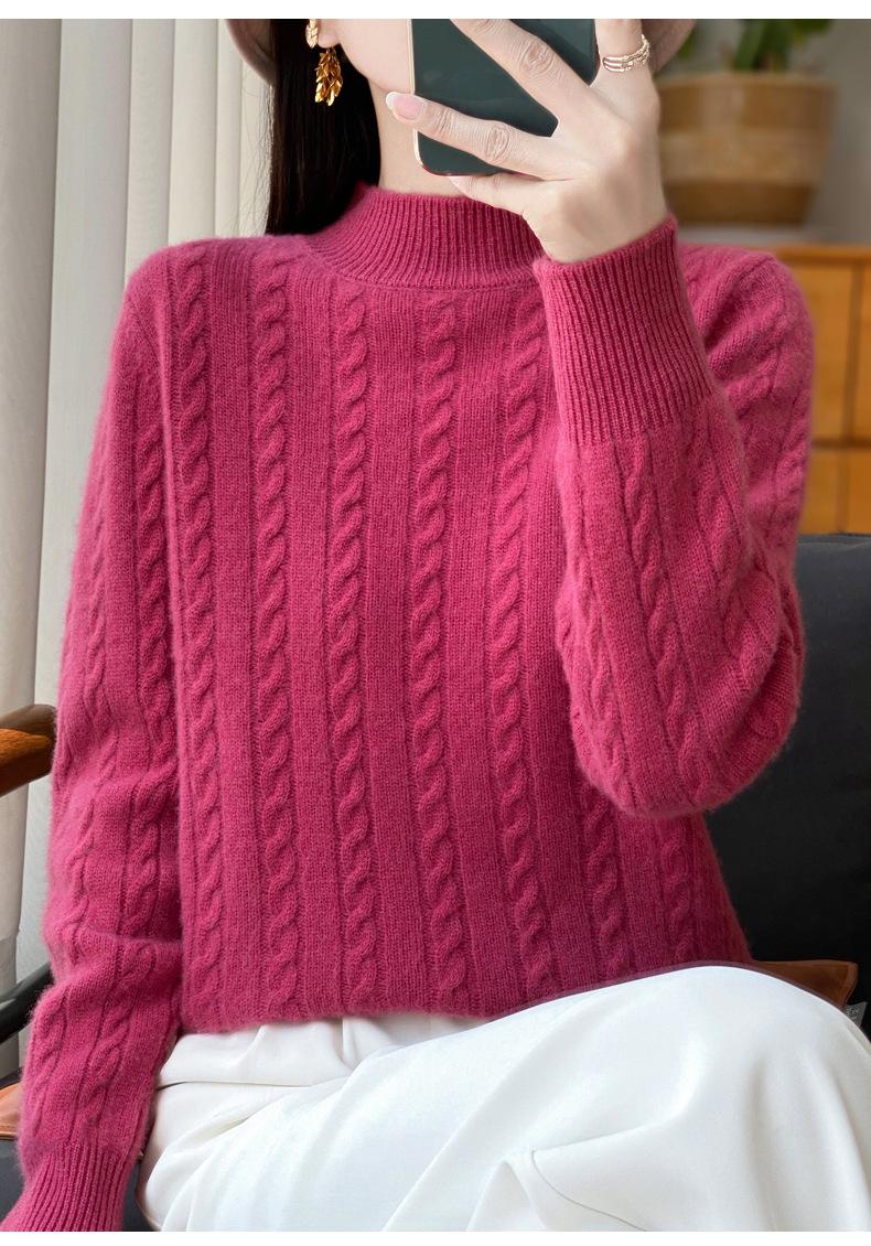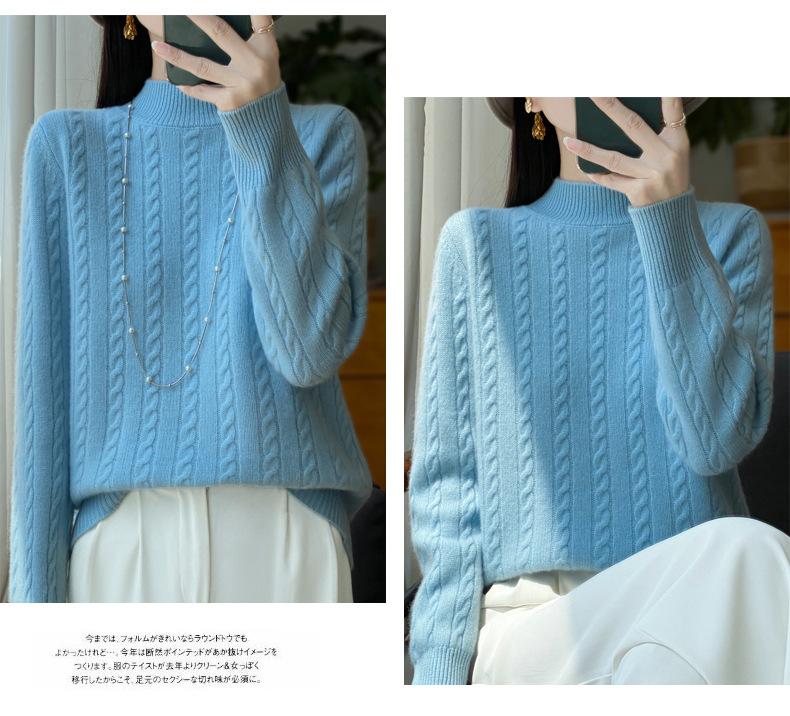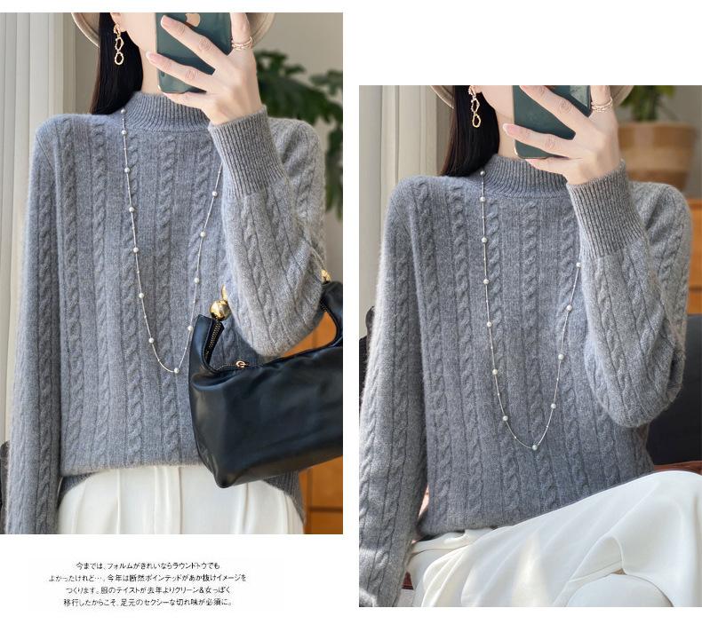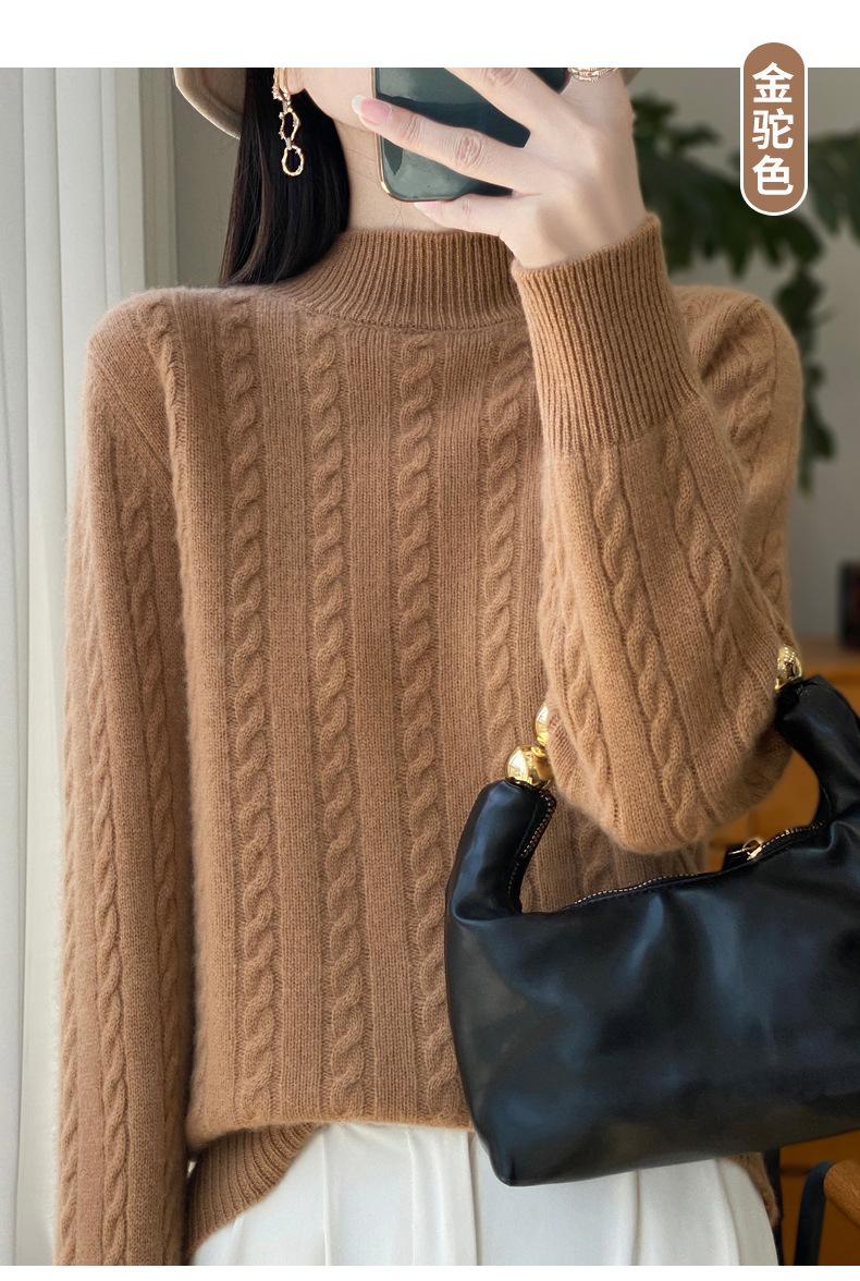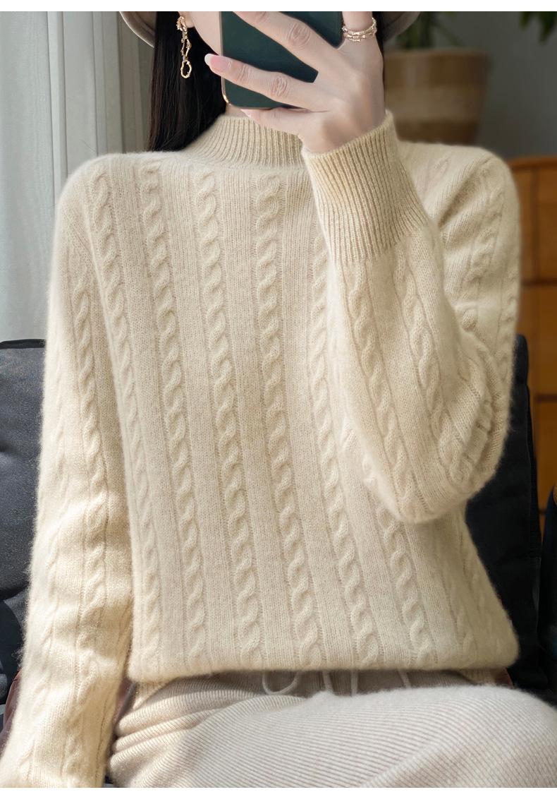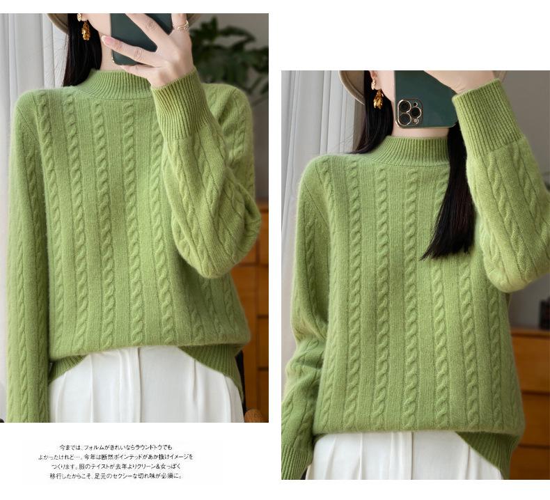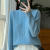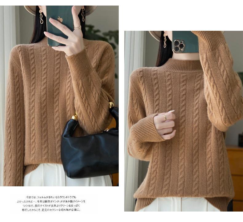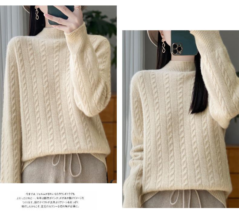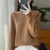 100% Lana Otoño e Invierno 2025 Nuevo Jersey de Cuello Alto Medio para Mujer Tejido de Trenzas Corto para Usar Debajo