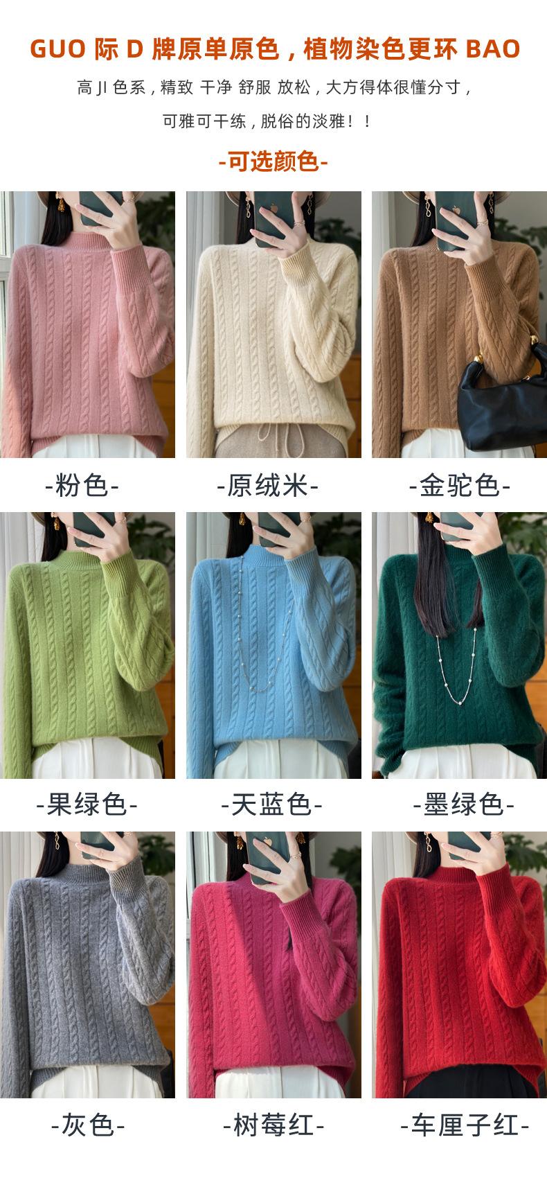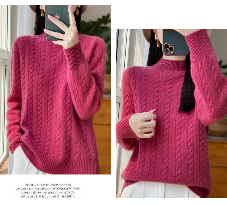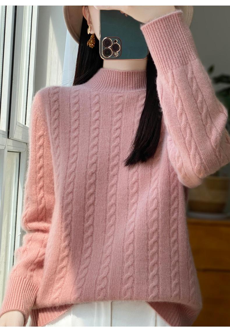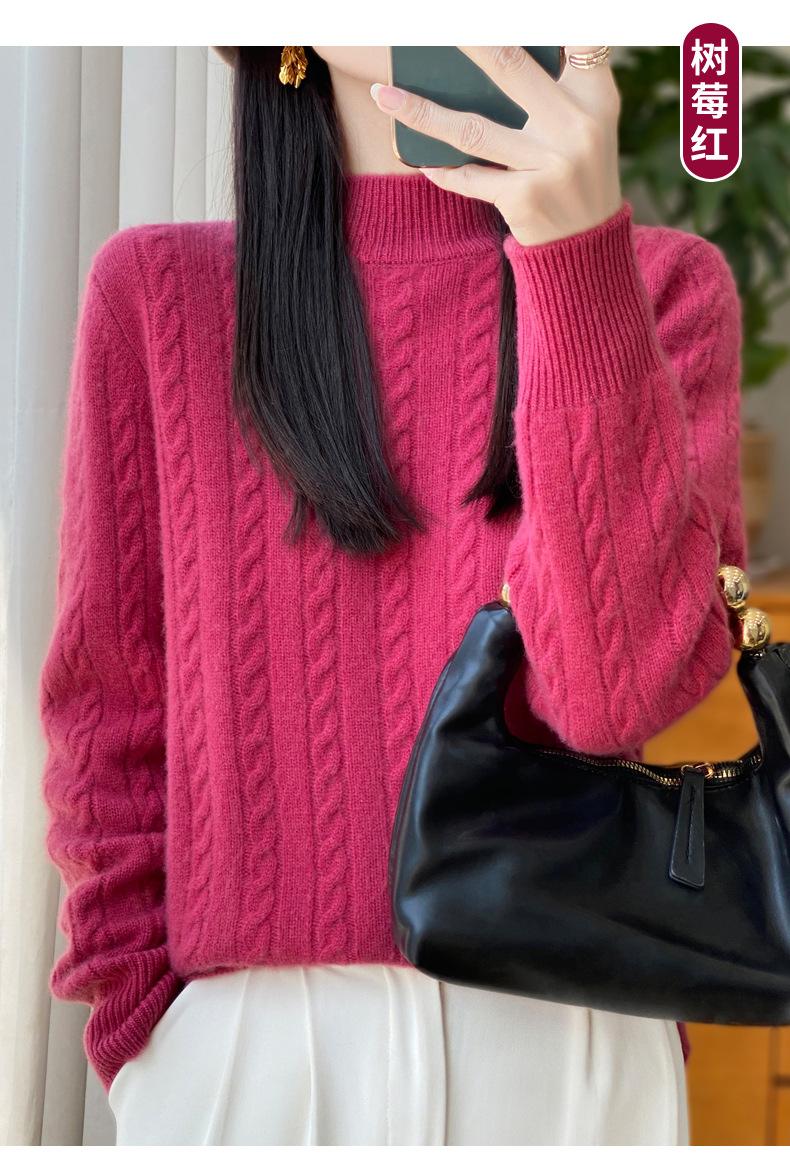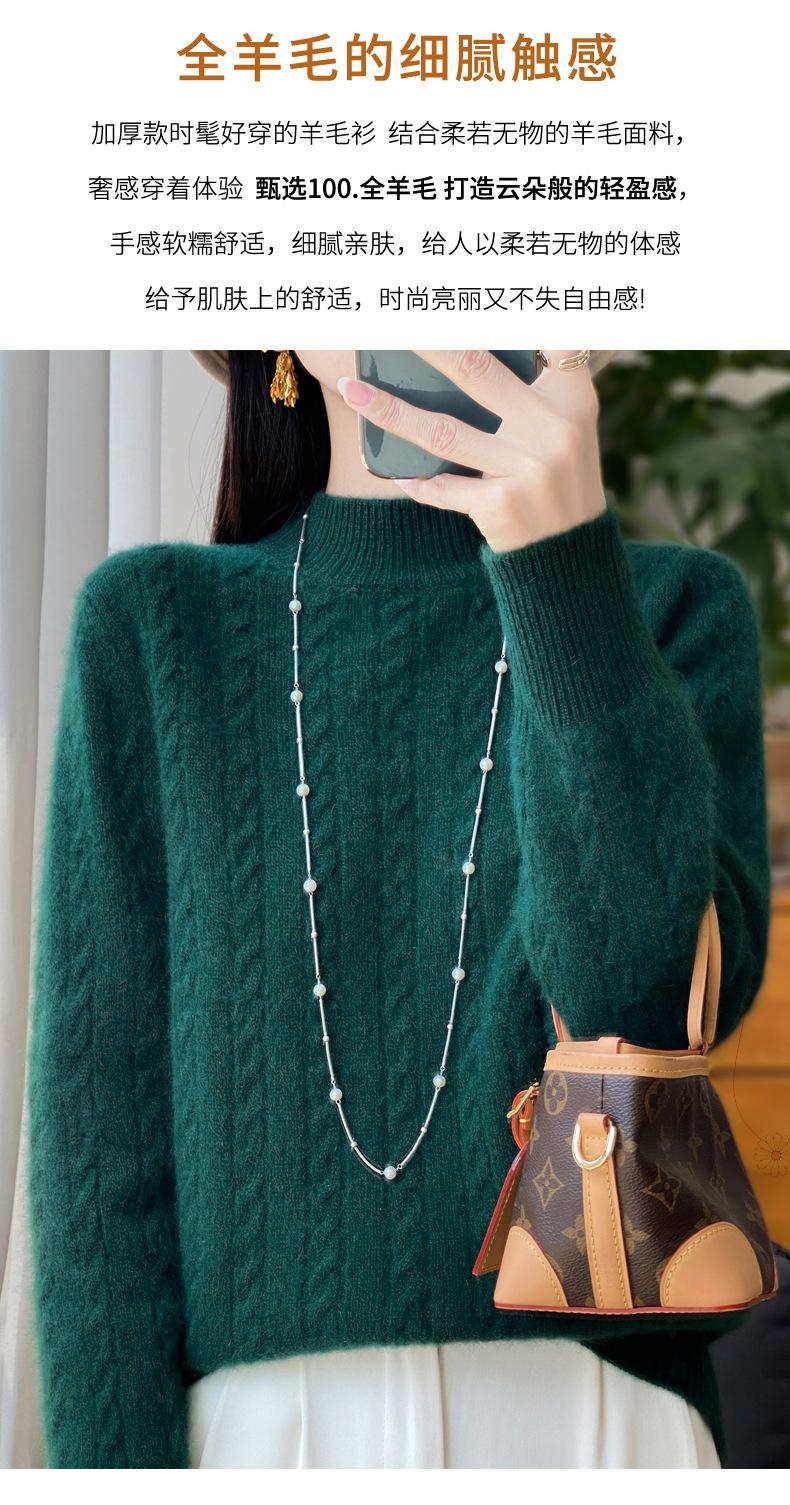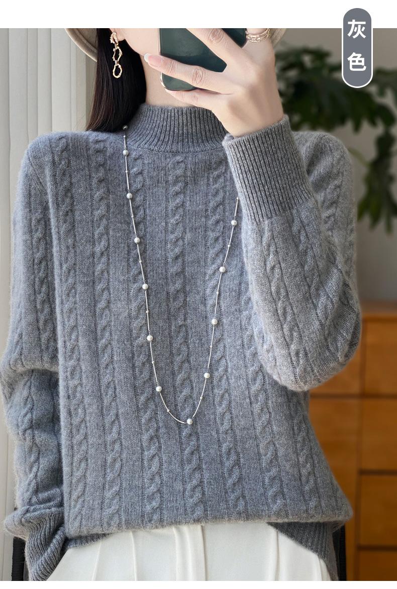 100% Lana Otoño e Invierno 2025 Nuevo Jersey de Cuello Alto Medio para Mujer Tejido de Trenzas Corto para Usar Debajo