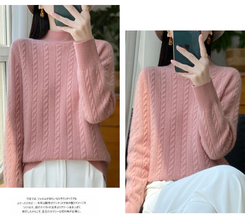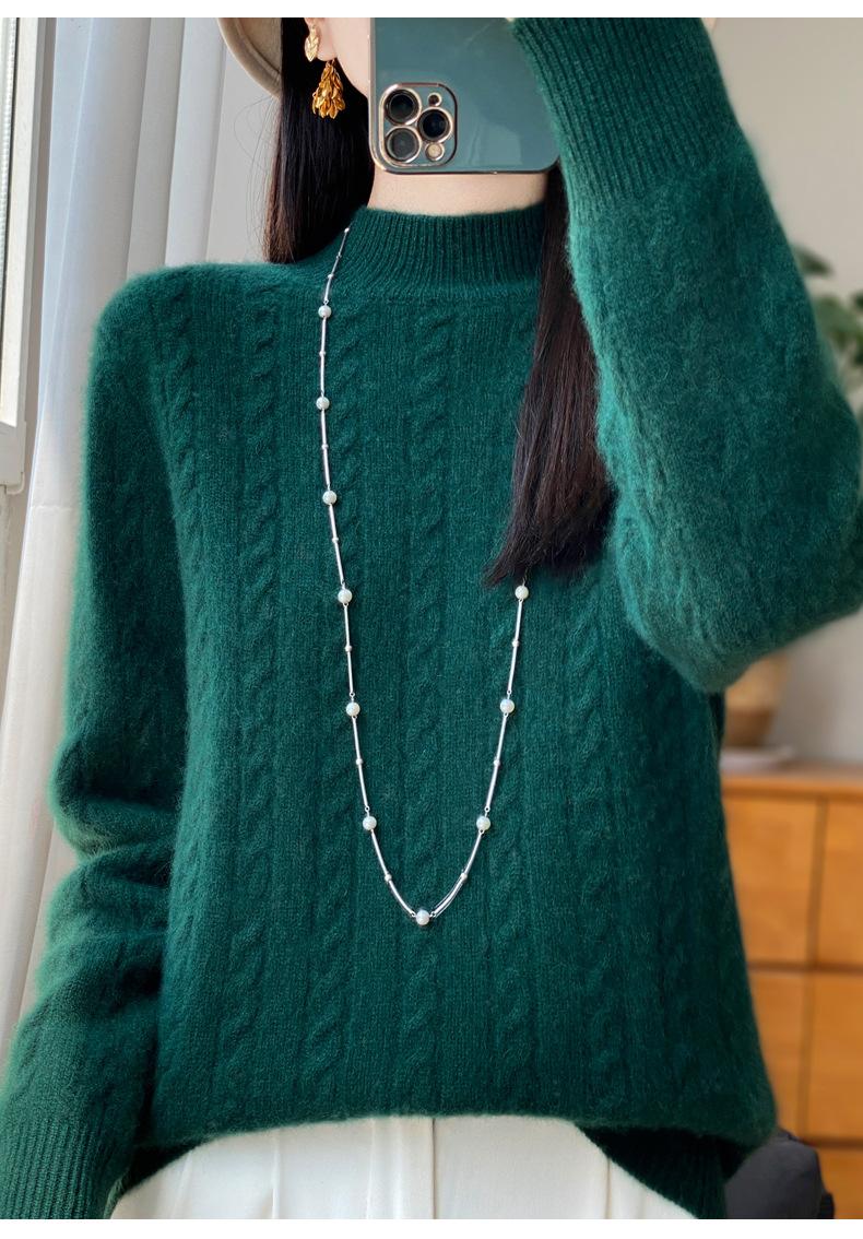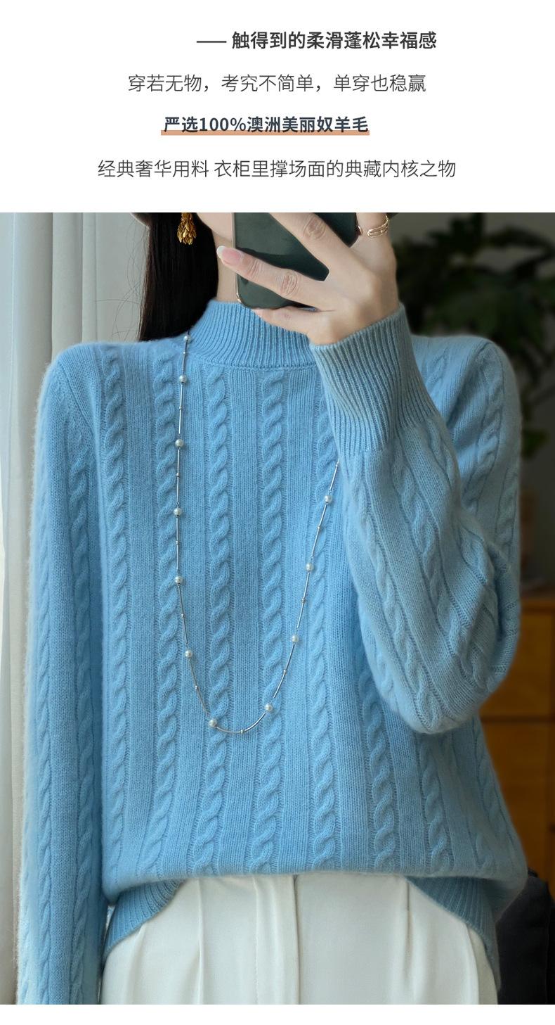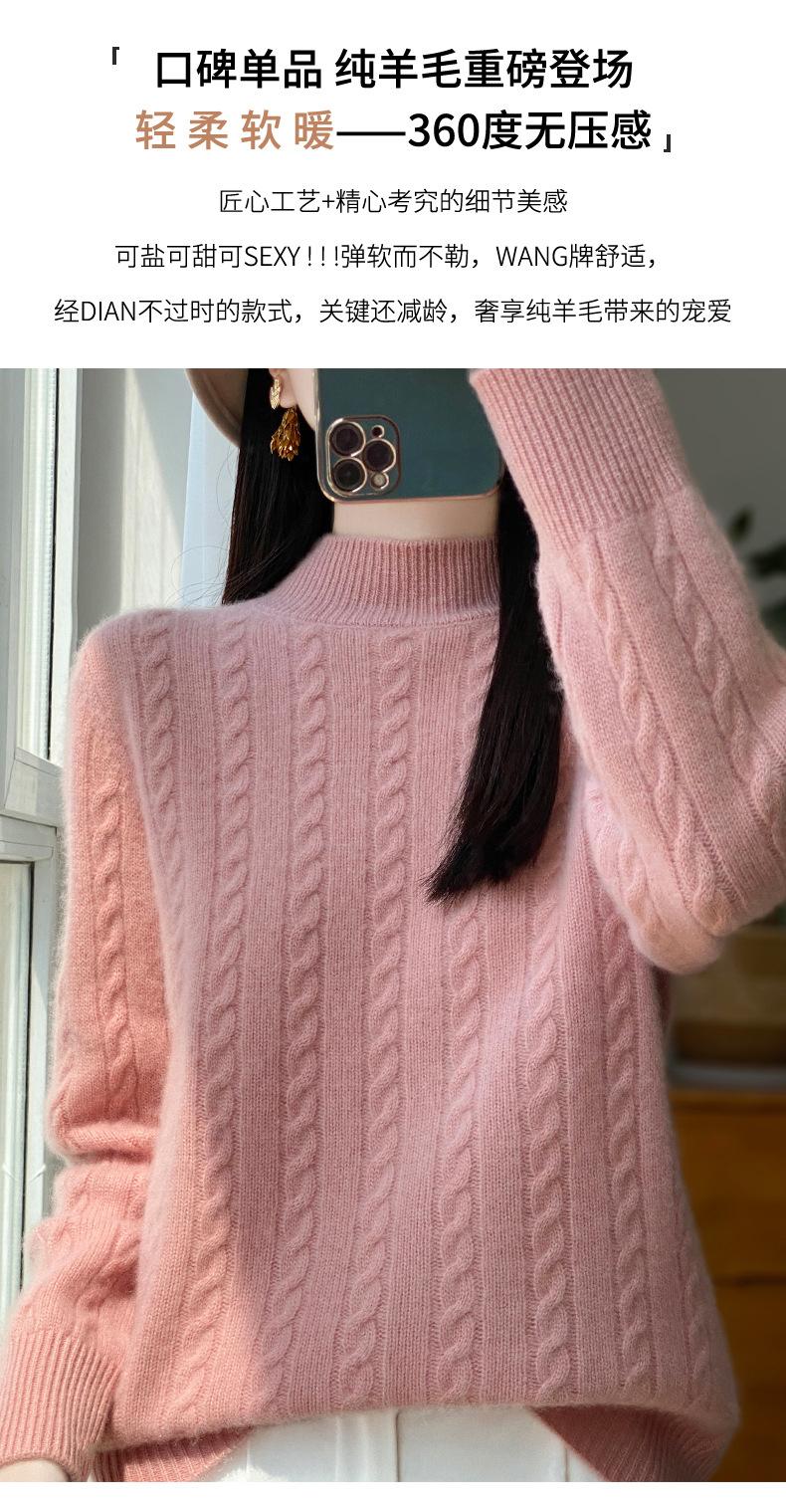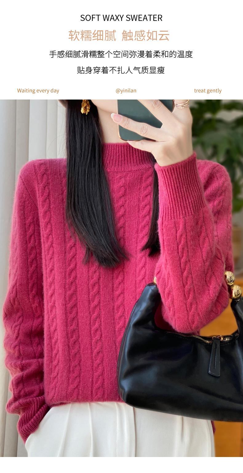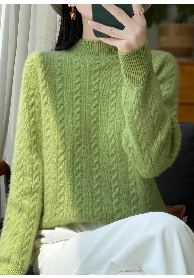 100% Lana Otoño e Invierno 2025 Nuevo Jersey de Cuello Alto Medio para Mujer Tejido de Trenzas Corto para Usar Debajo
